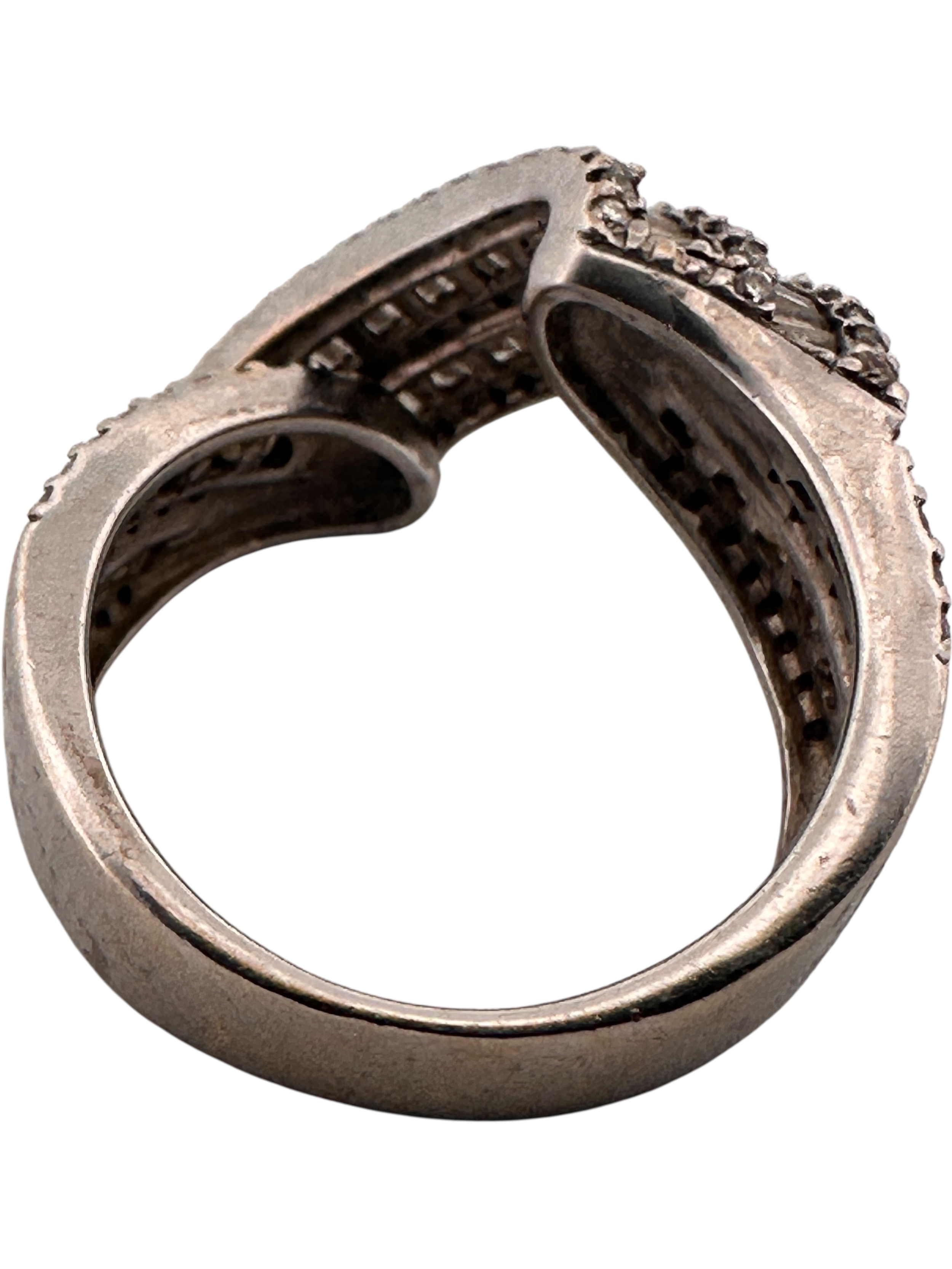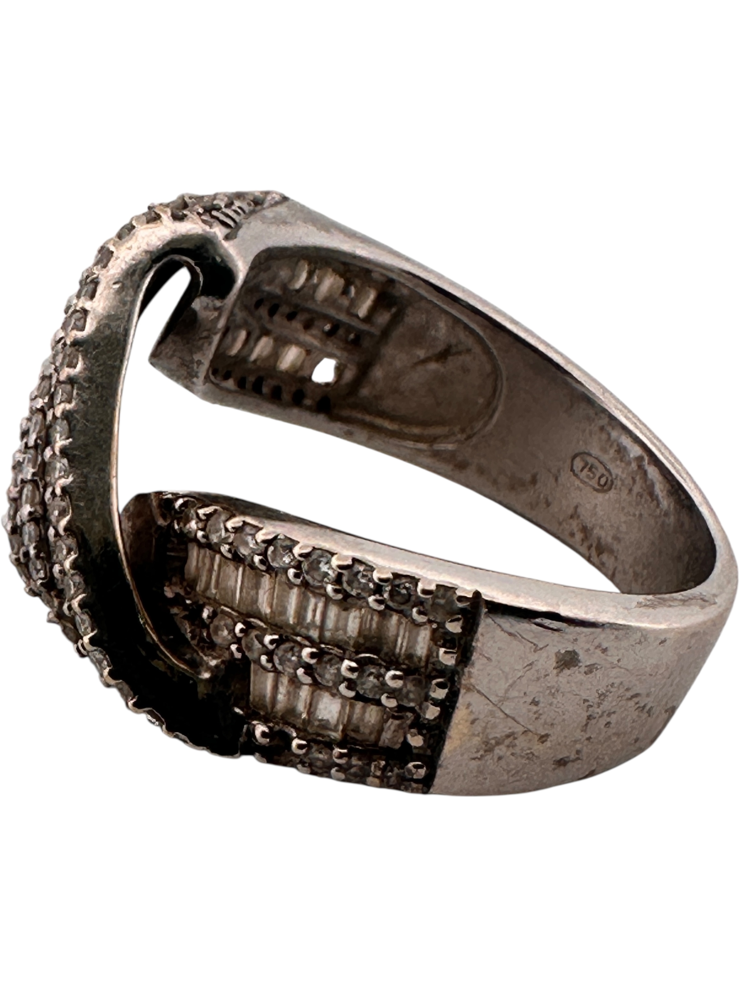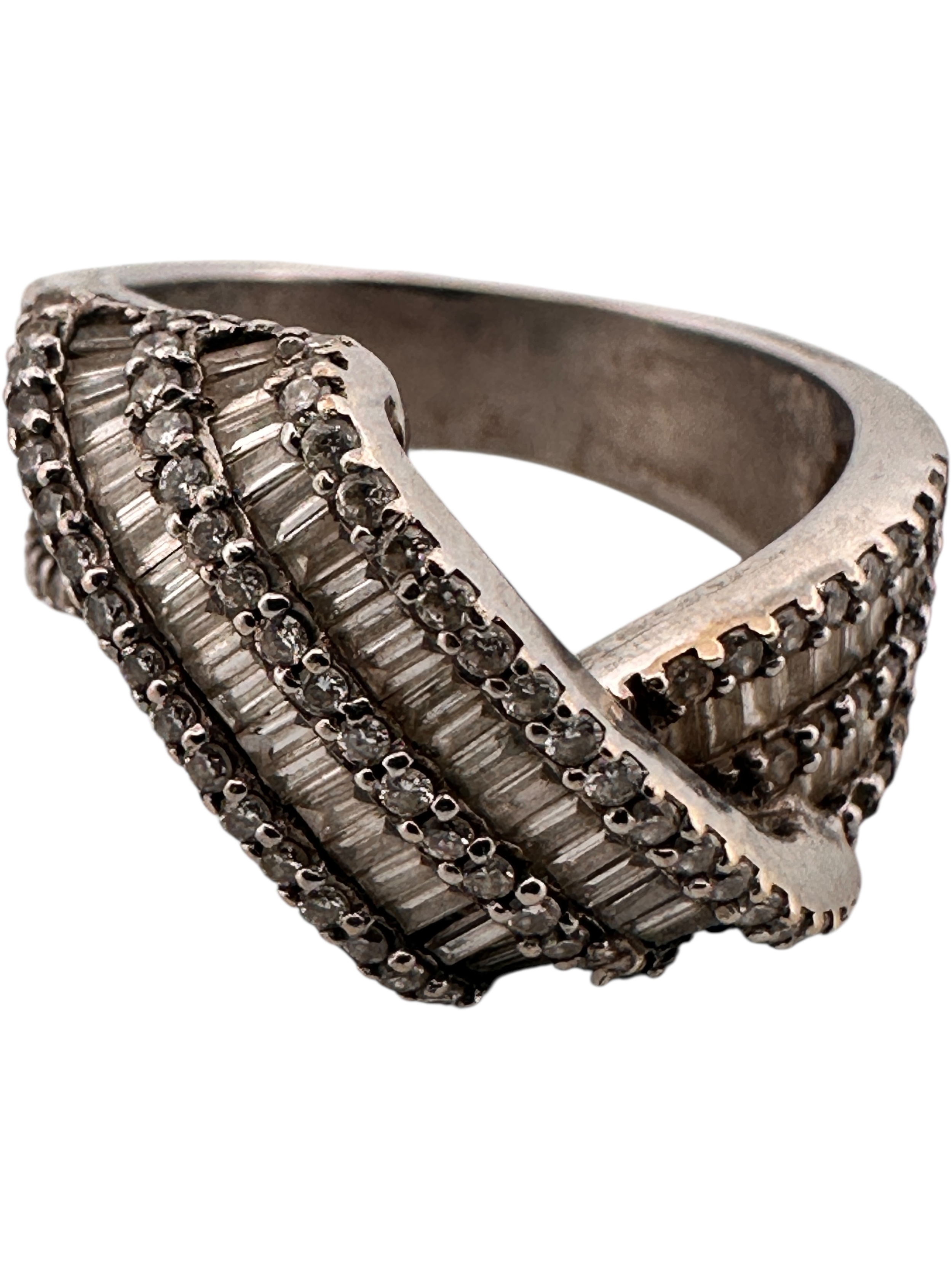 Eighteen Carat White Gold Ring set with Diamonds (some missing stones) Size M. 8.17g