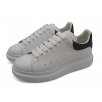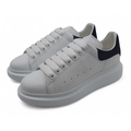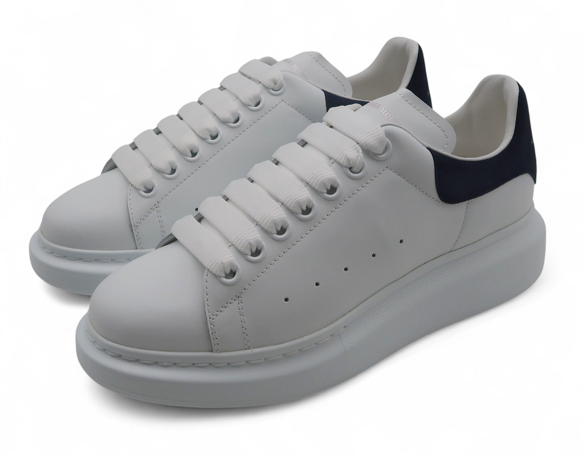 Alexander McQueen wedged sole Larry sneakers / trainers in white leather and night blue velour, size 39, with spare laces, bag and box