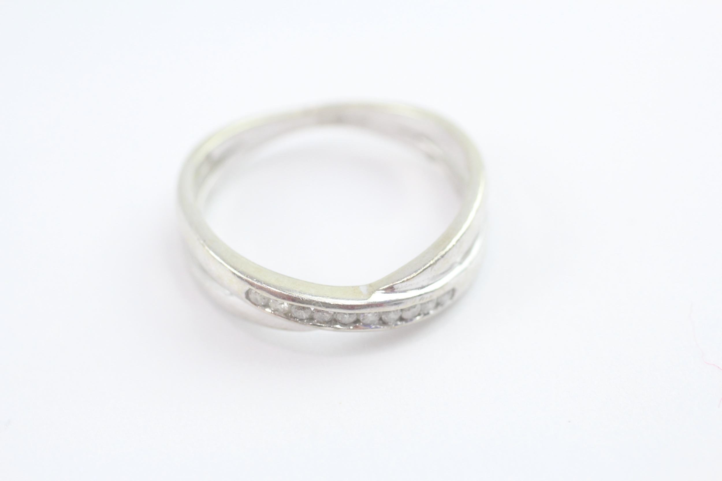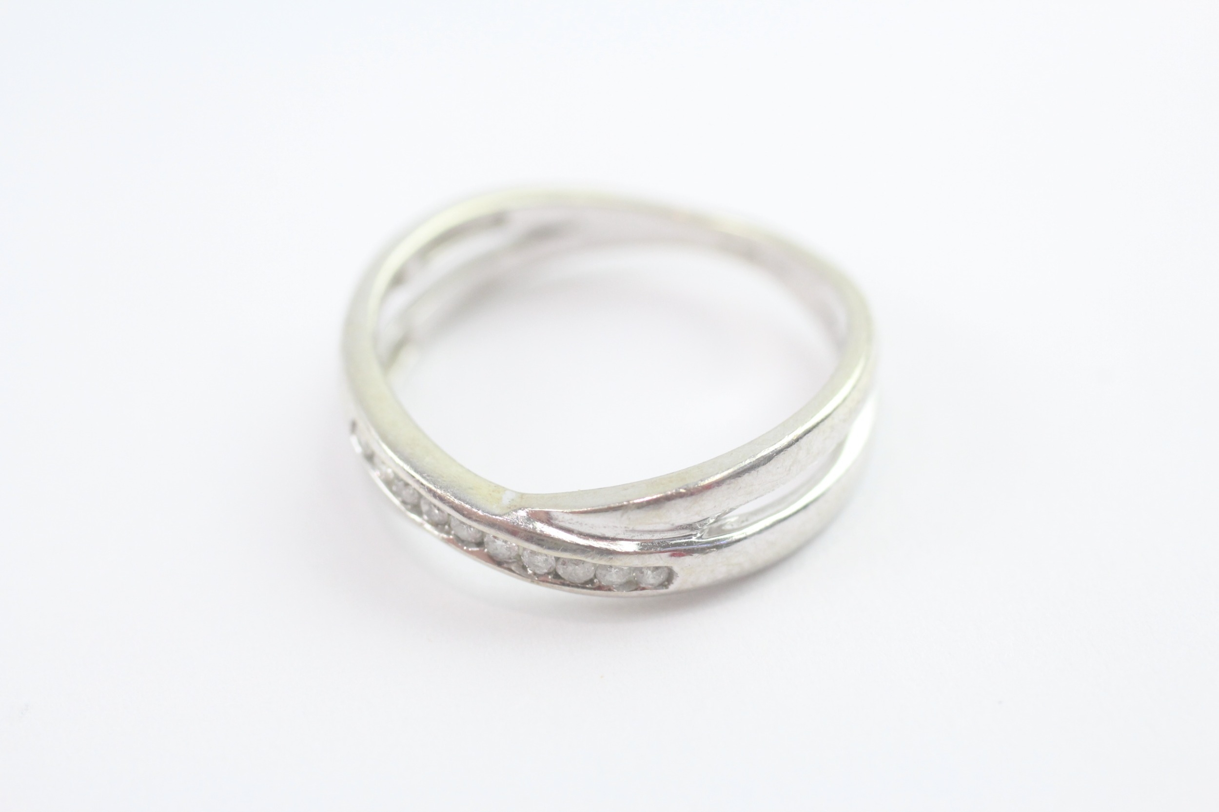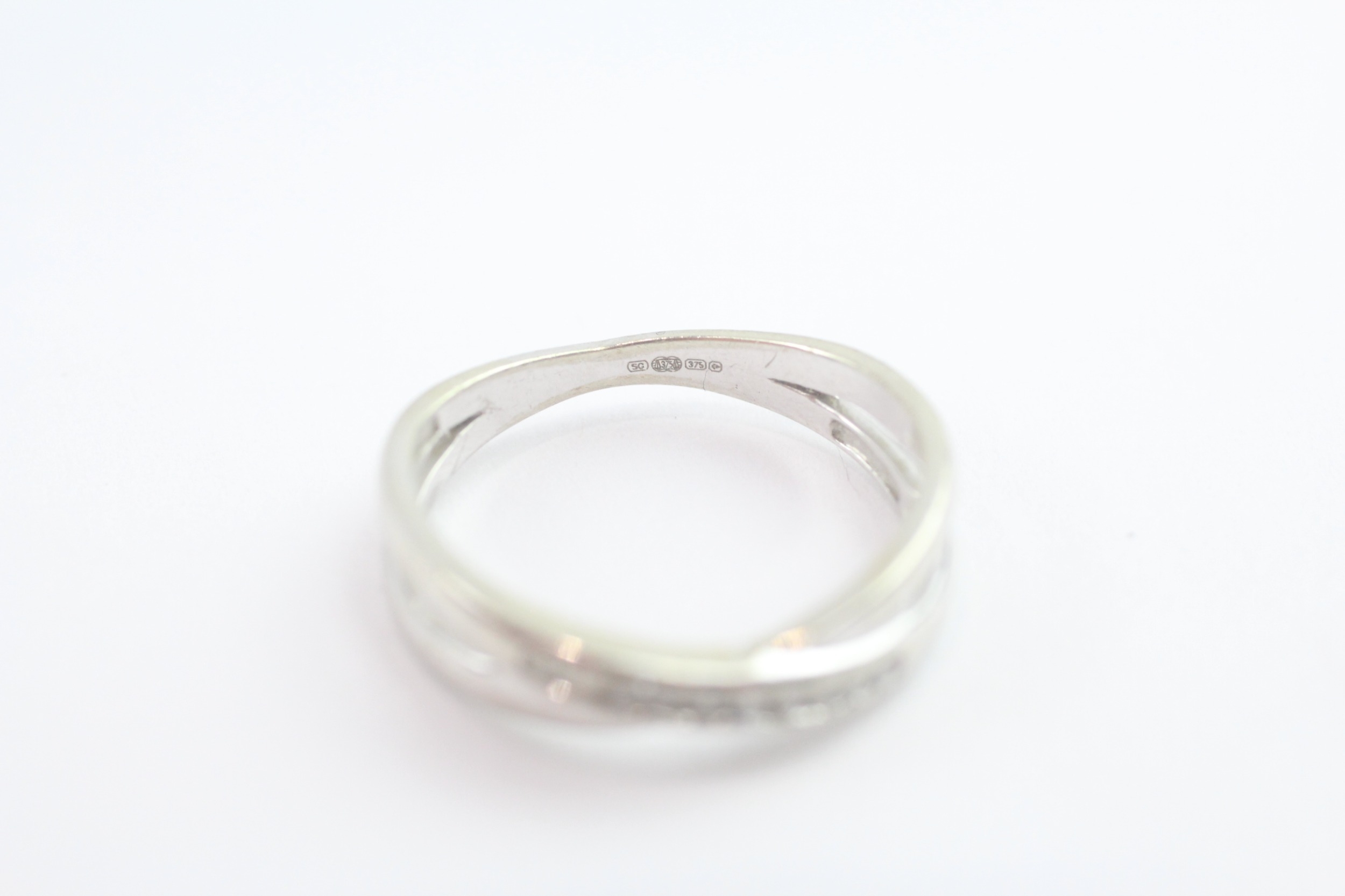 9ct gold diamond cross-over ring (2.8g) Size O