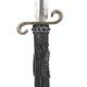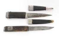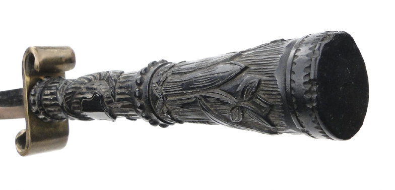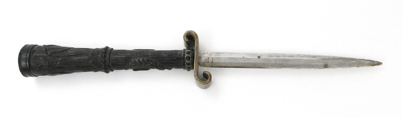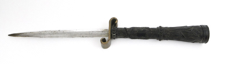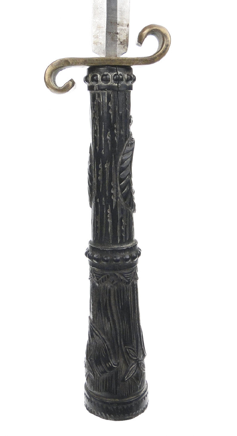 Bog oak handled dagger with steel blade and carved decoration to the grip, 29cm in length