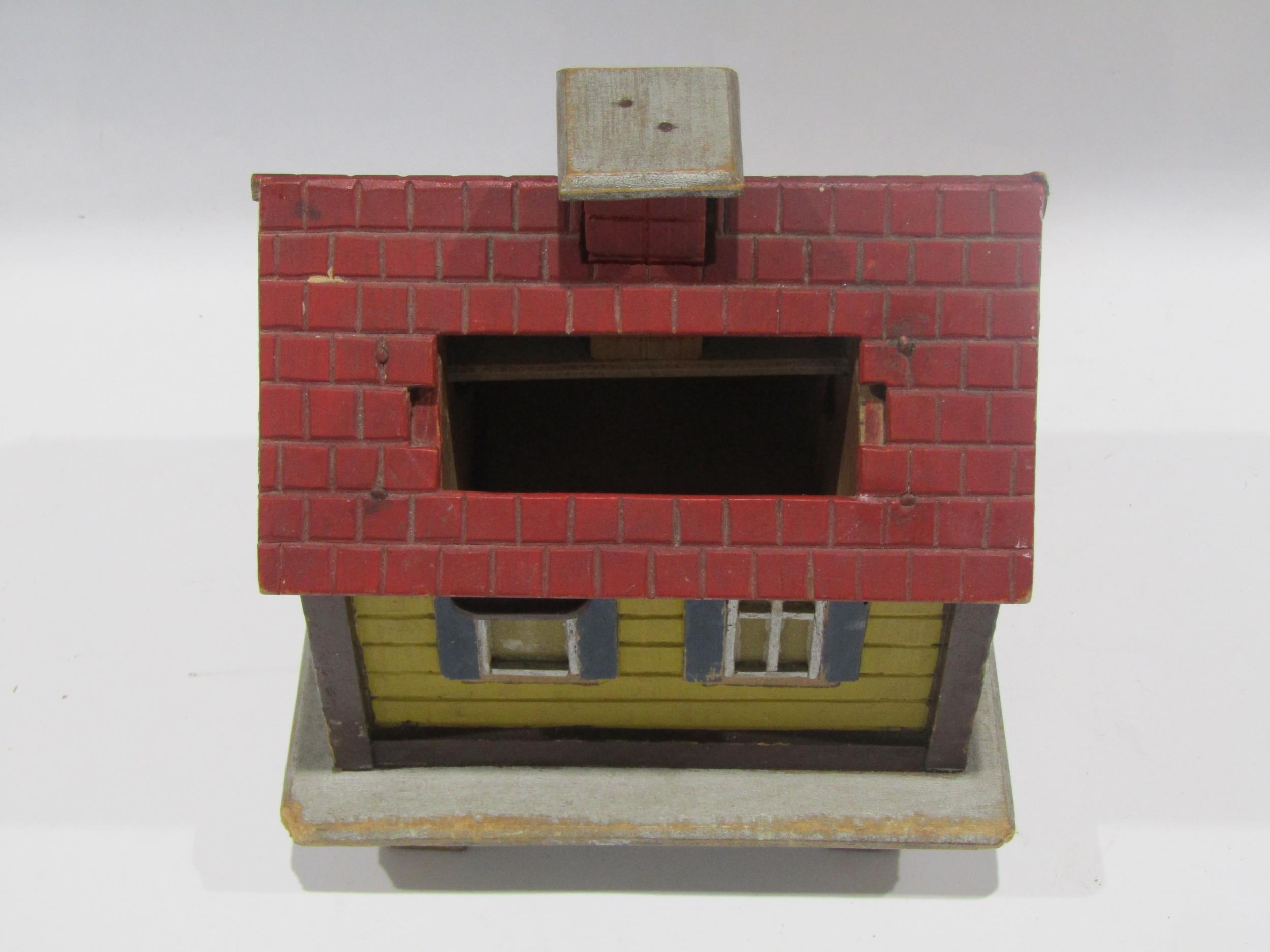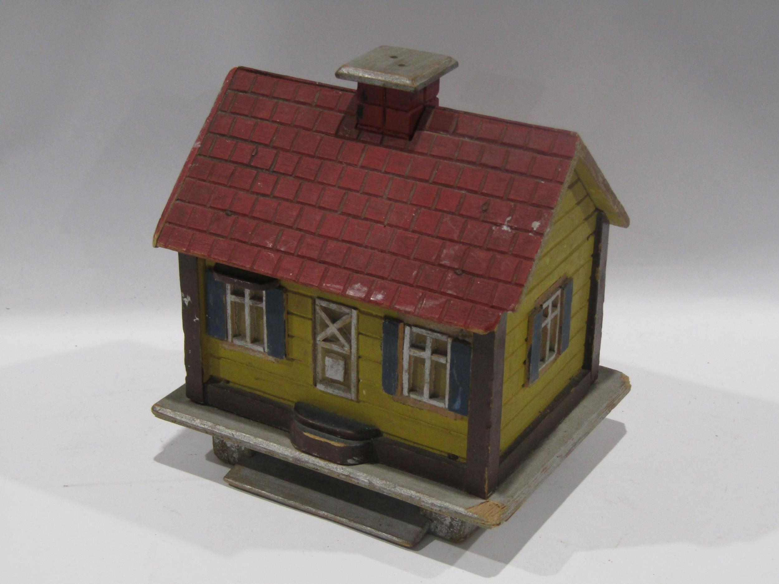 A trench art painted wooden house cigarette dispenser made in 1994 Devon , German prisoner of war camp