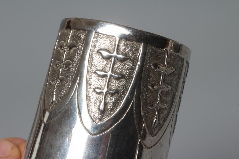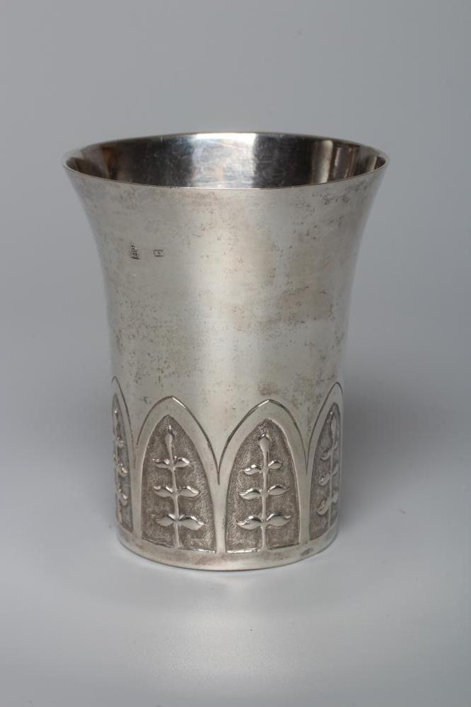 AN AUSTRIAN SILVER BEAKER, early 19th century, of flared cylindrical form, the lower section chased with a stylised stiff leaf border, 3 1/4" high, 2ozs 9dwts