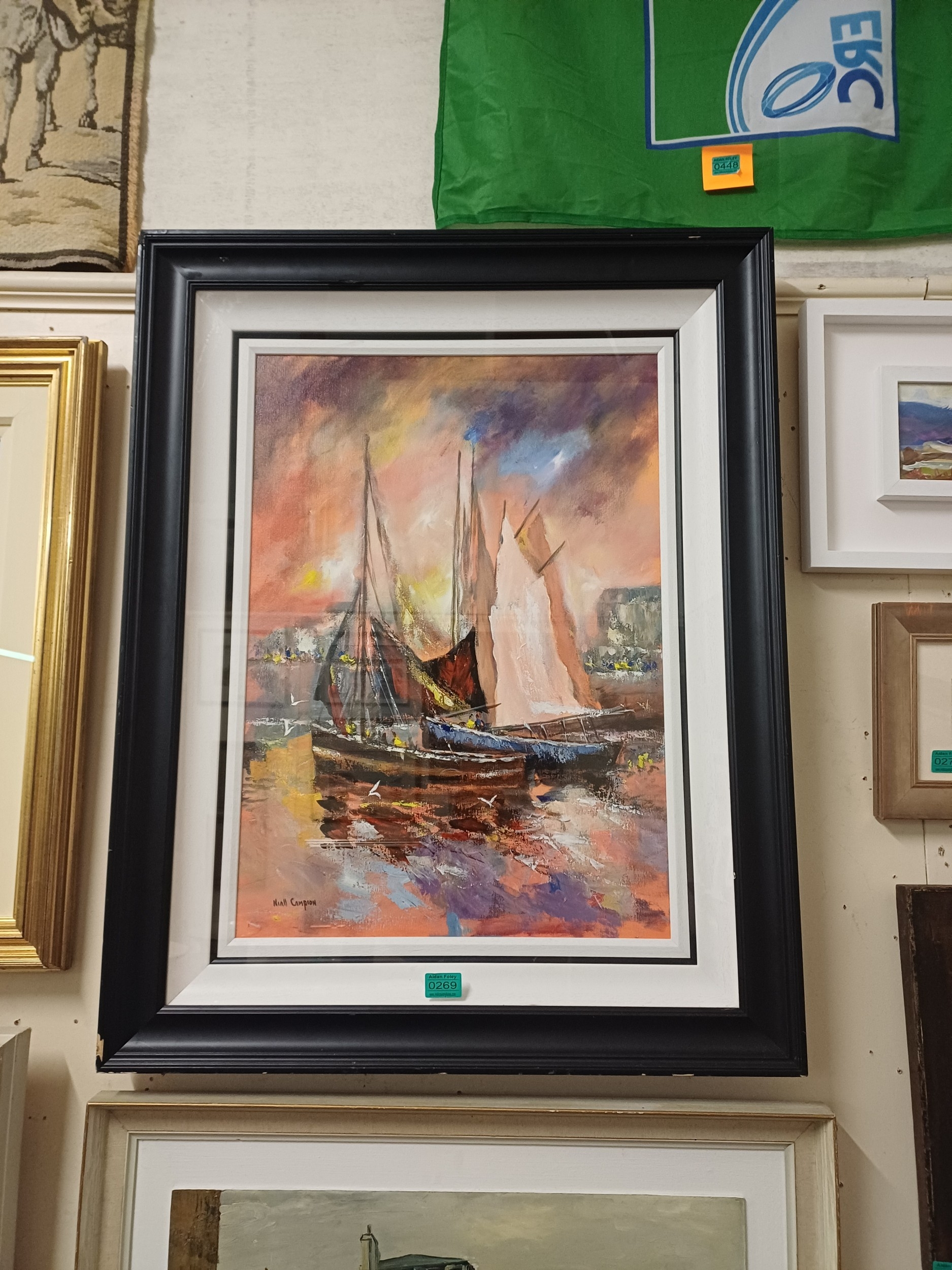 Niall Campion "Galway Hookers Cladagh" (Framed 94cm x 74cm)