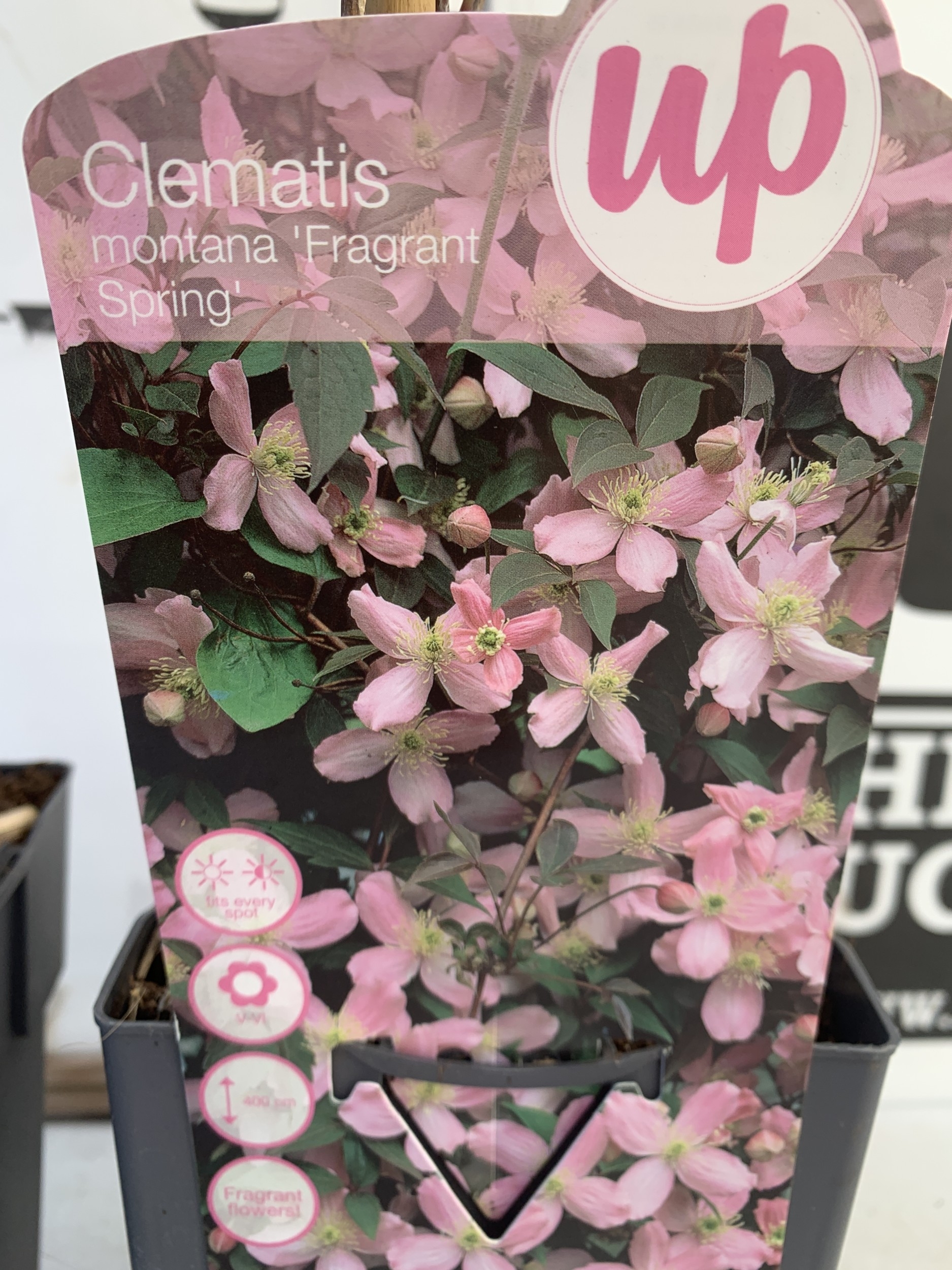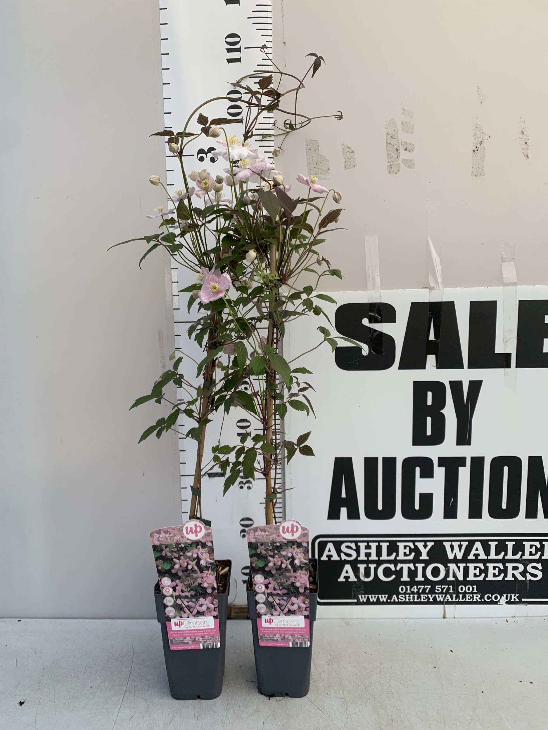 TWO CLEMATIS MONTANA PINK 'FRAGRANT SPRING' IN 1.75 LTR POTS. APPROX 90-100CM TALL, TO BE SOLD FOR THE PAIR