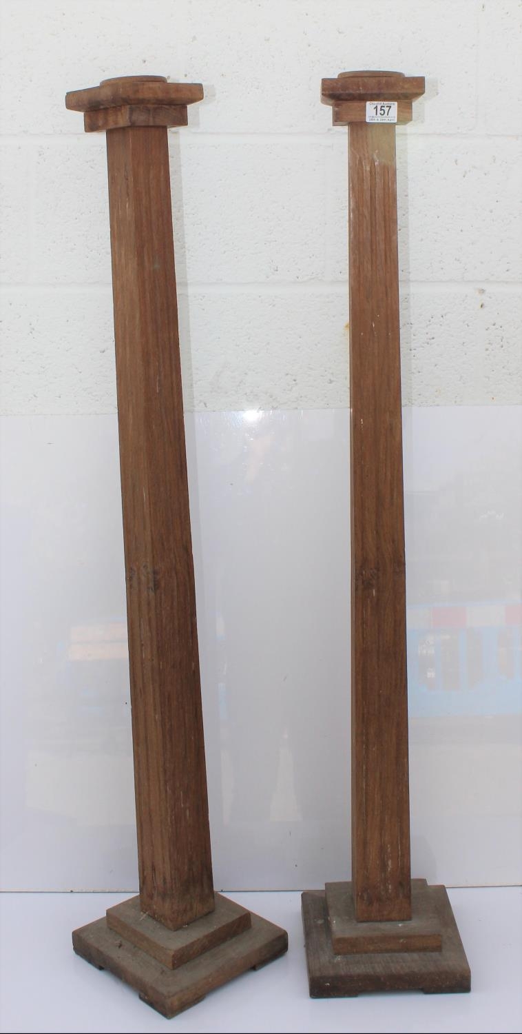 Pair of extremely large wooden floor standing column candlesticks