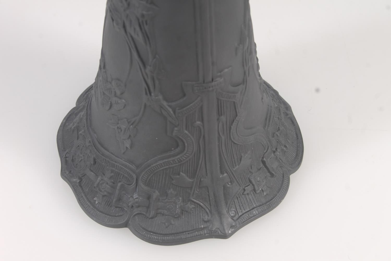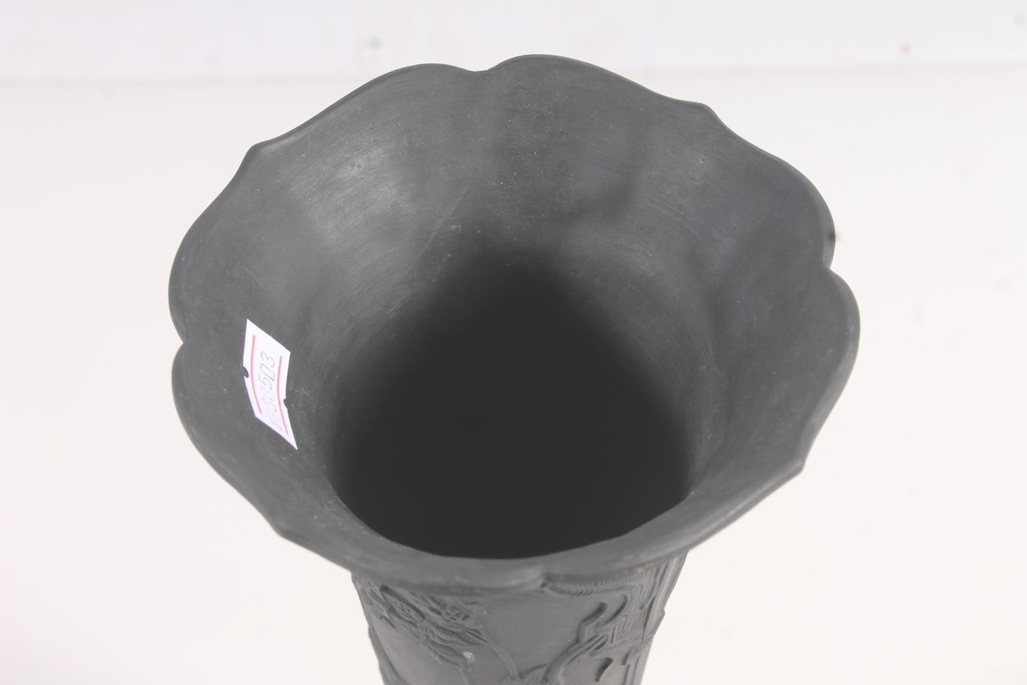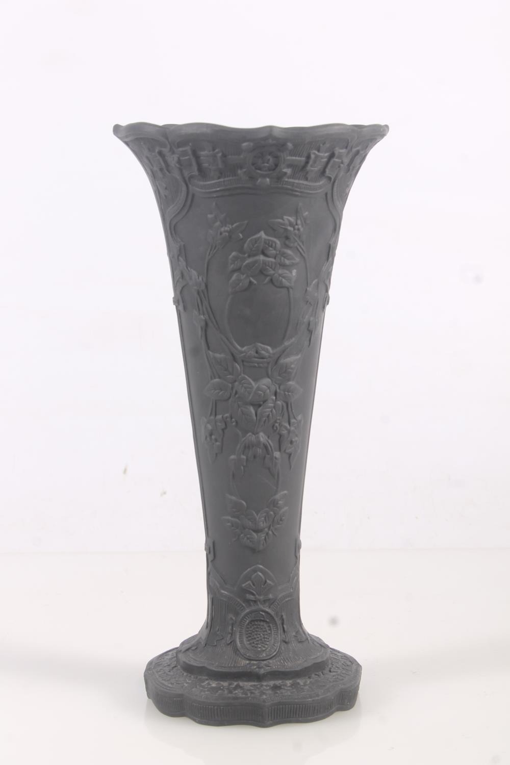 Wedgwood black basalt pottery trumpet form vase, H24cm.