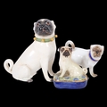 2 Meissen Pugs and another similar (A/F), each with crossed sword emblem to the underside, tallest 10cm