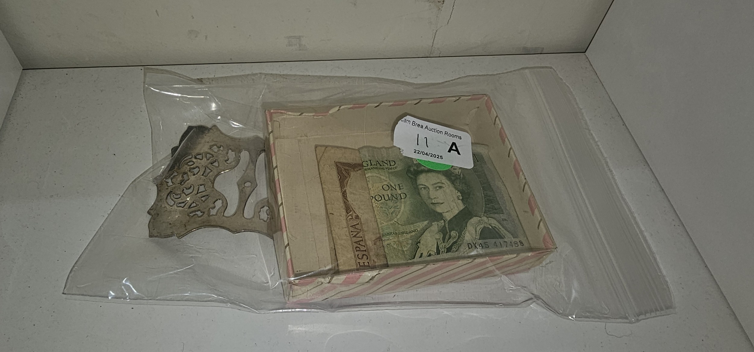 one pound note + other with belt buckle