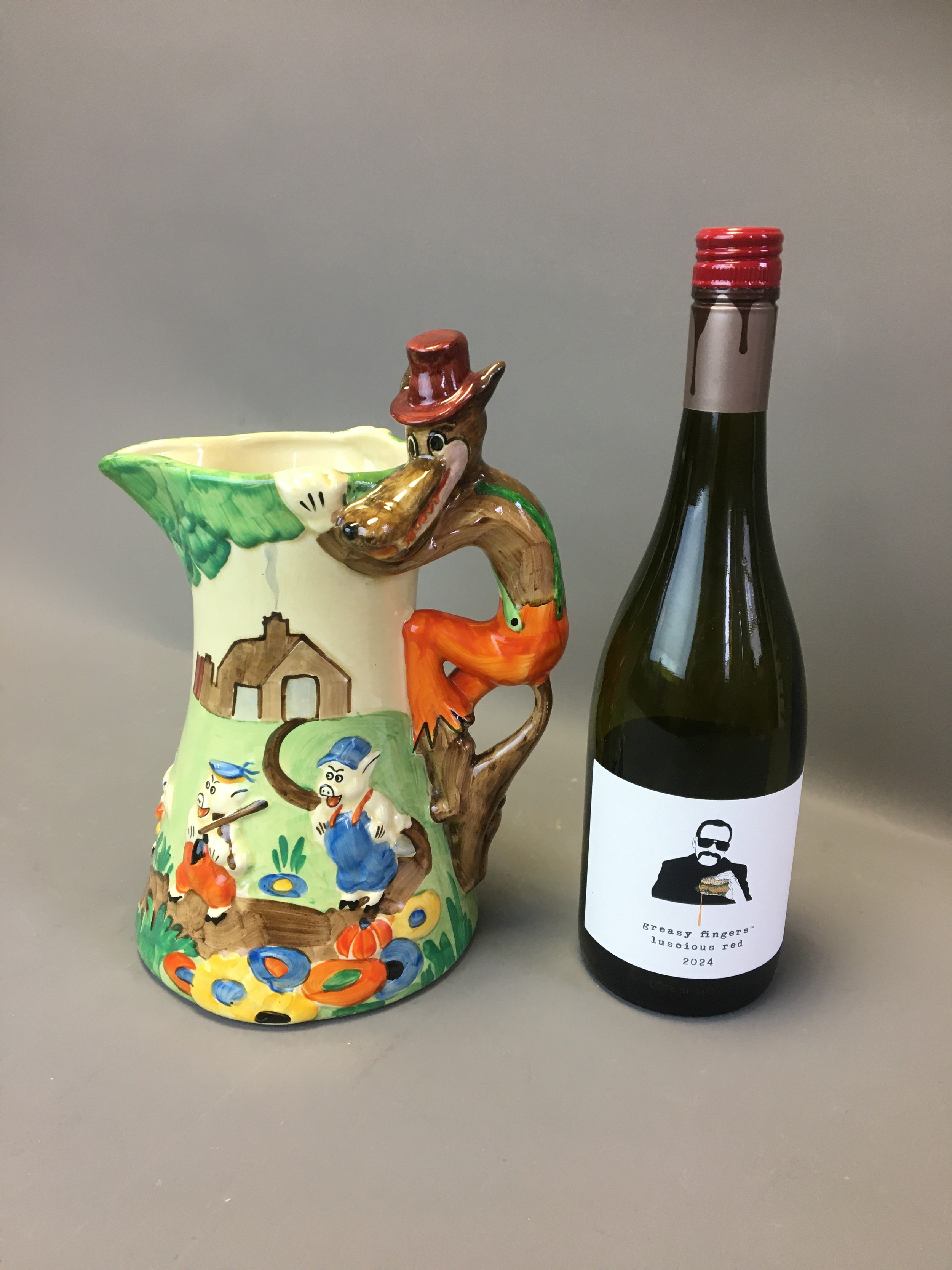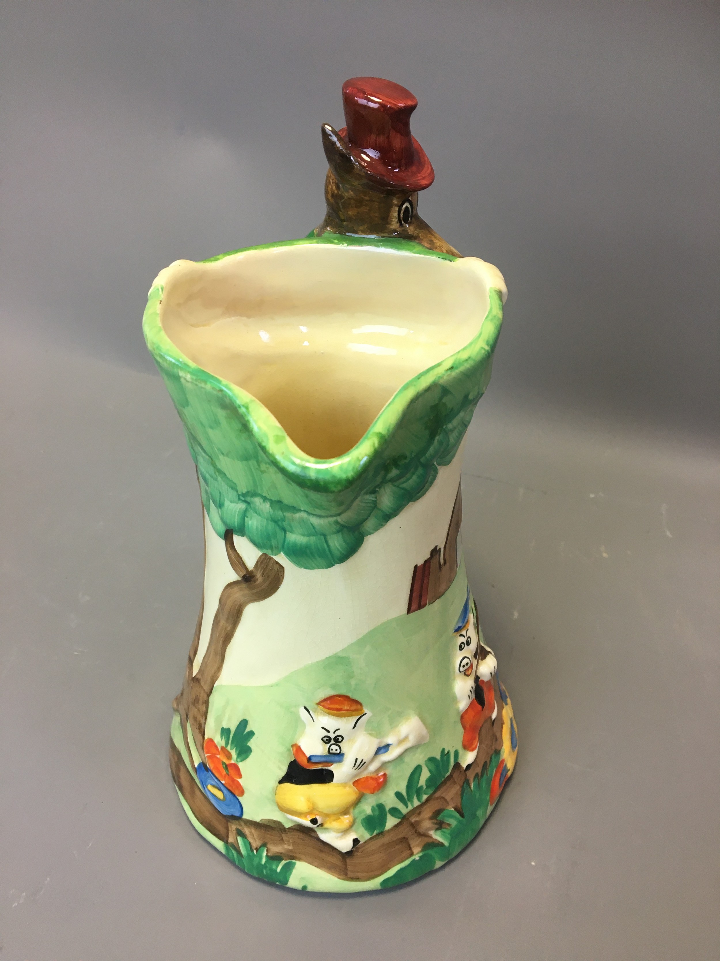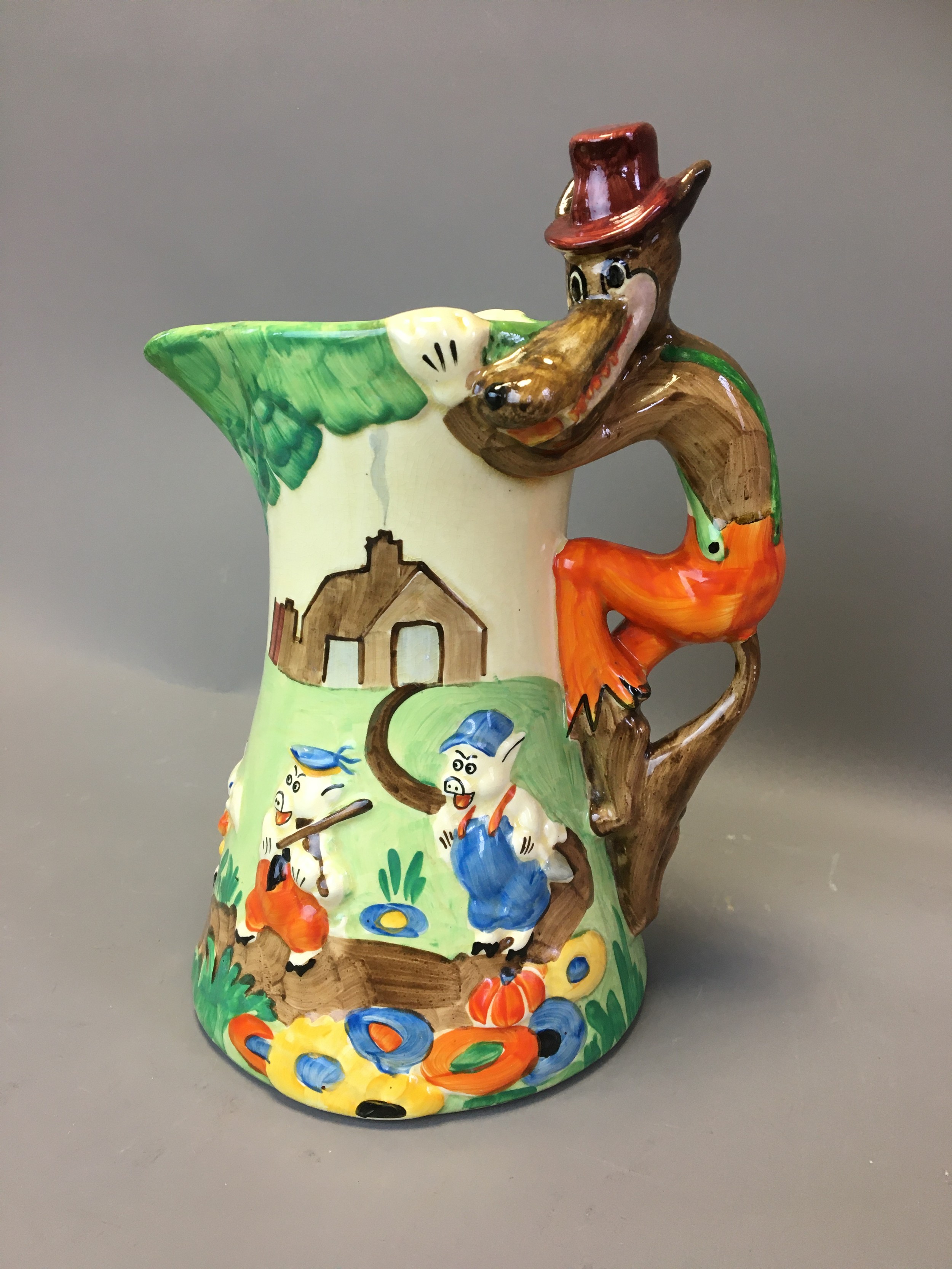 Art Deco - Circa 1930 Large Wade Heath "Big Bad Wolf and the Three Little Piggies" Jug Hand Painted.
