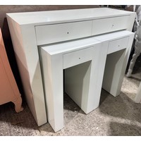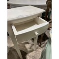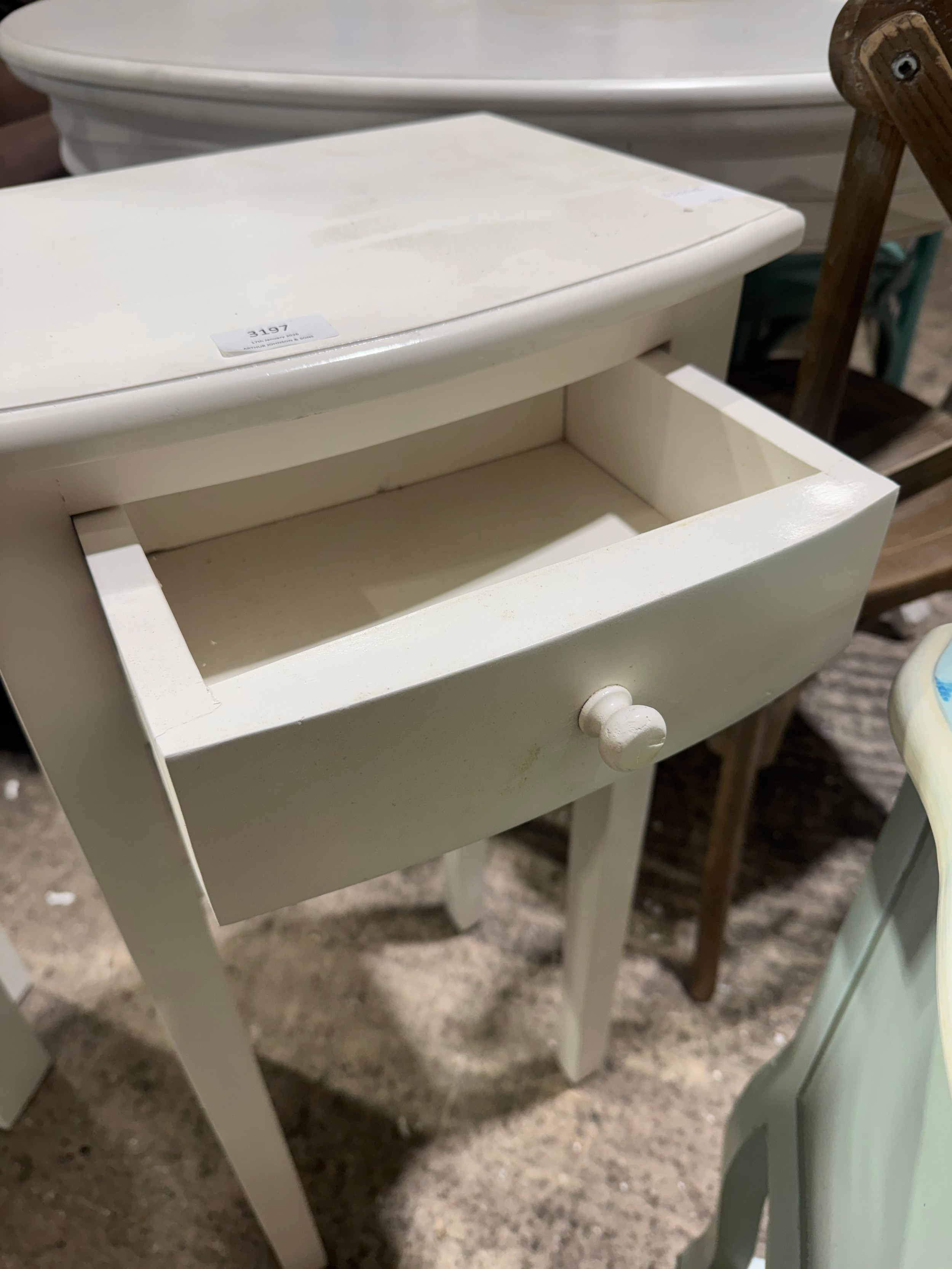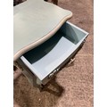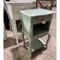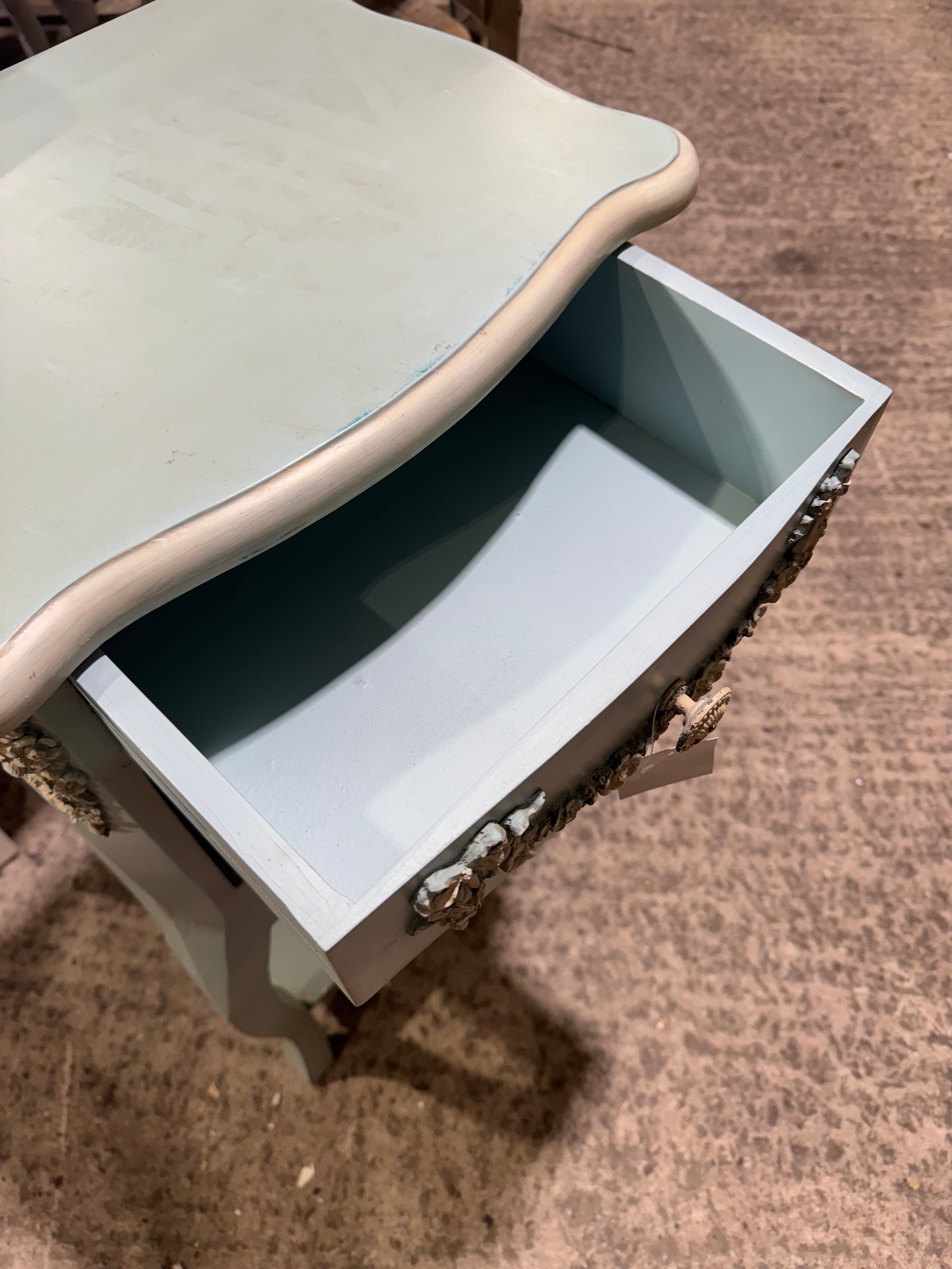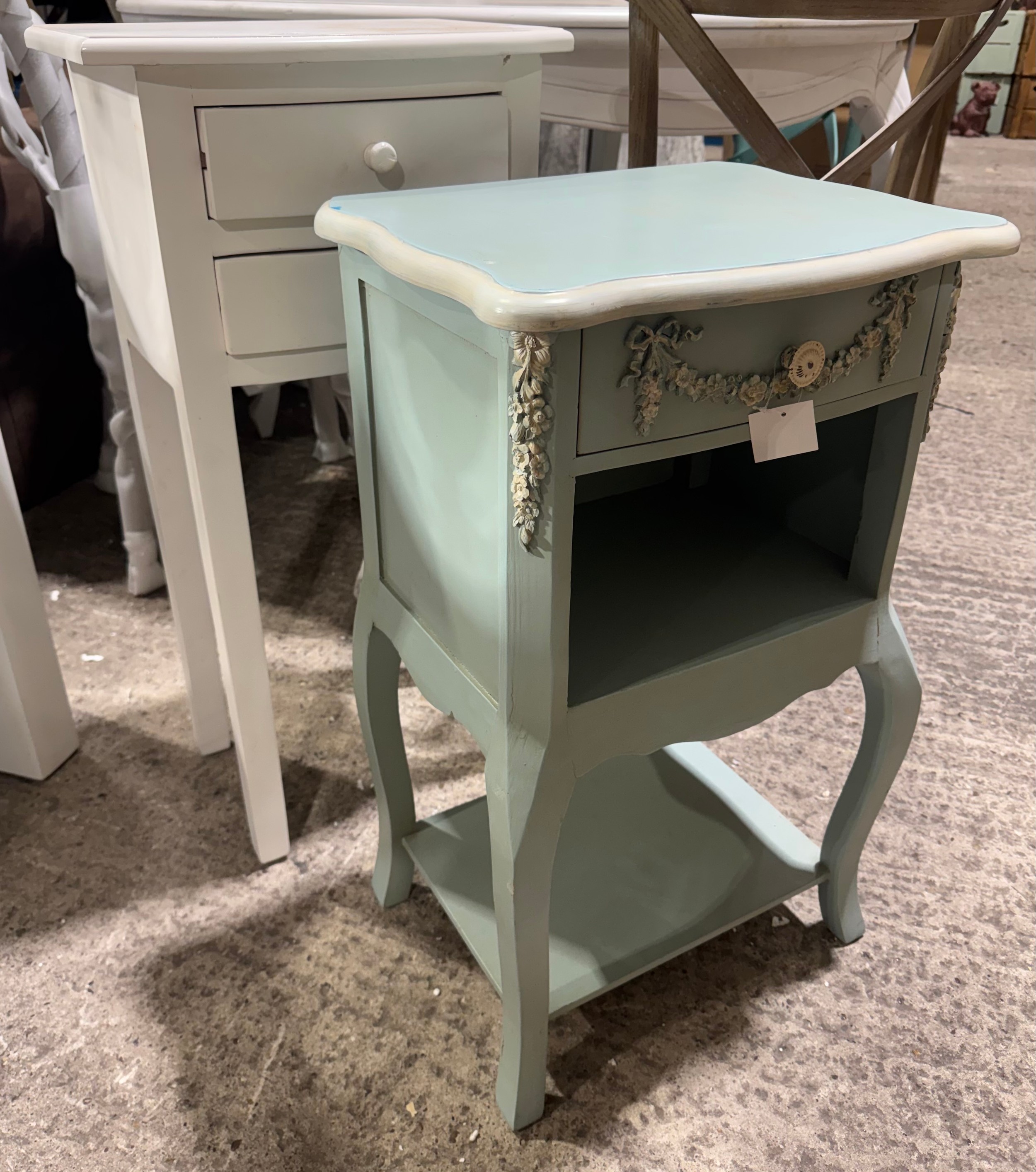 A white painted two drawer plant stand and a duck egg blue single drawer plant stand (marked)