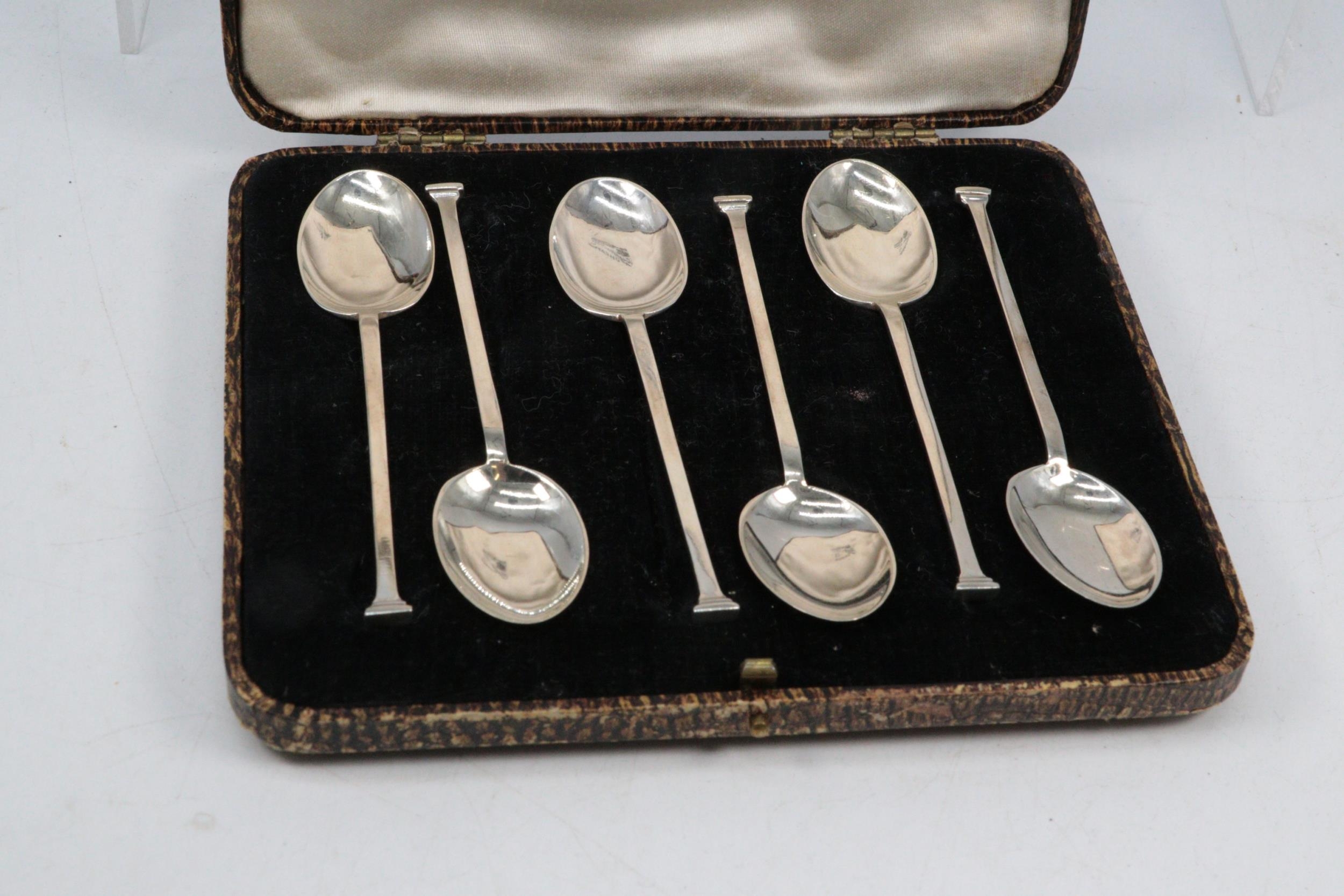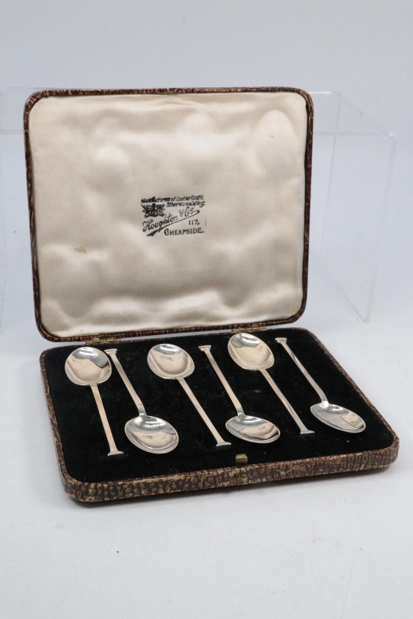 Set of six silver hallmarked spoons in fitted case, weigh approx. 38g