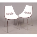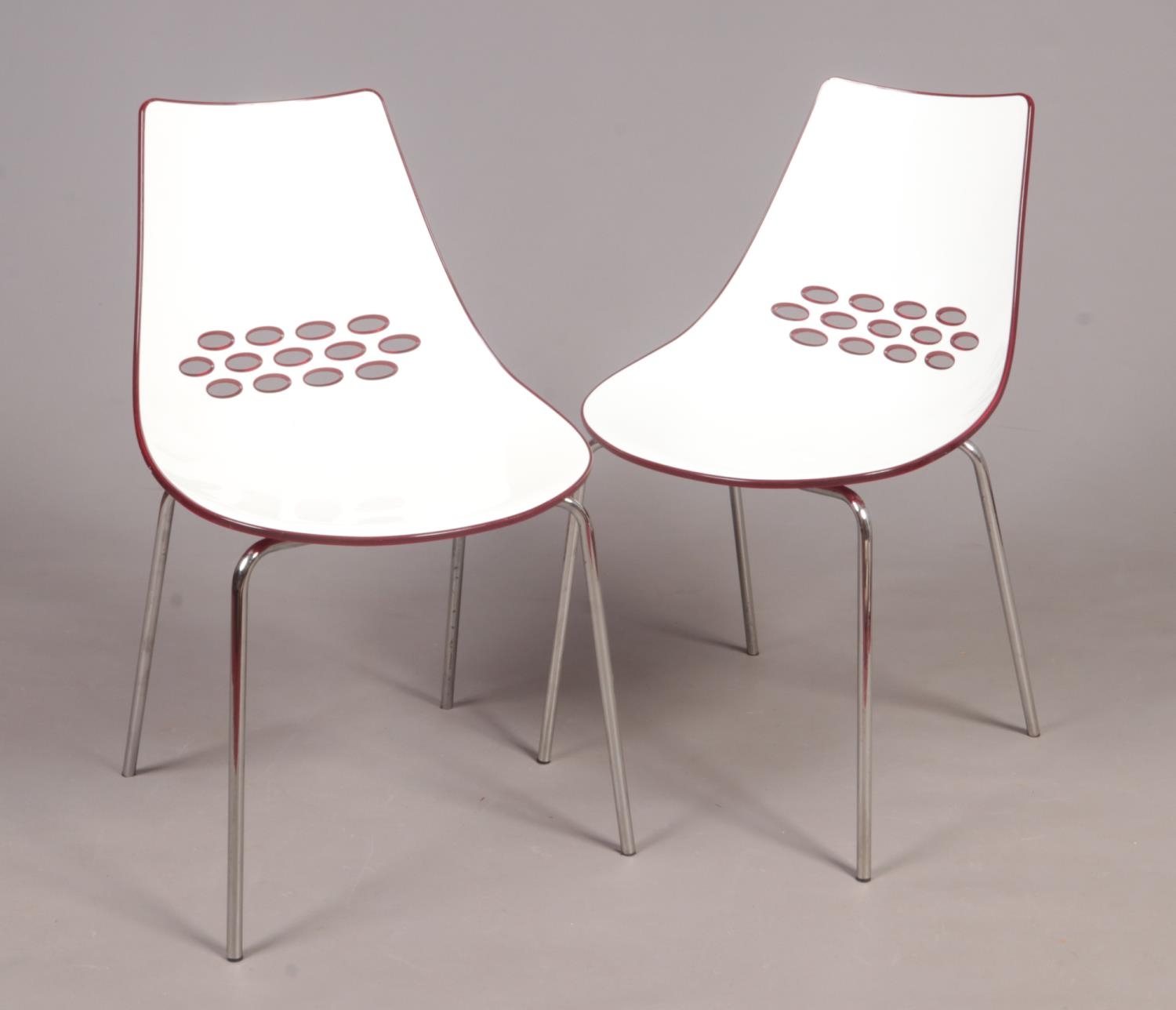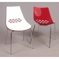 Two Calligaris Jam chairs with chrome legs in white & red. H: 81cm, W:46cm.