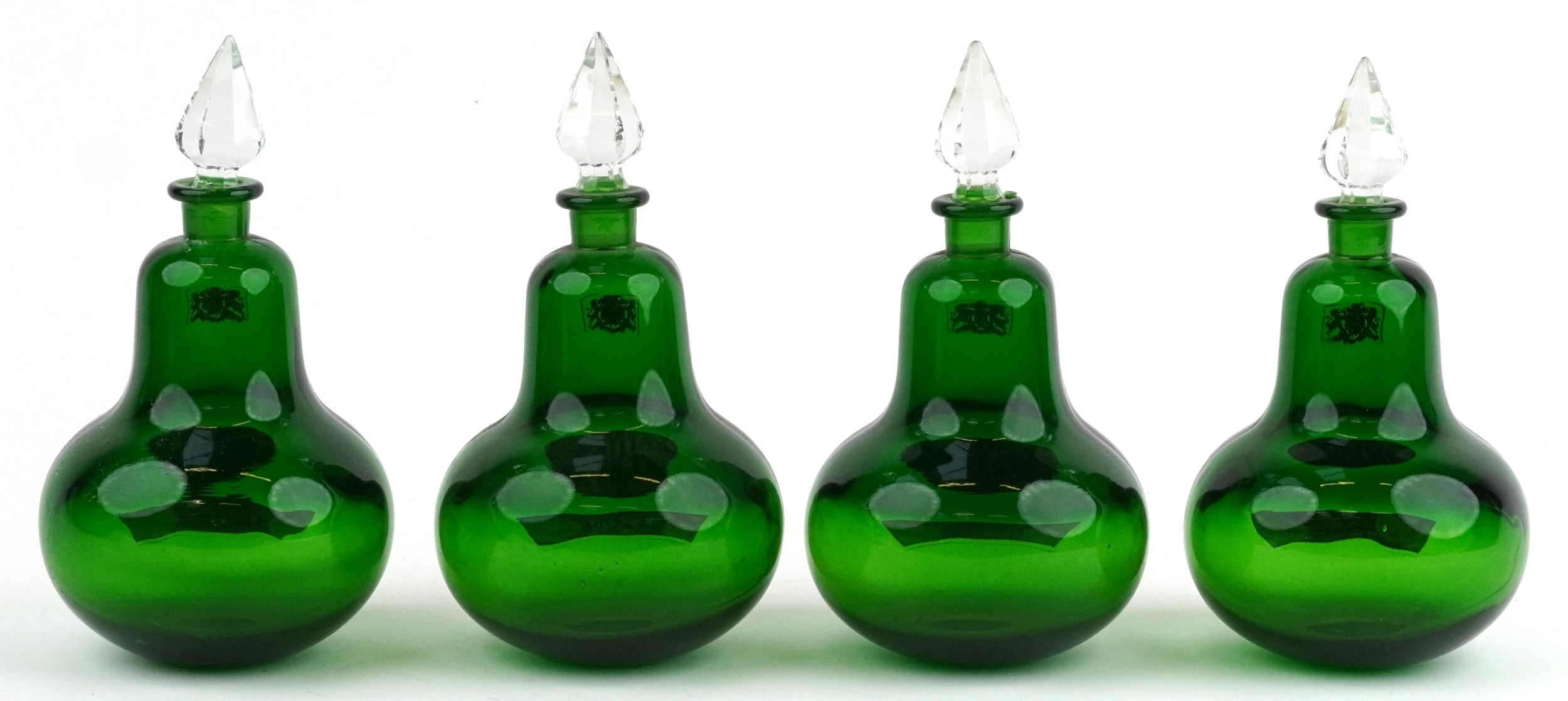 A set of four Royal Pharmaceutical Society emerald glass apo...