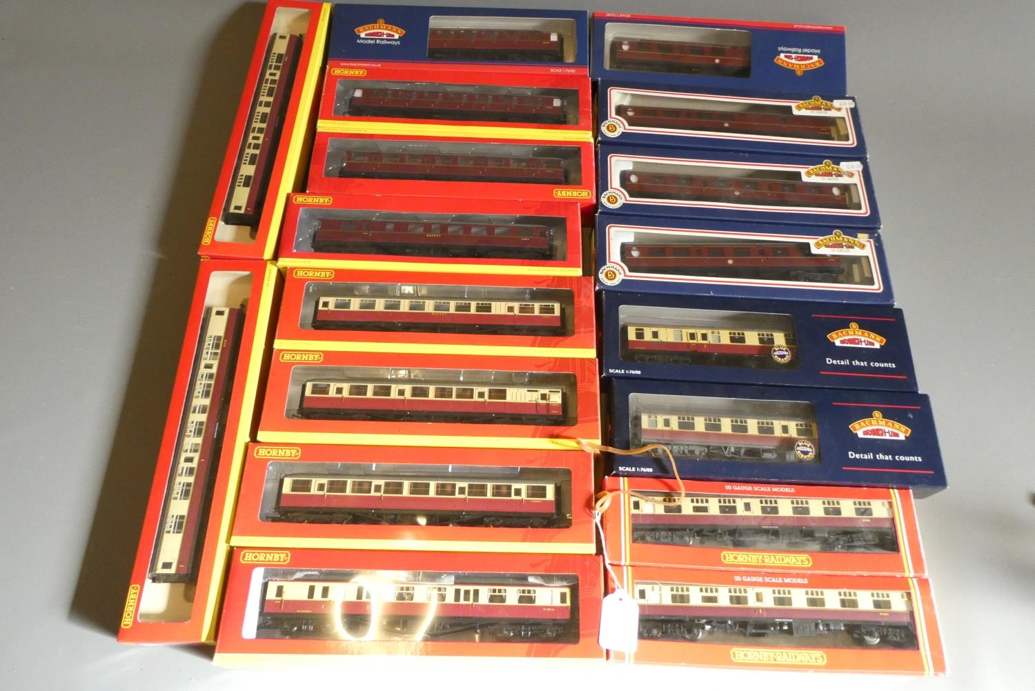 Eighteen Hornby and Bachmann BR coaches including Thompson NE types, all items boxed, good to excellent