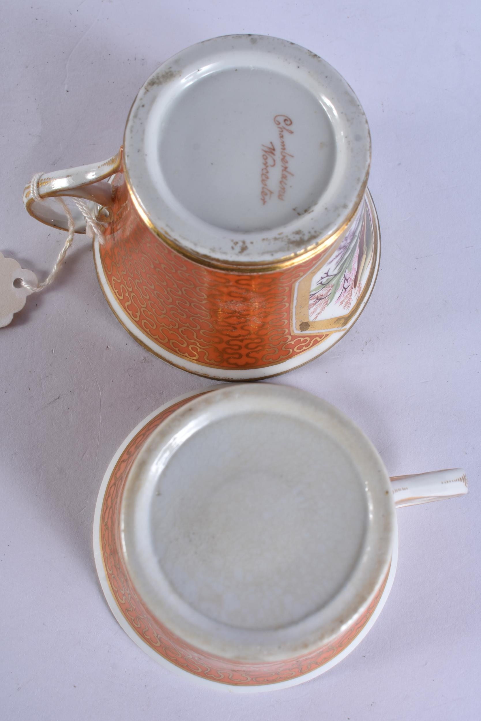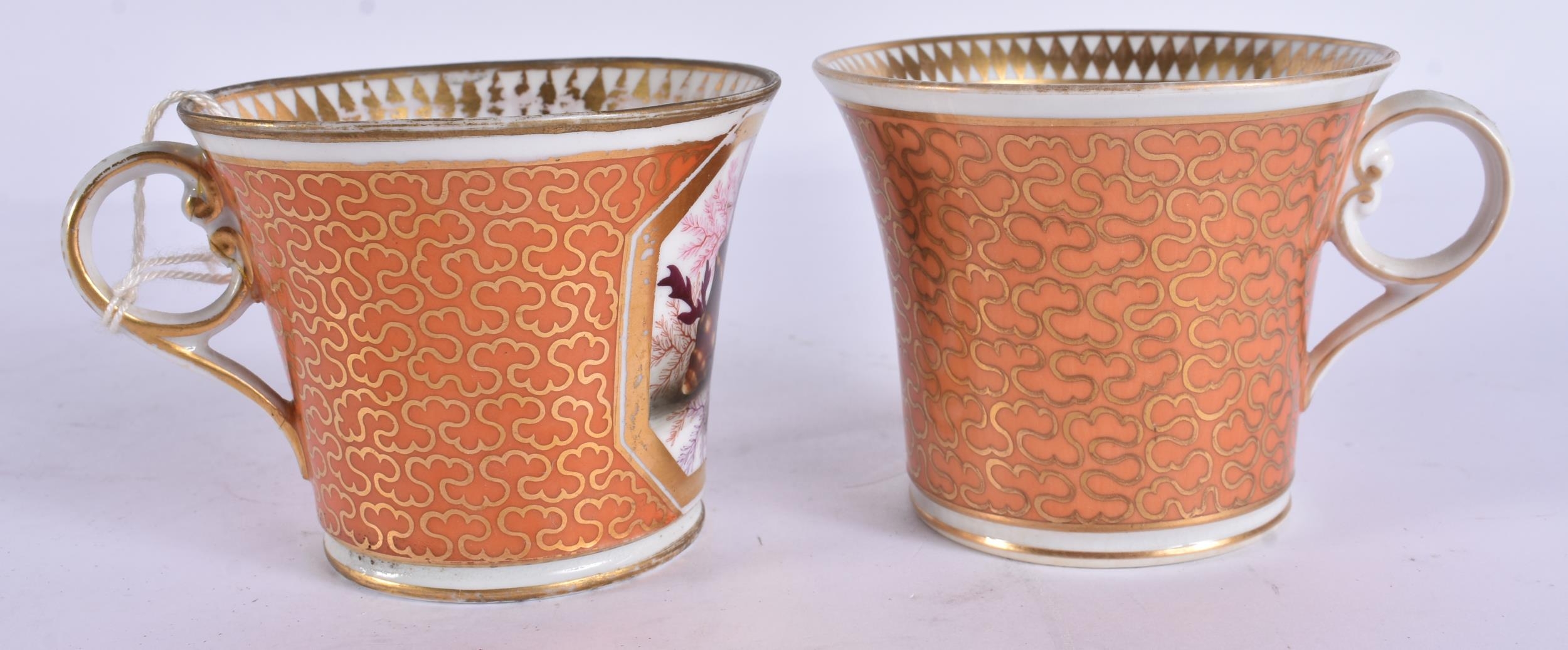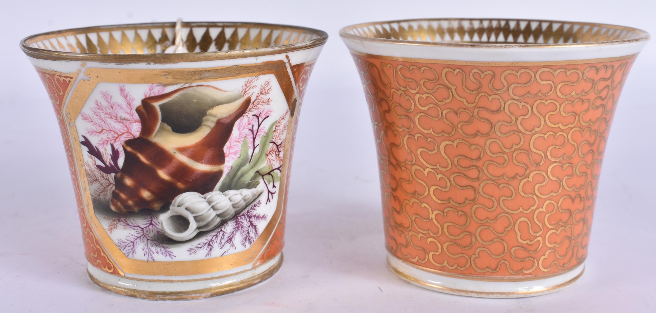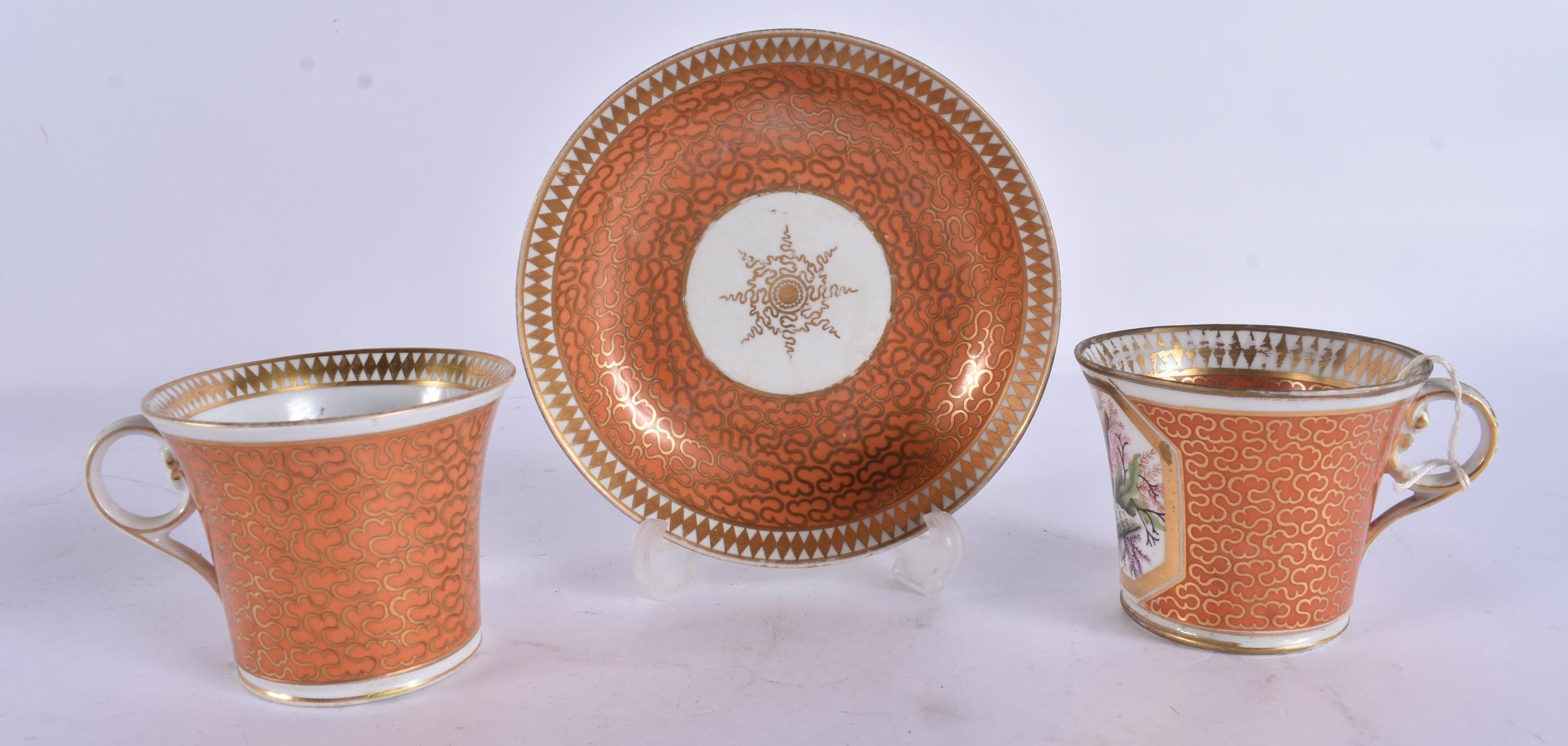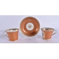 AN EARLY 19TH CENTURY CHAMBERLAINS WORCESTER PEACH GROUND SHELL TRIO. (3)