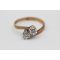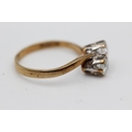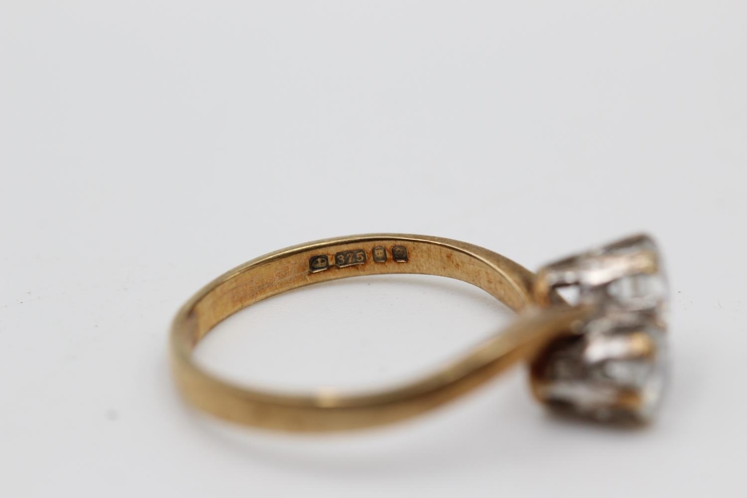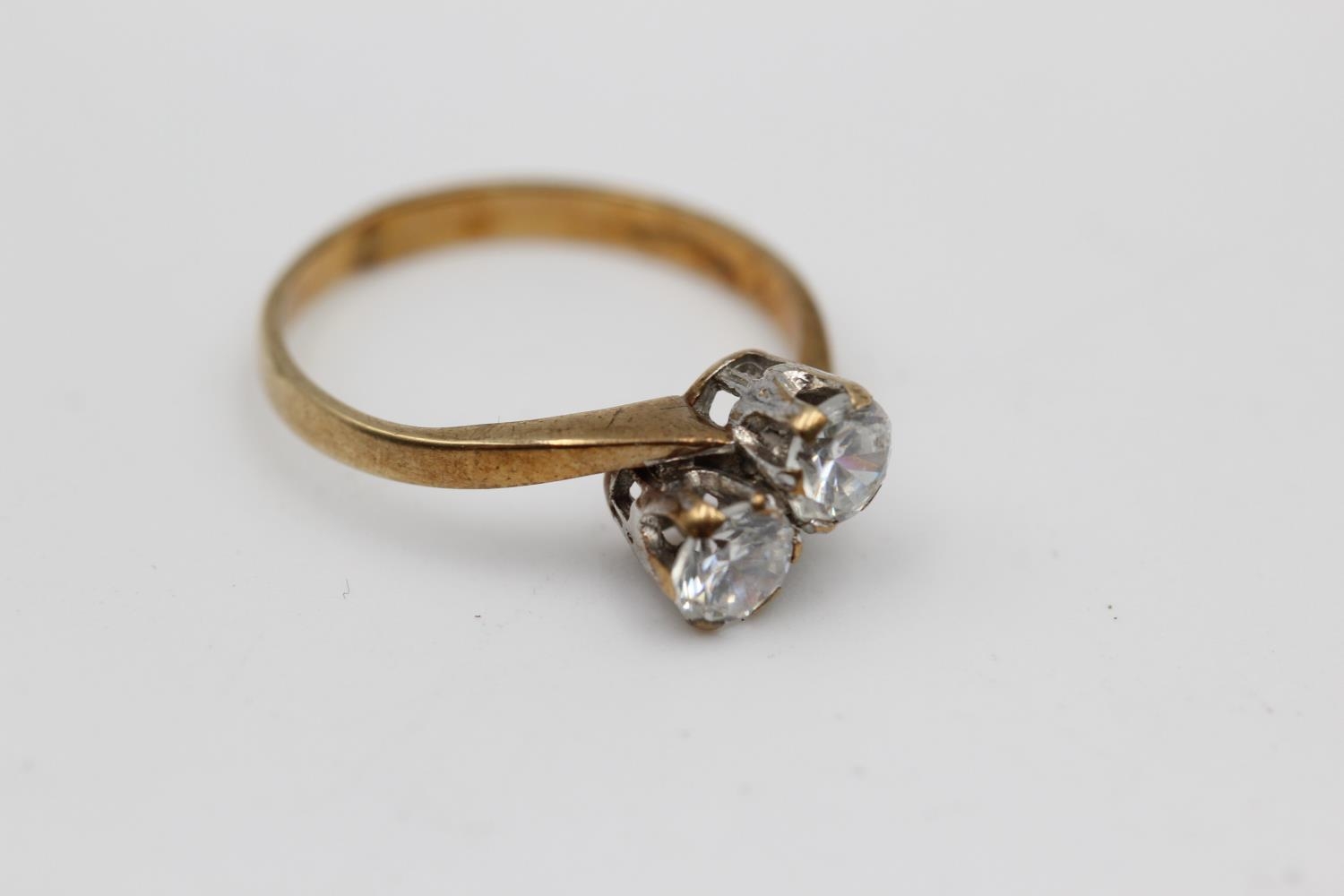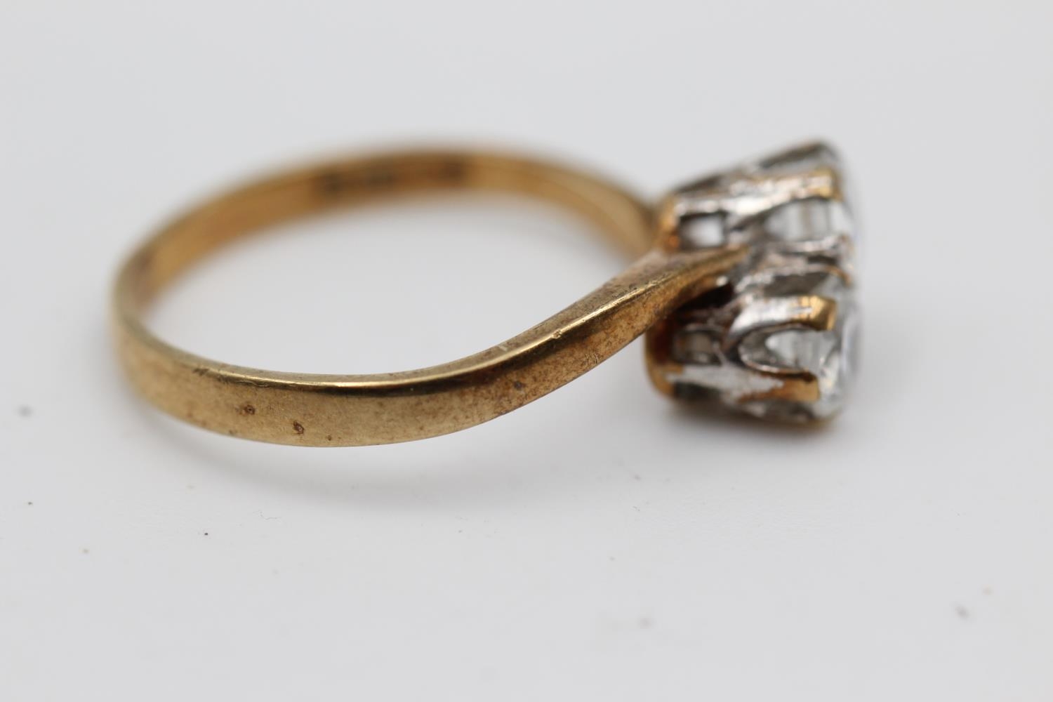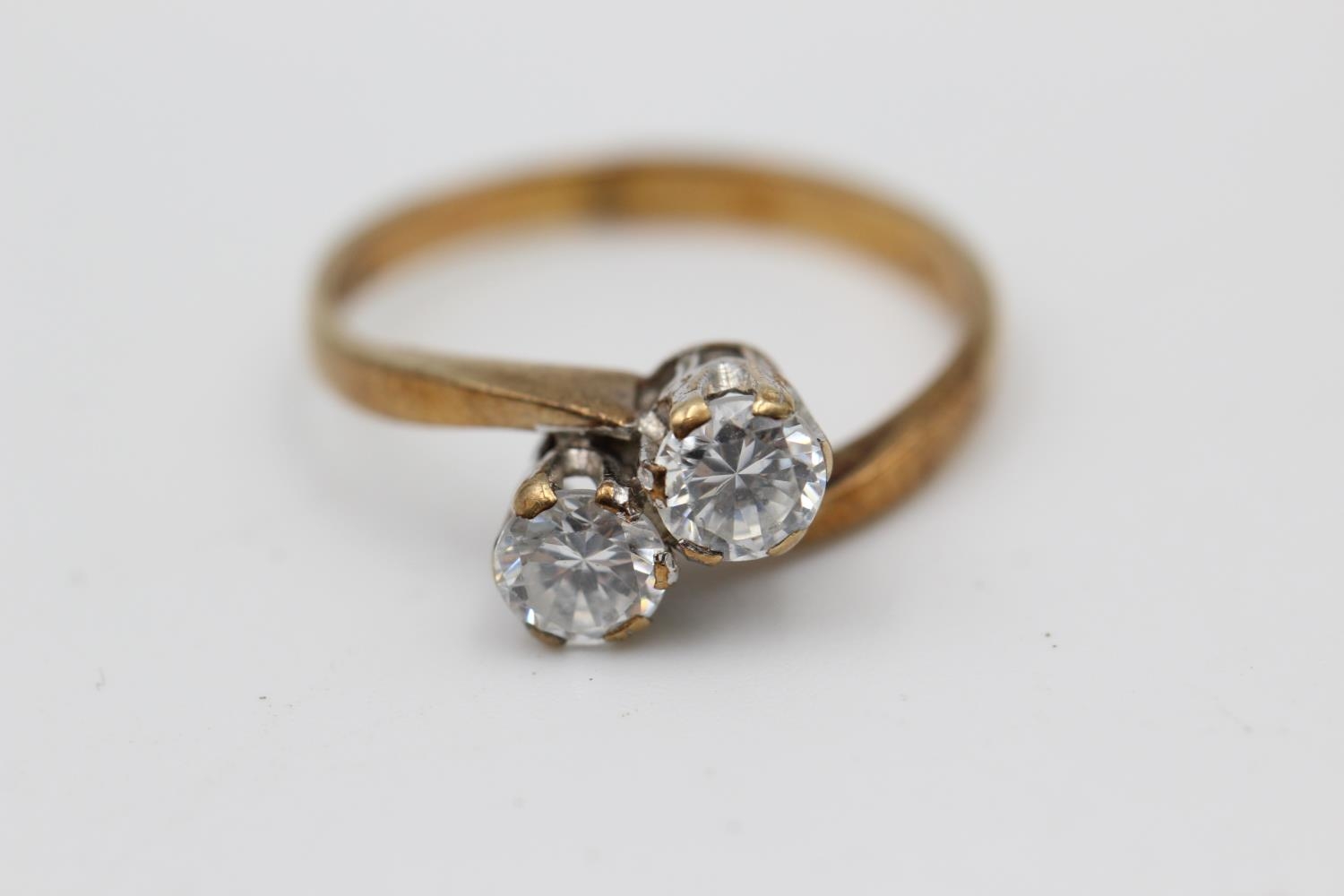 9ct gold vintage two stone twist clear gemstone ring (2.3g) Size M