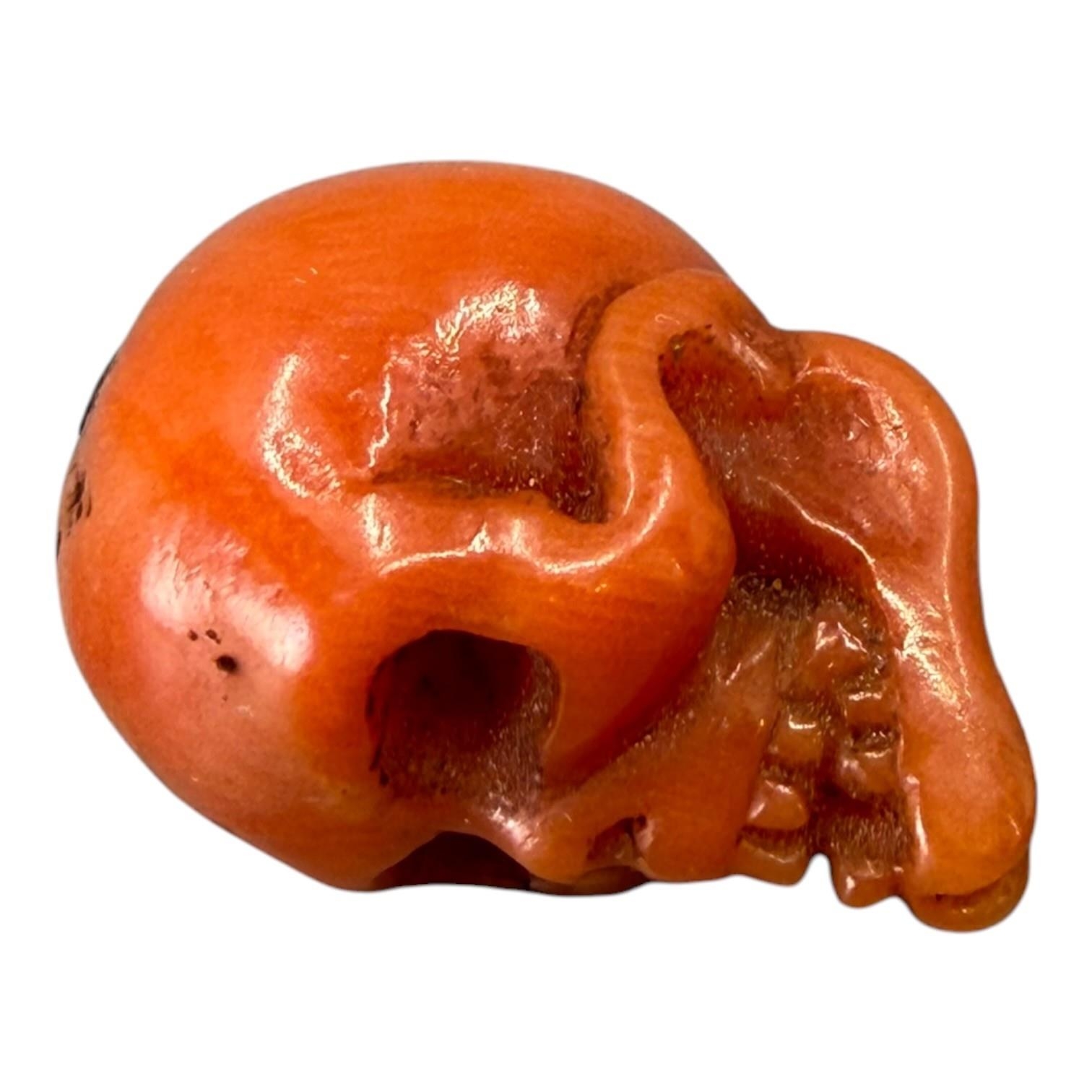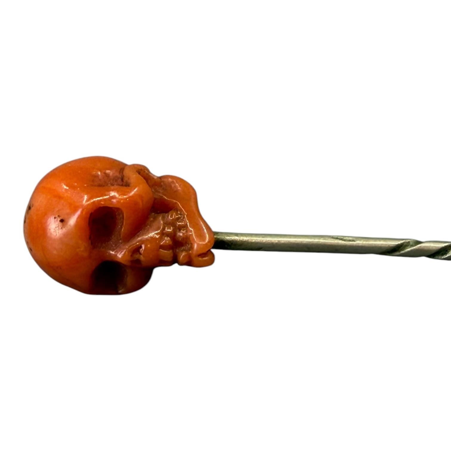 A 19TH CENTURY VICTORIAN CARVED CORAL SKULL STICKPIN