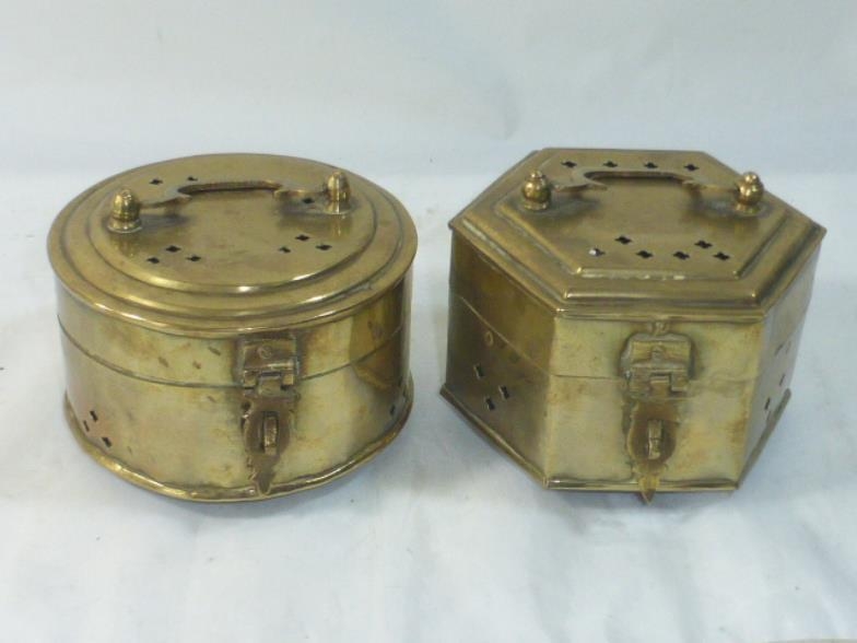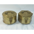 Two Vintage Hexagon-Shaped Brass Trinket/Incense Box with Handle, Hinged Lid & Latch, Made in India