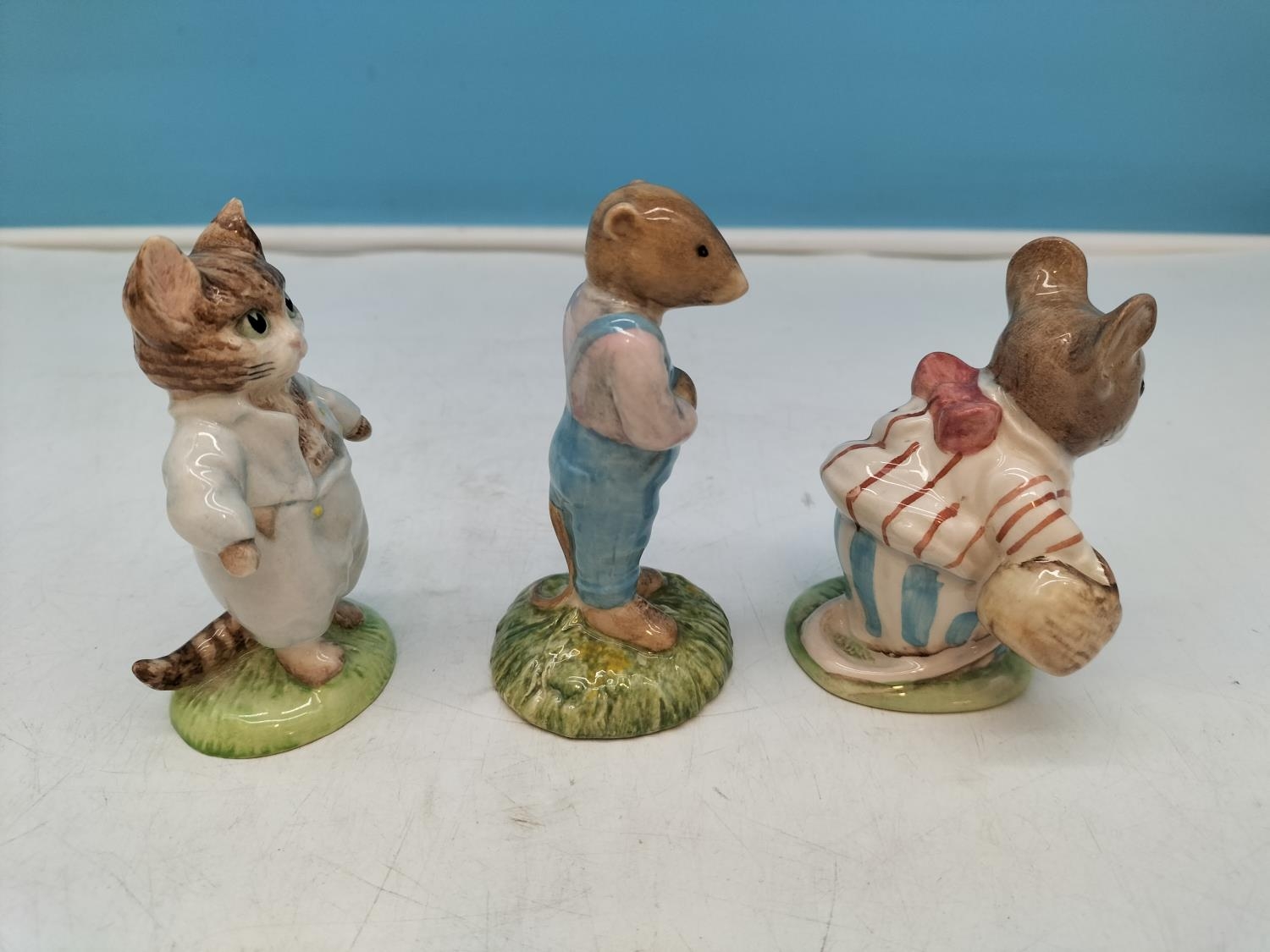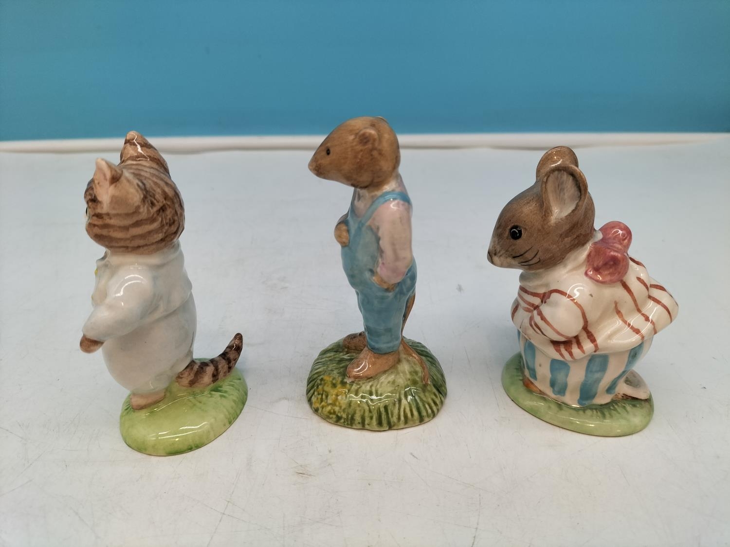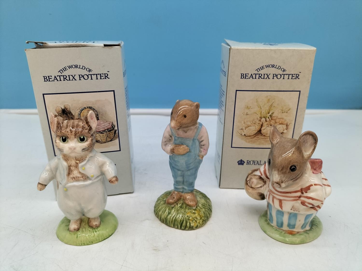 Boxed Royal Albert Beatrix Potter 'Tom Kitten' and 'Mrs Tittlemouse' plus 'Ratty' from the Wind in the Willows AW3. Tallest 9cm.