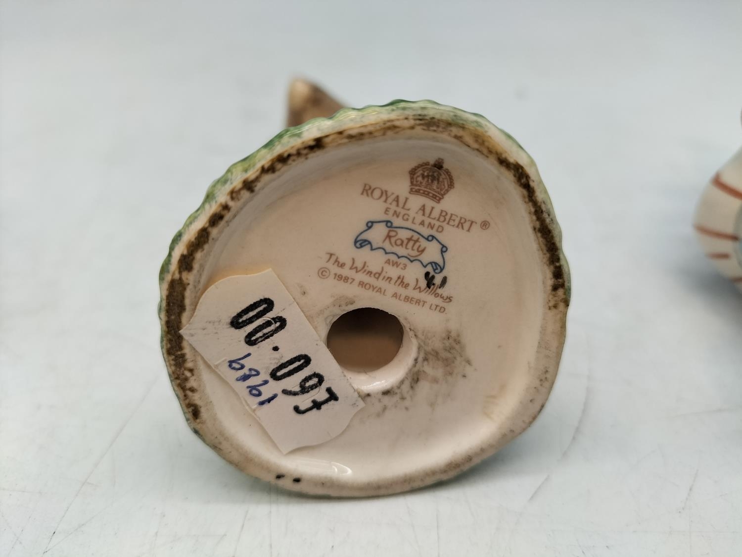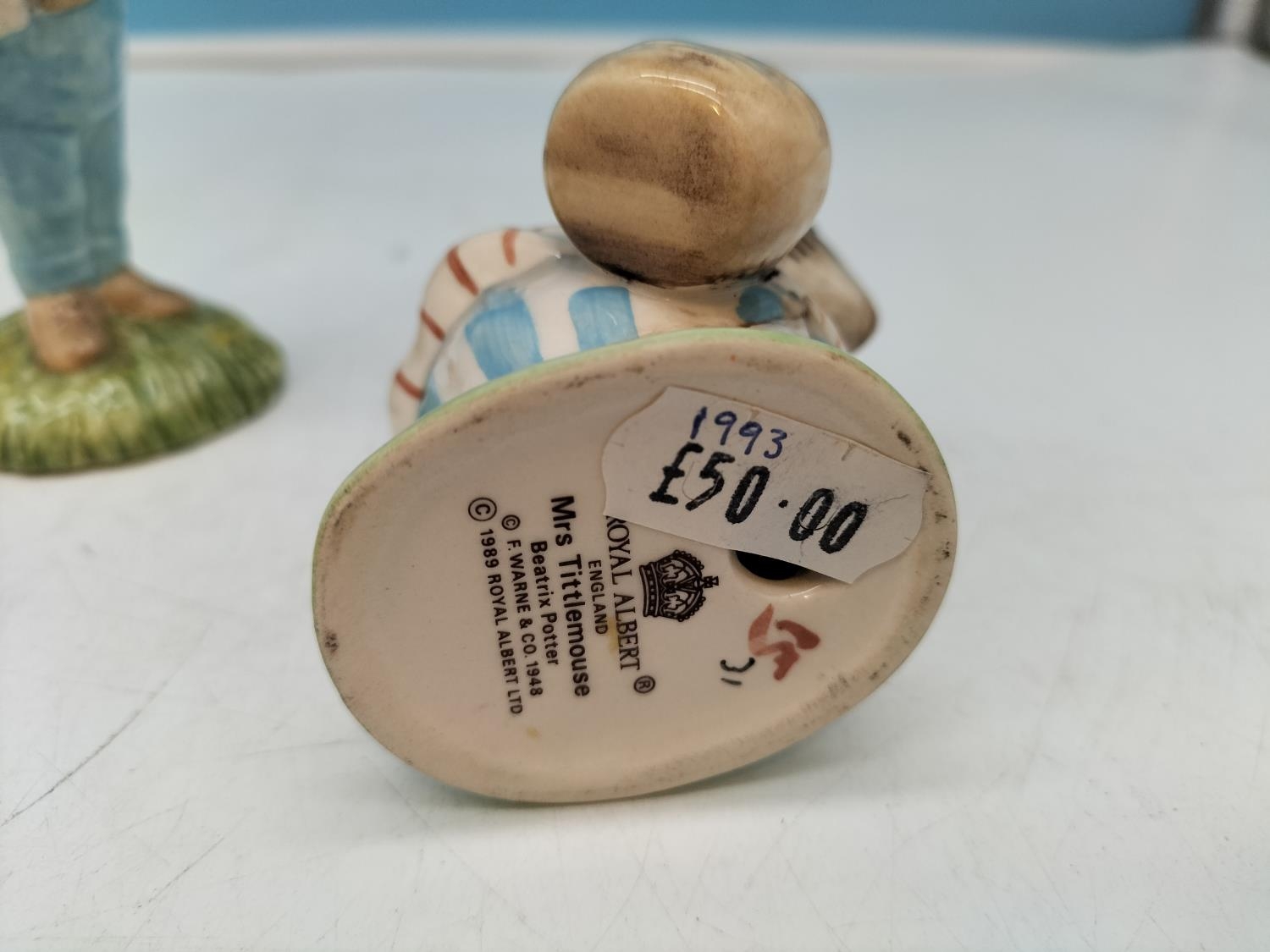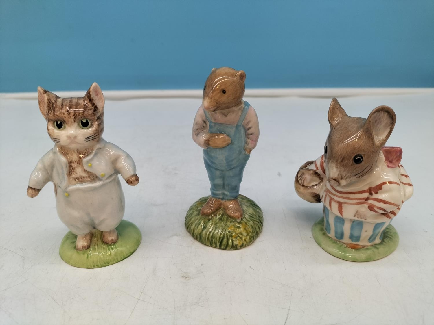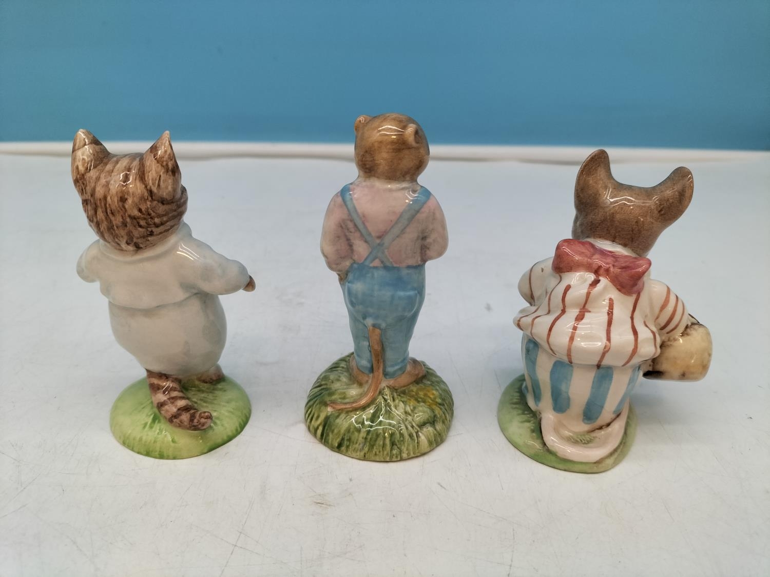 Boxed Royal Albert Beatrix Potter 'Tom Kitten' and 'Mrs Tittlemouse' plus 'Ratty' from the Wind in the Willows AW3. Tallest 9cm.