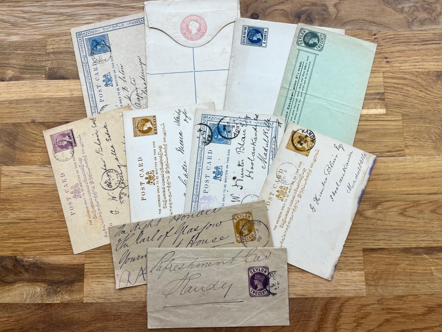 CEYLON 1880 - 1900 postal stationery items x 10, used and unused. Generally good condition.