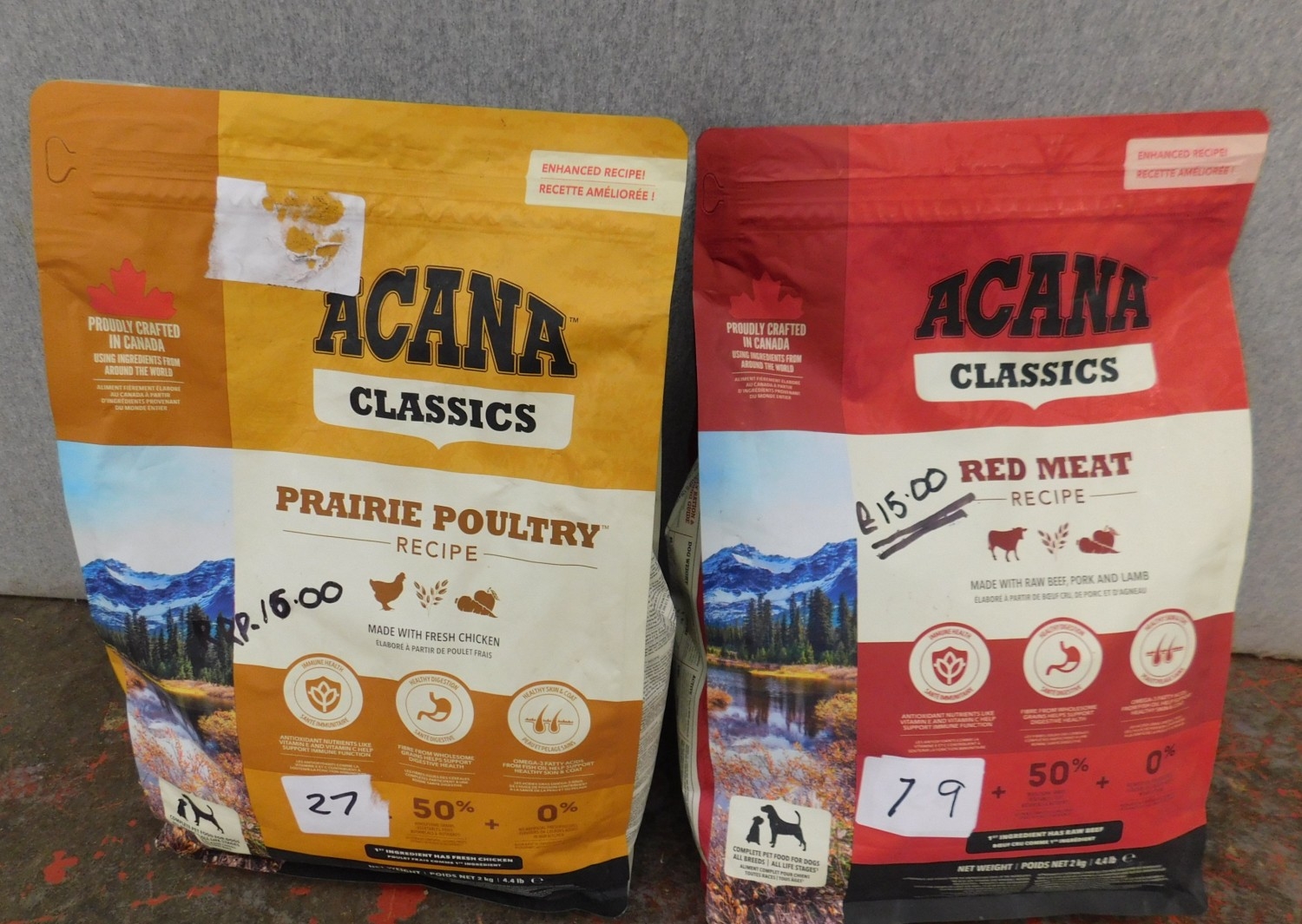 Two new 2KG Acana Classics dog food; Praire Poultry and Red Meat recipe