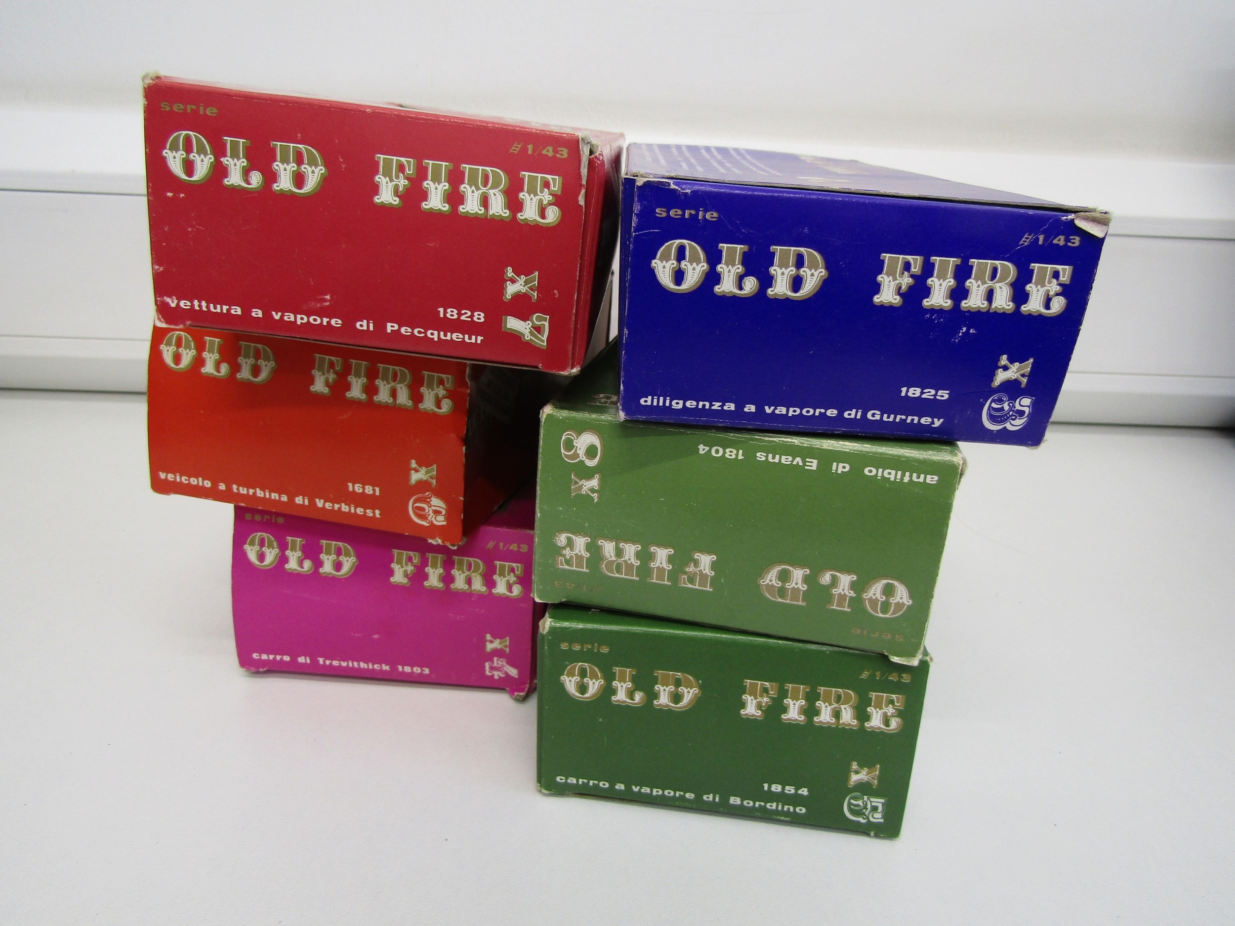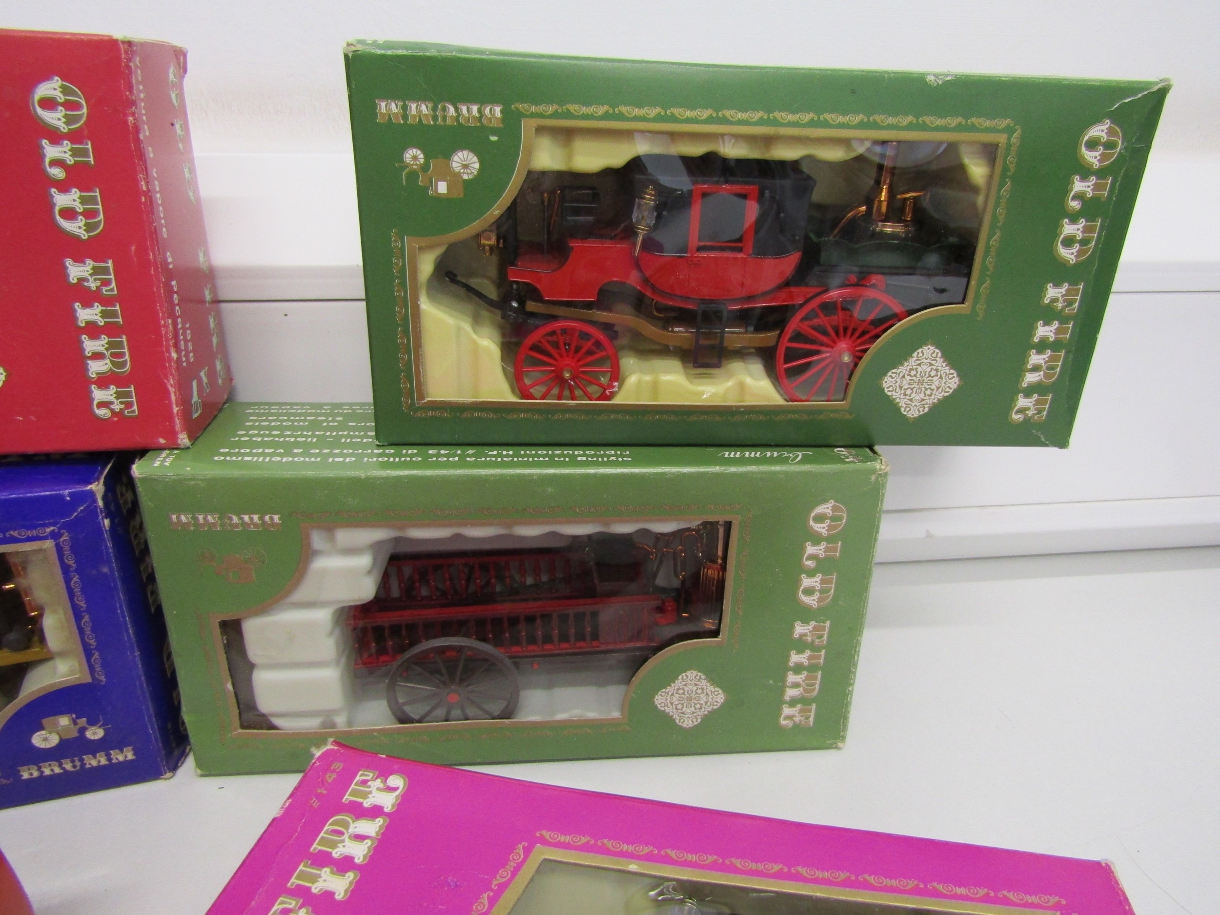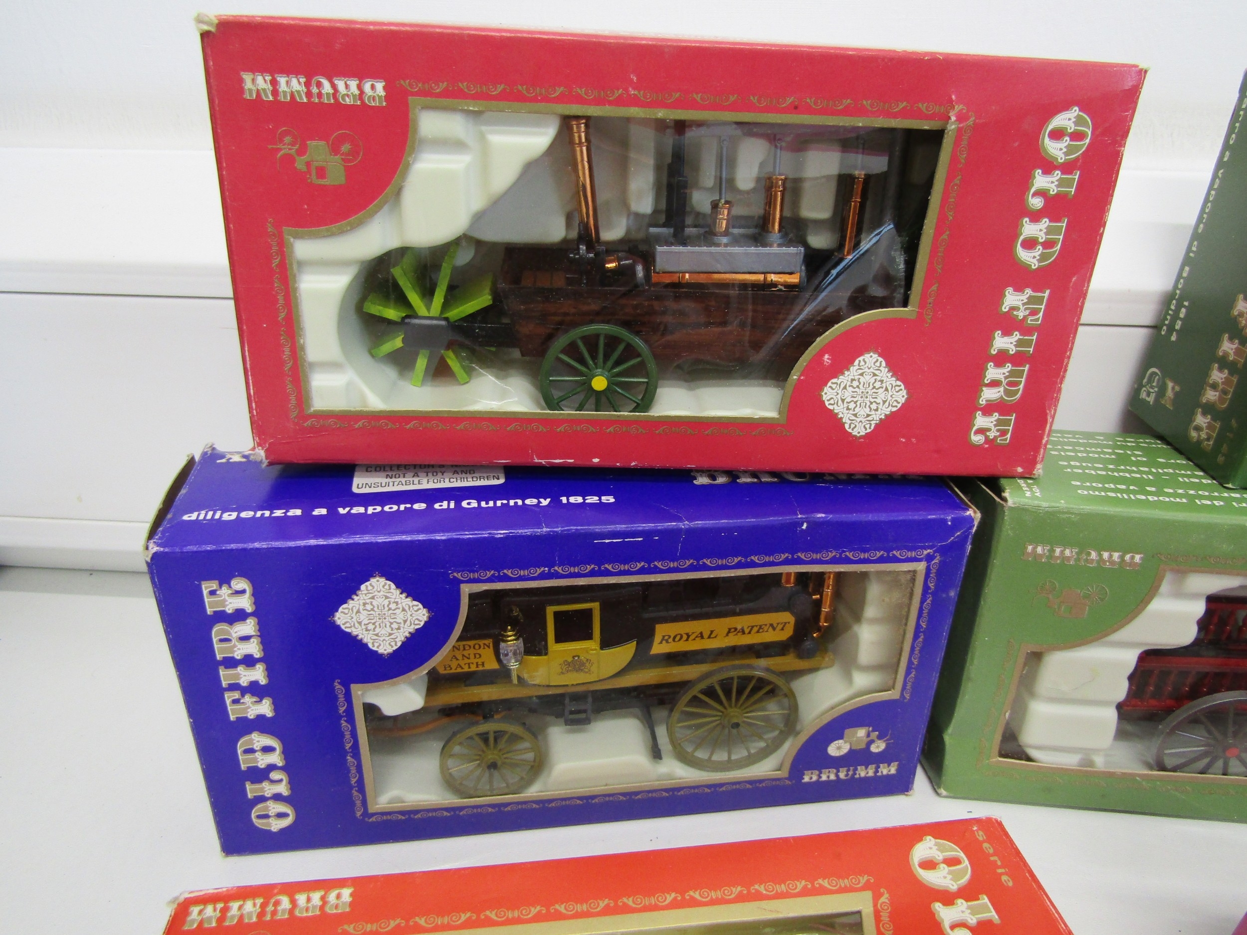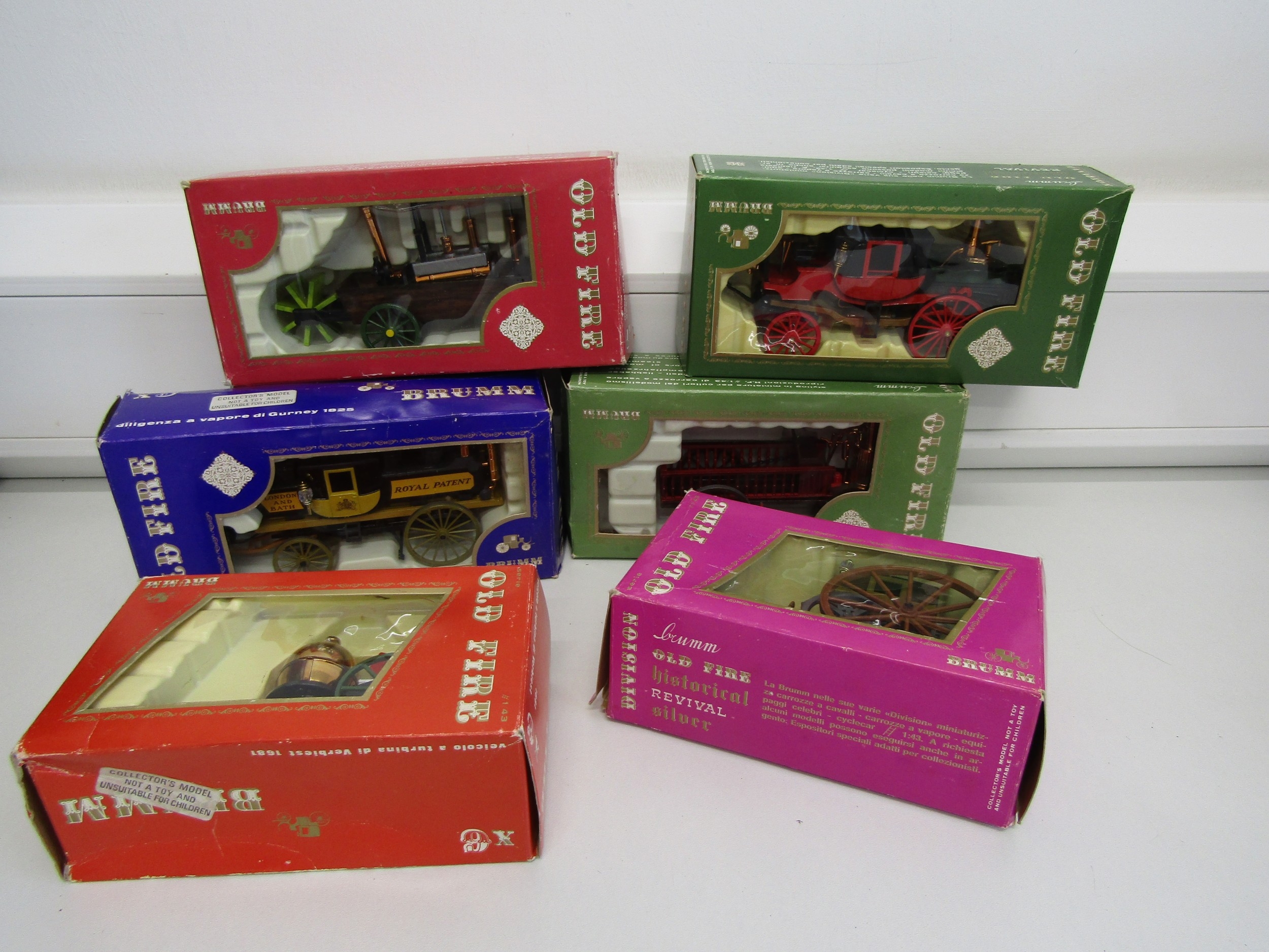 Six boxed Brumm "Old Fire" model steam engines.