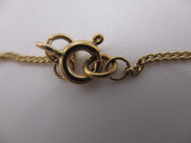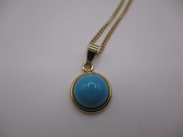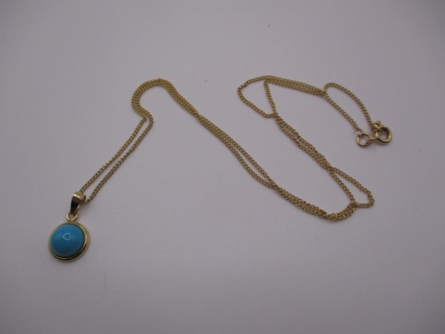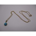 A 9ct yellow gold necklace with turquoise pendant, approx linear length 44cm, in near unused condition, approx weight 2.8g