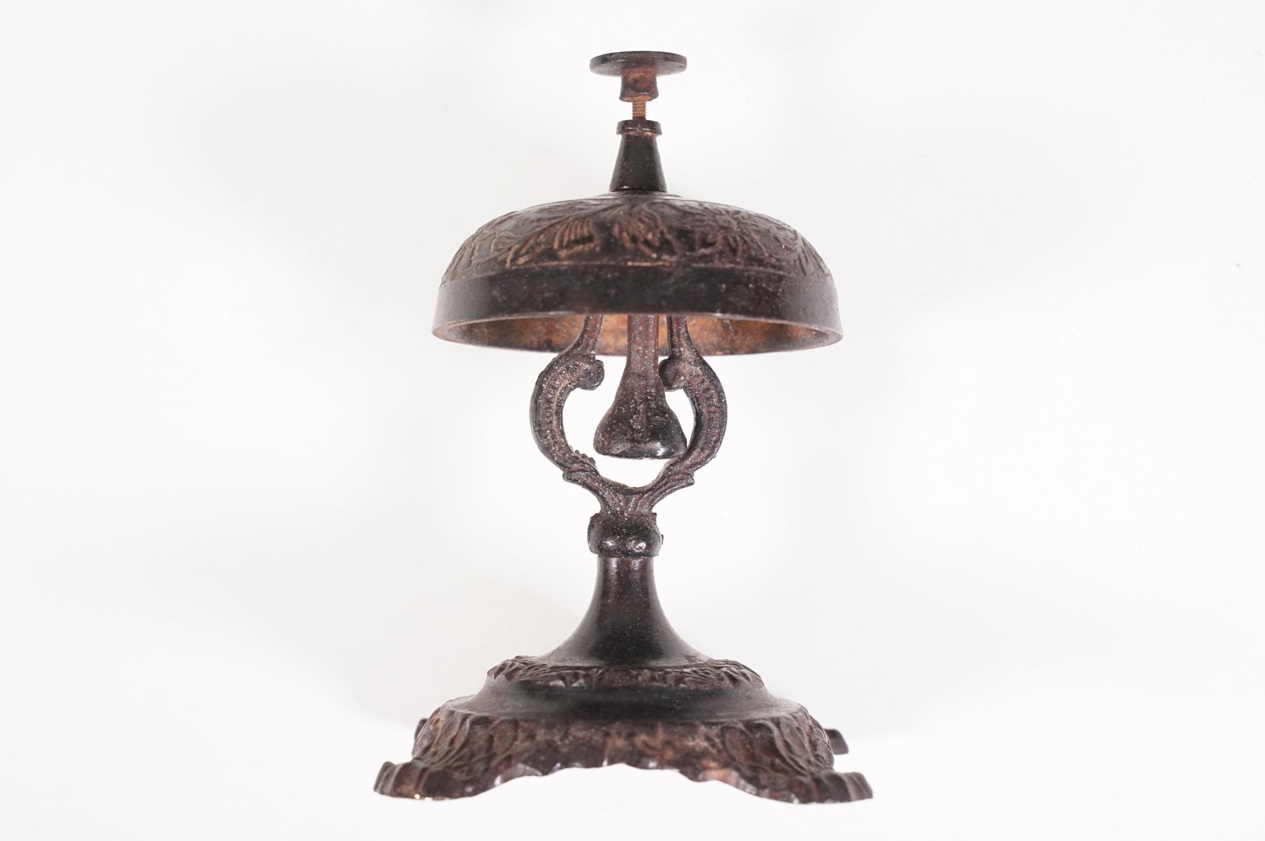 Victorian style cast metal hotel reception / shop counter bell, 15cm high