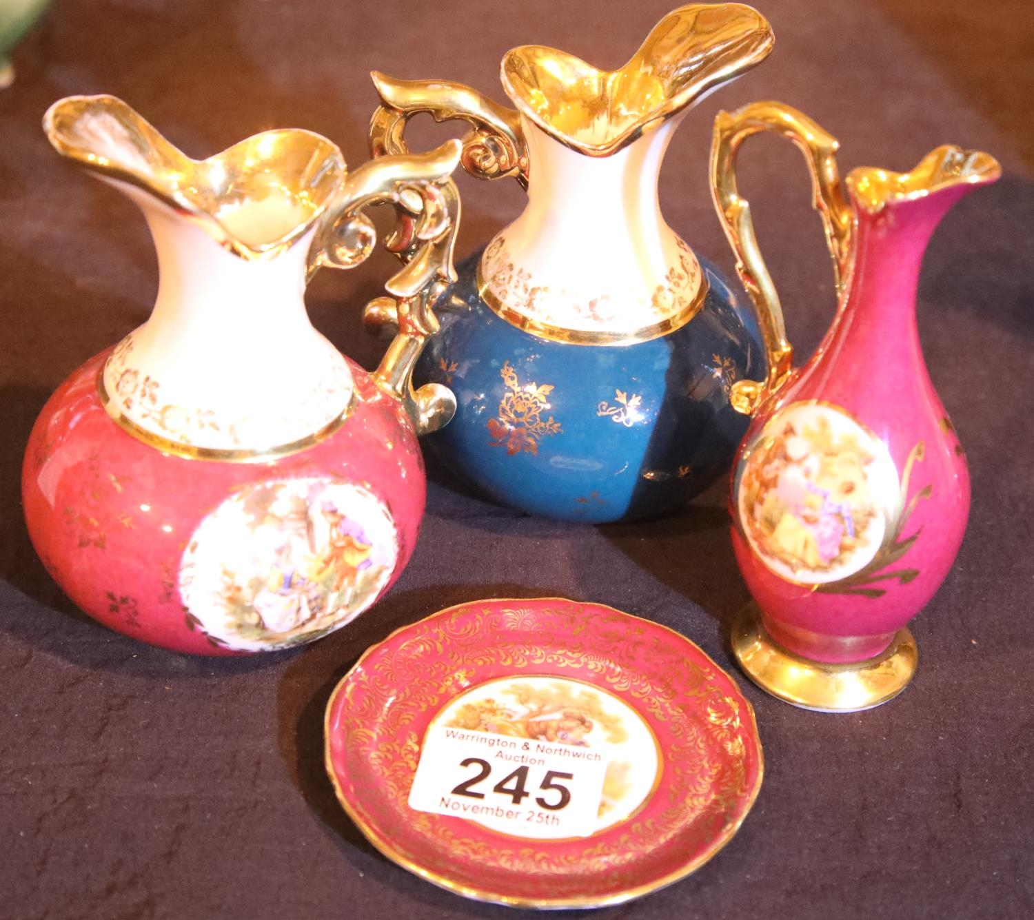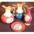 Three Limoges jugs and small pin dish. Not available for in-house P&P