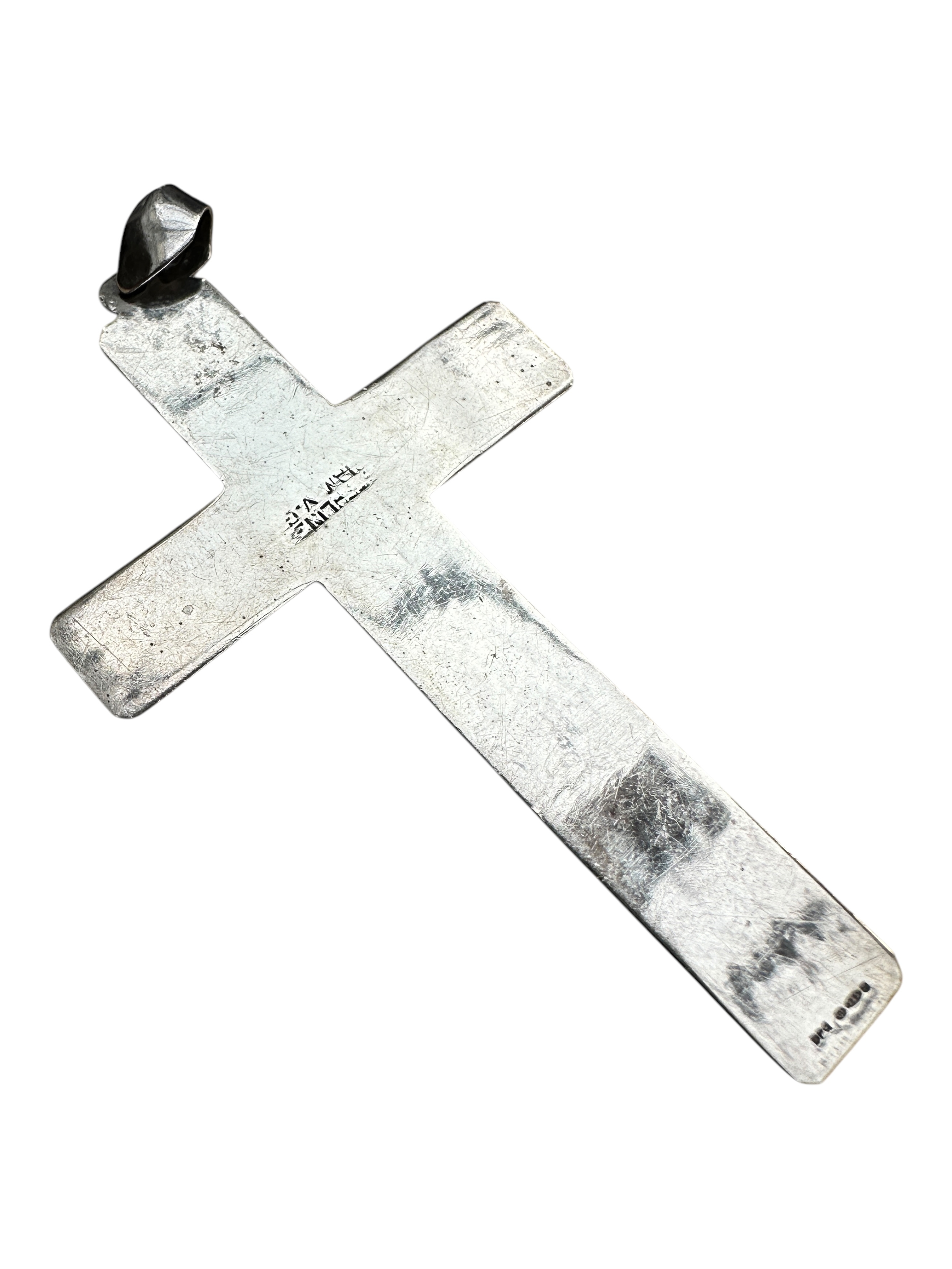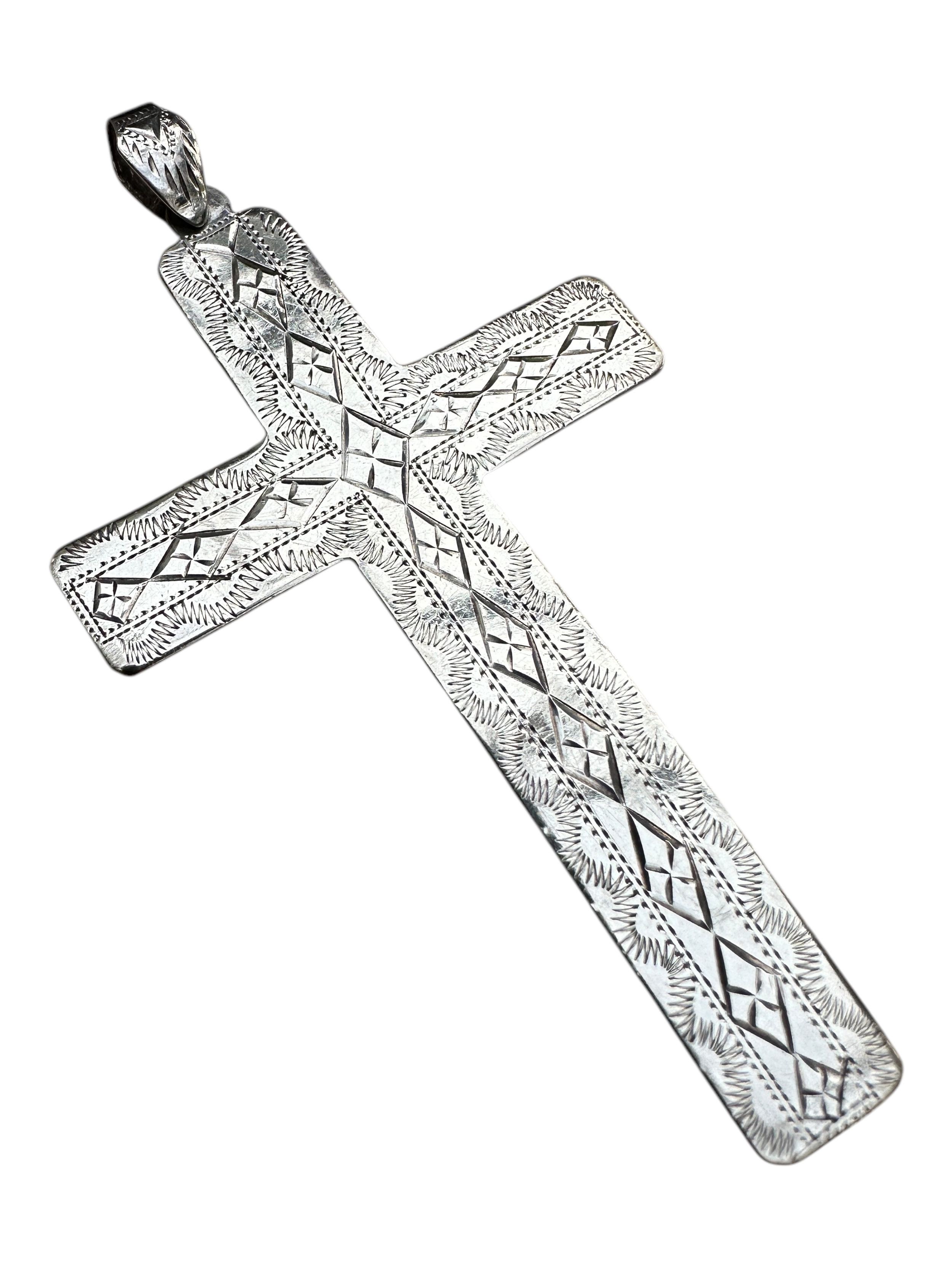 Large Engraved Silver Cross Pendant. Stamped Marks to Reverse amd London 1972 Import Hallmarks. 8g