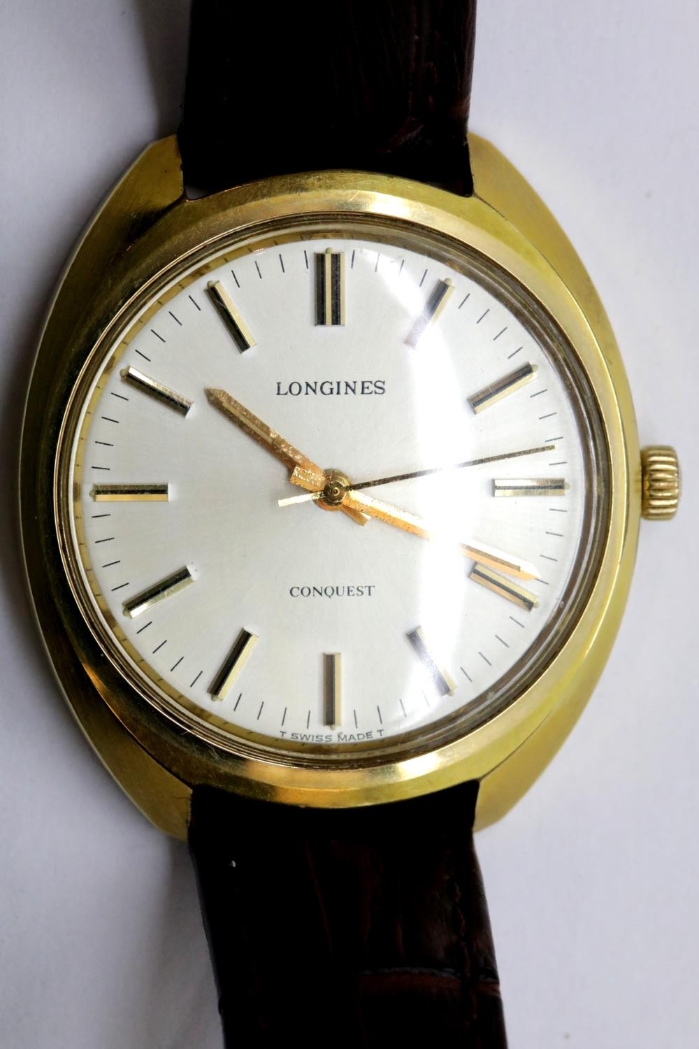 1970s vintage Longines Conquest gold plated wristwatch in original box. Unmarked and all original parts, dial pristine and unmarked. P&P Group 1 (£14+VAT for the first lot and £1+VAT for subsequent lots)