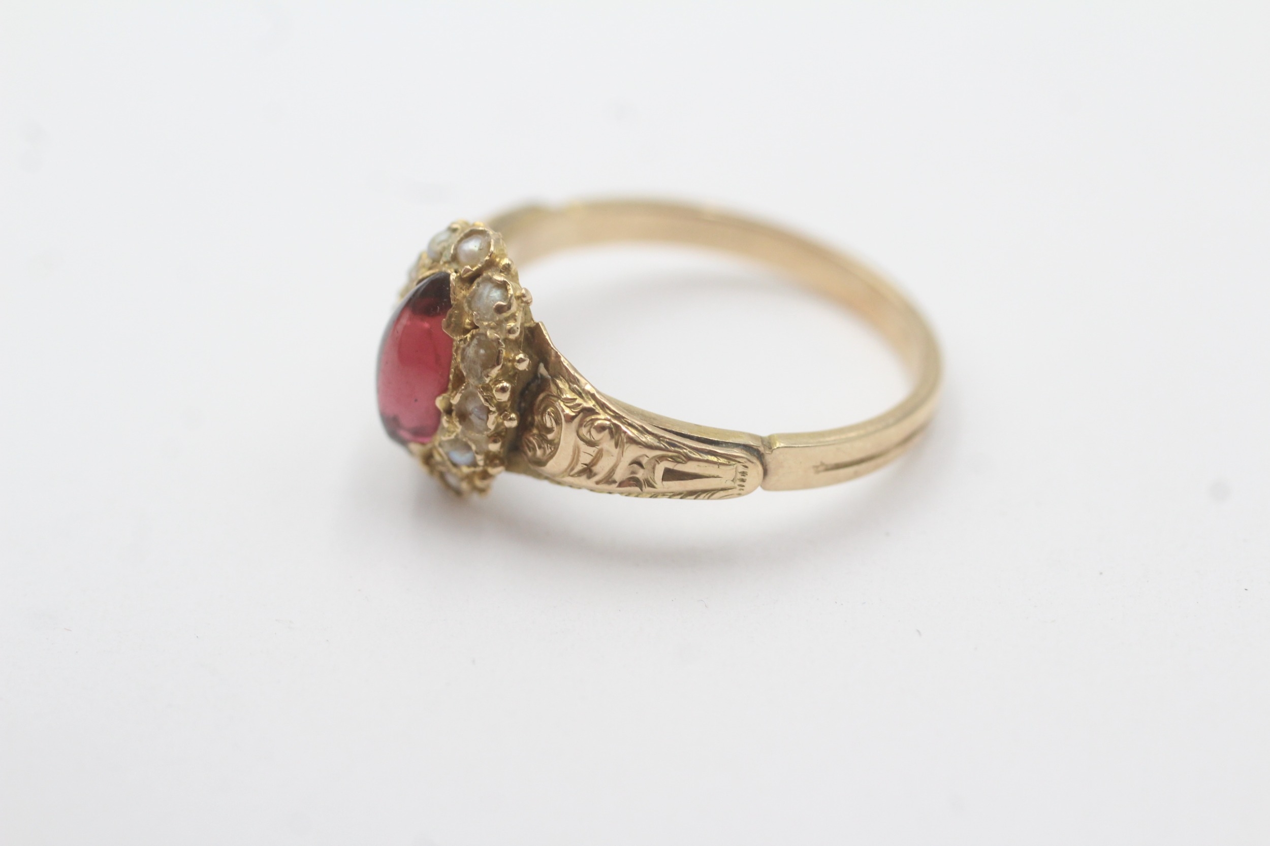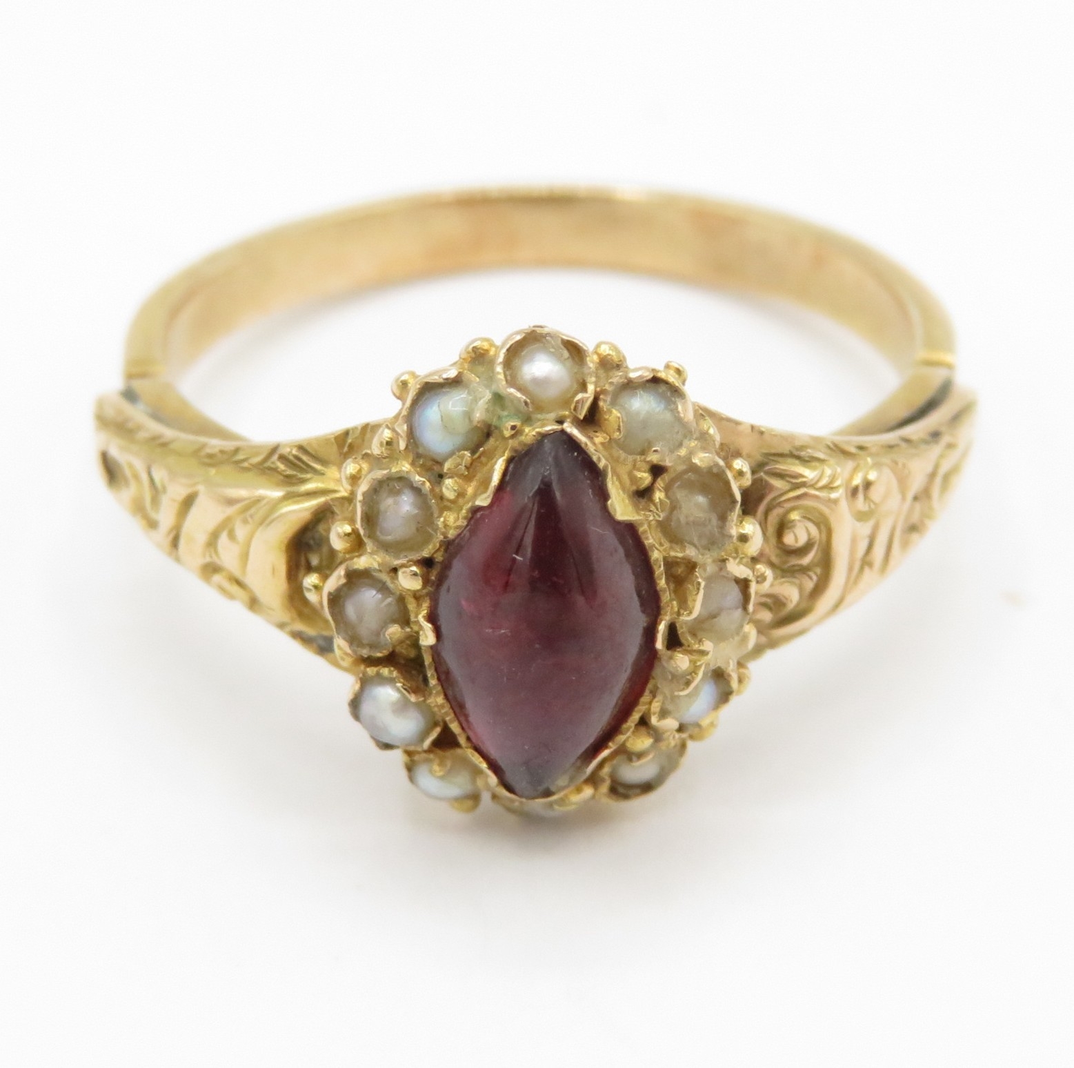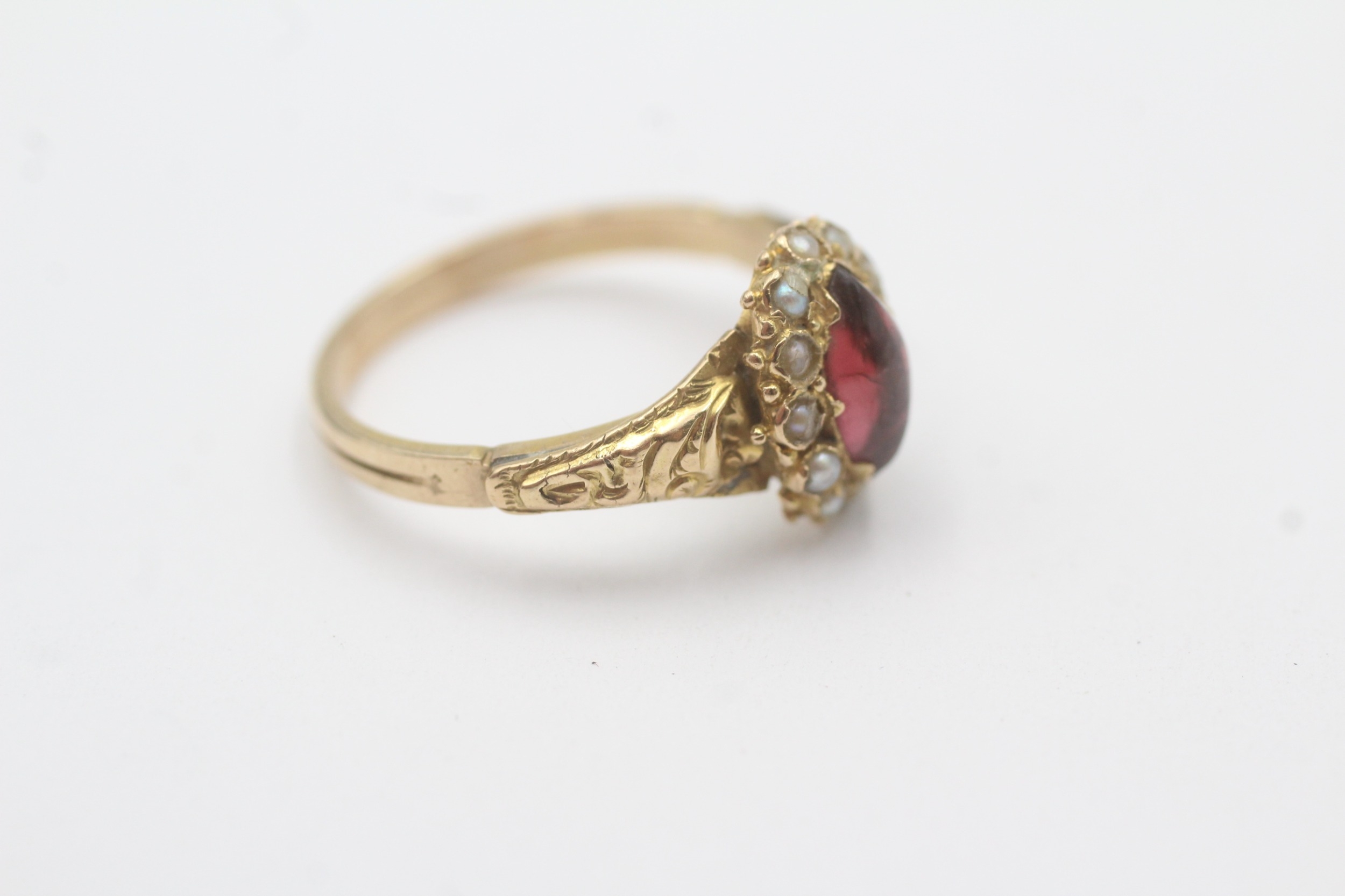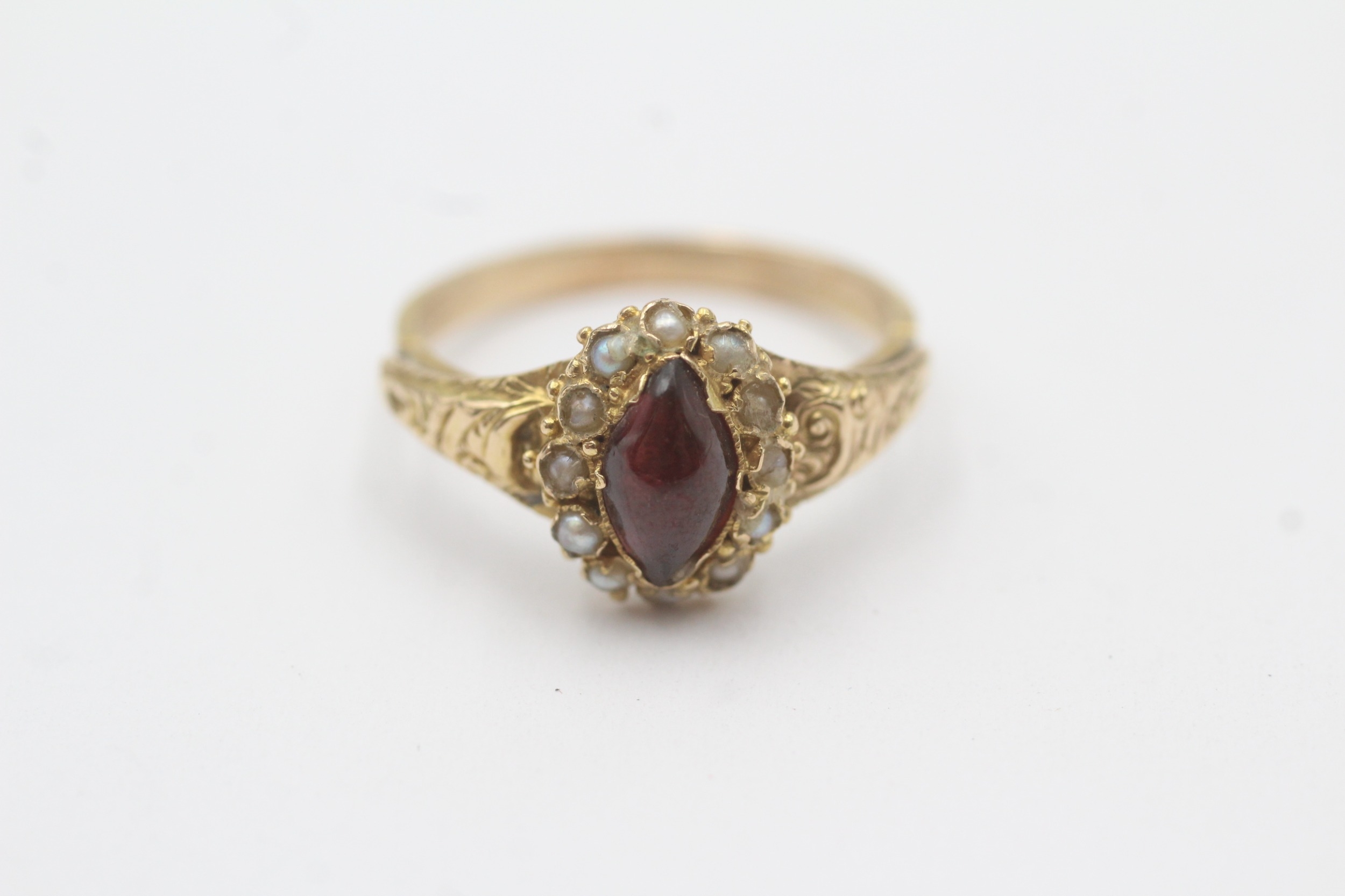 9ct gold garnet & seed pearl dress ring , AF (2.7g) Size N