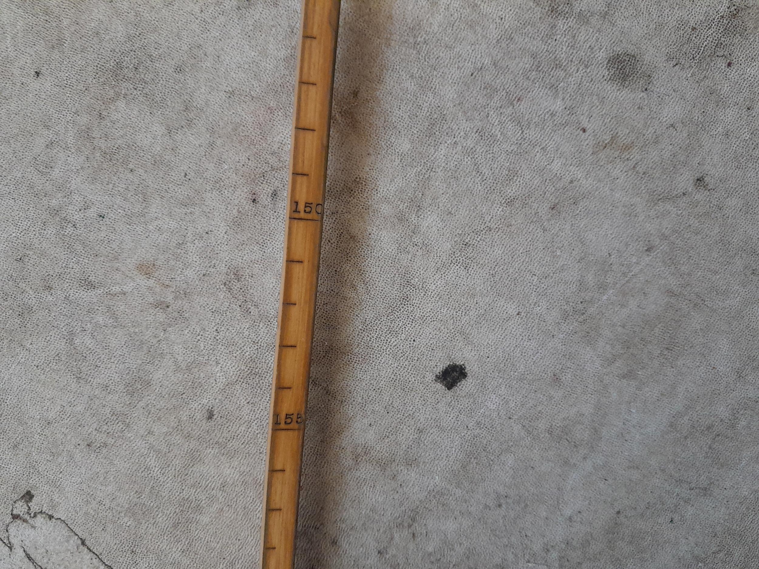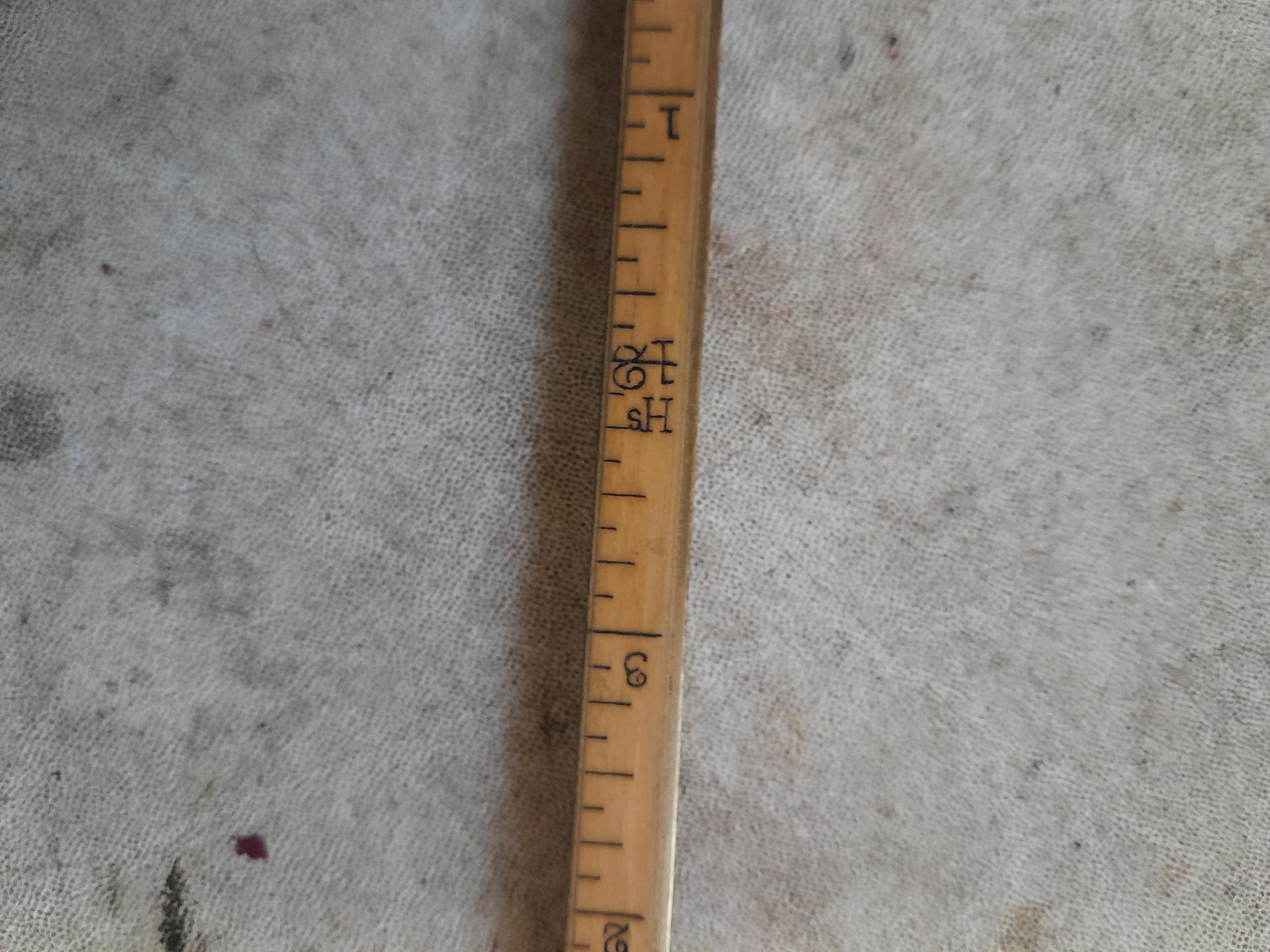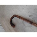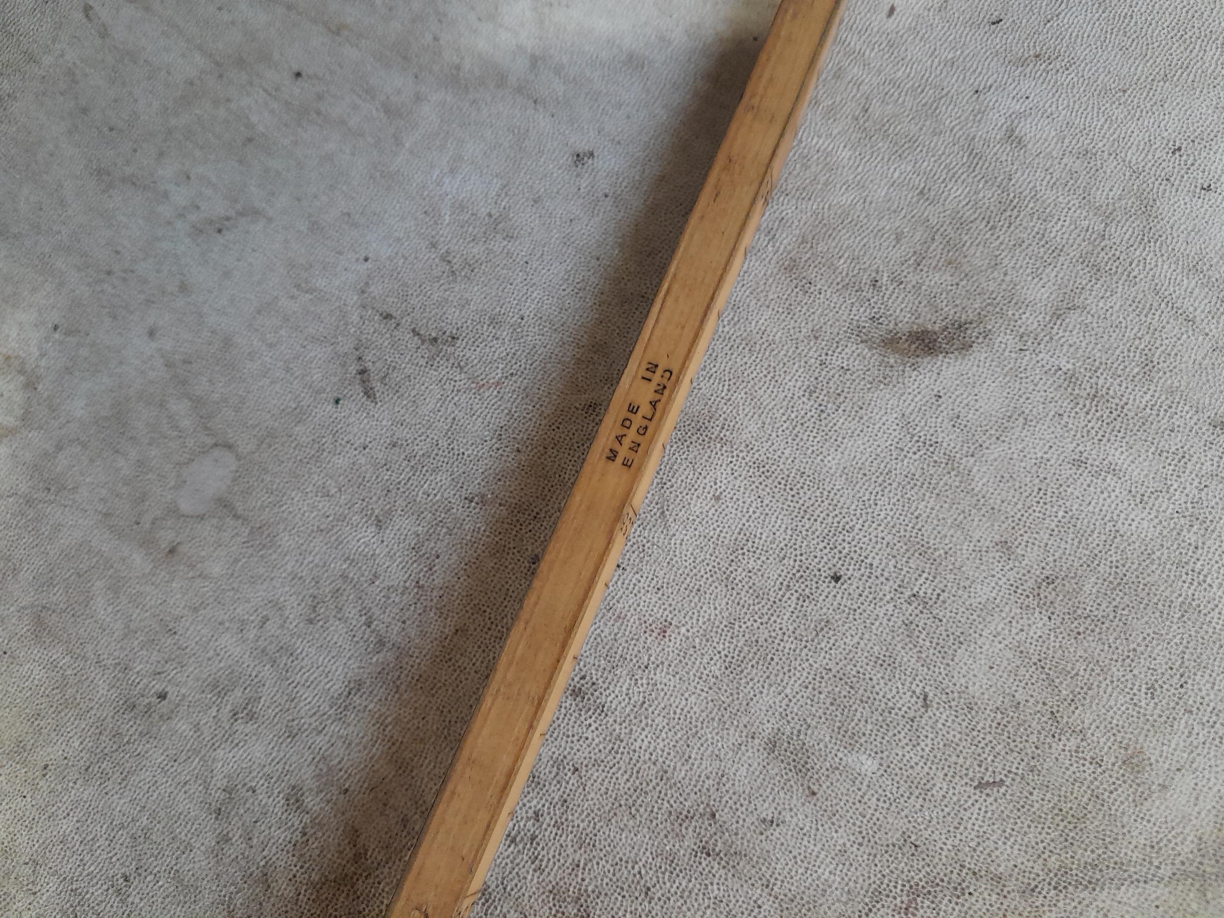 Early 20th century bamboo walking stick with silver button with press down release to reveal boxwood horse measuring cane