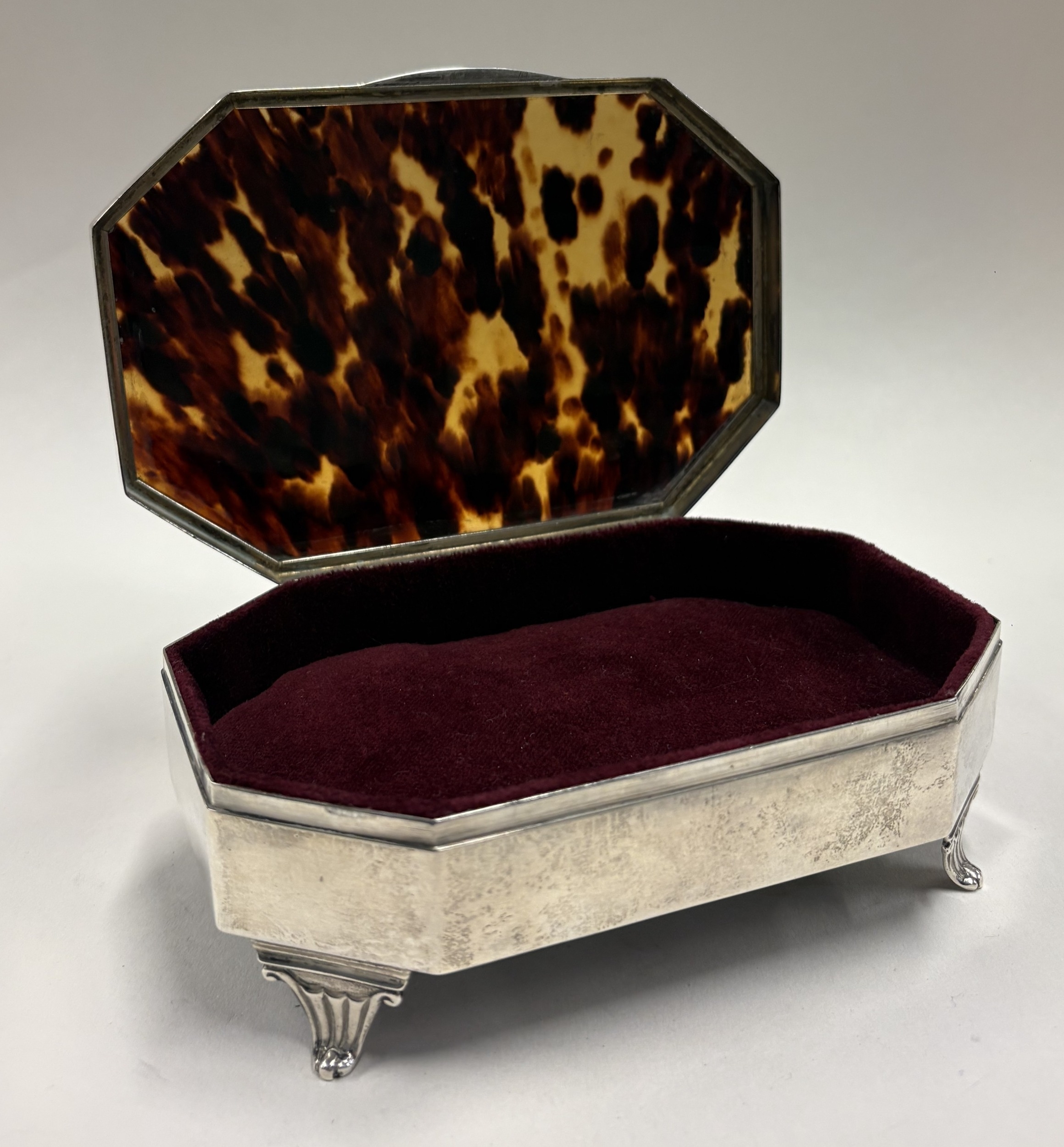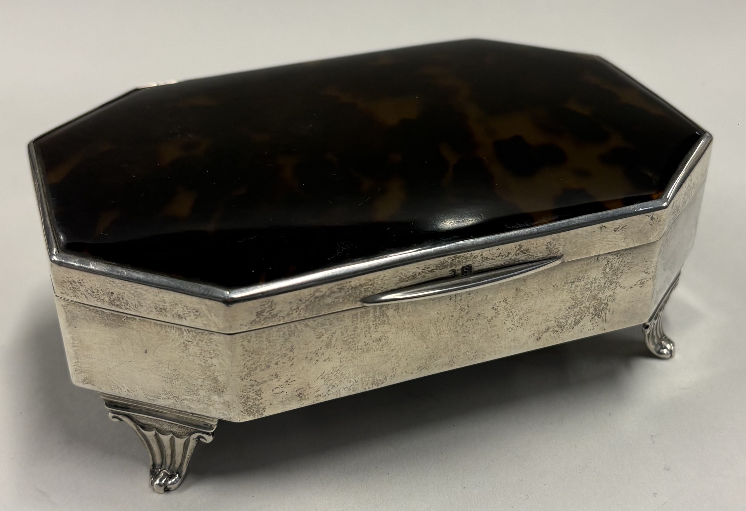A silver and faux tortoiseshell jewellery box. Birmingham 1913. Approx. 463 grams of gross weight. Est. £500 - £800.