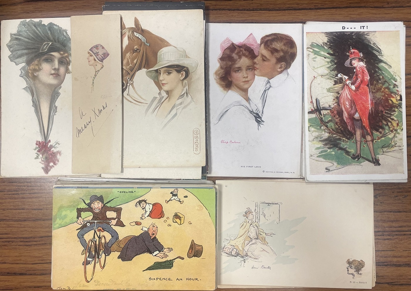 Artists. Loose A-C coln. with better incl. Corbella, G.T. Clarkson, E. Colombo, Chiorosti, Tom B., Henri Boutet, Philip Boileau, Barribal, Barham etc. Qty. approx. 300. (T)