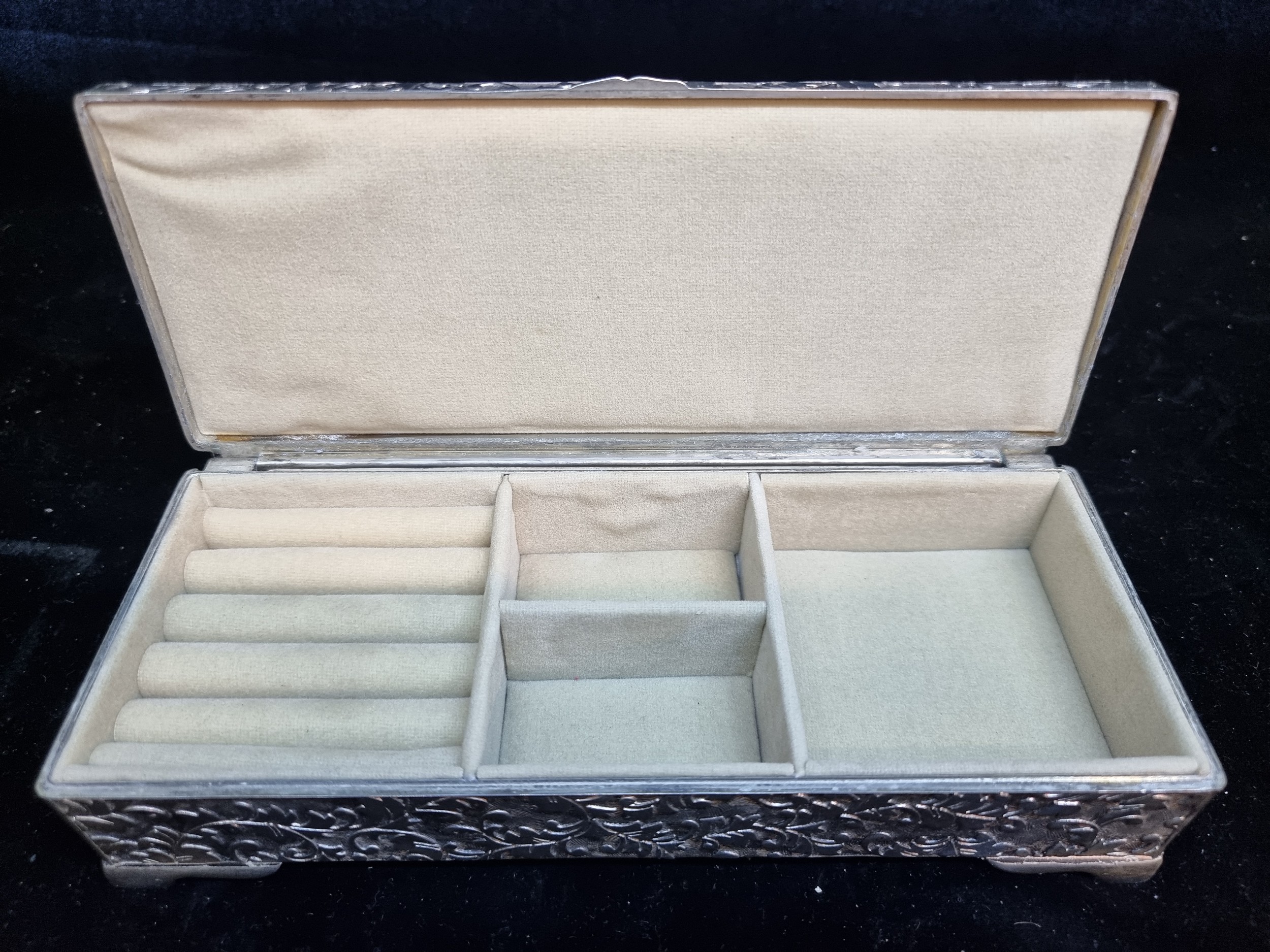 A heavy vintage silver plated repousse jewellery box. A gorgeous piece.