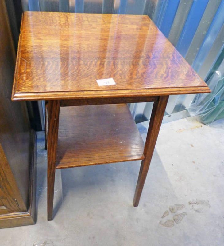 OAK SIDE TABLE ON SQUARE SUPPORTS