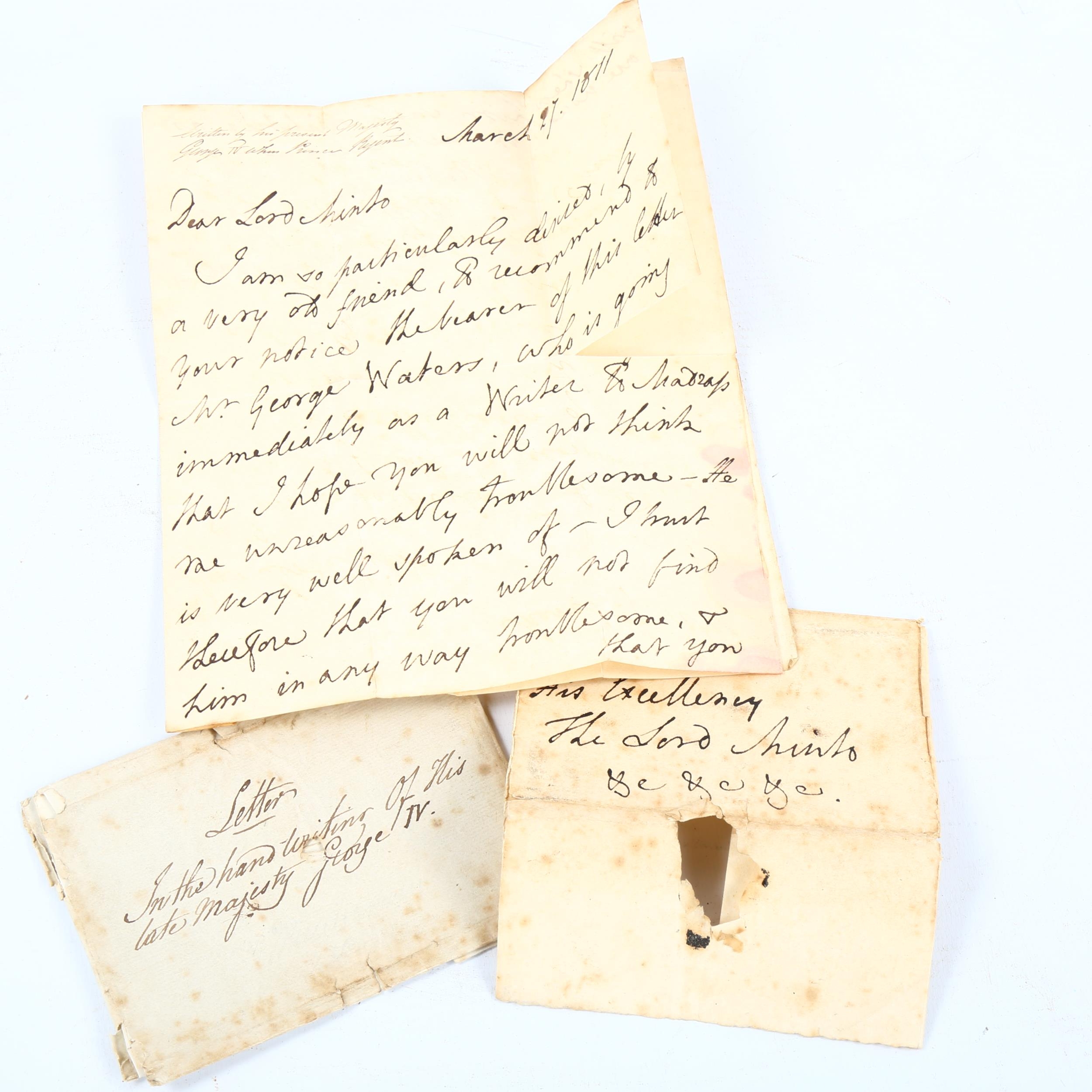 A handwritten letter from George V when Prince Regent to Lord Minto, dated March 27th 1811