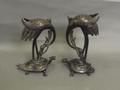 A pair of Chinese bronze statues each depicting a crane holding a lotus flower standing atop a tortoise, 8¼' high
