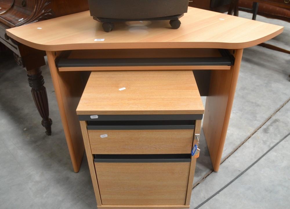 Beech Corner Computer Desk With 2 Drawer File Cabinet