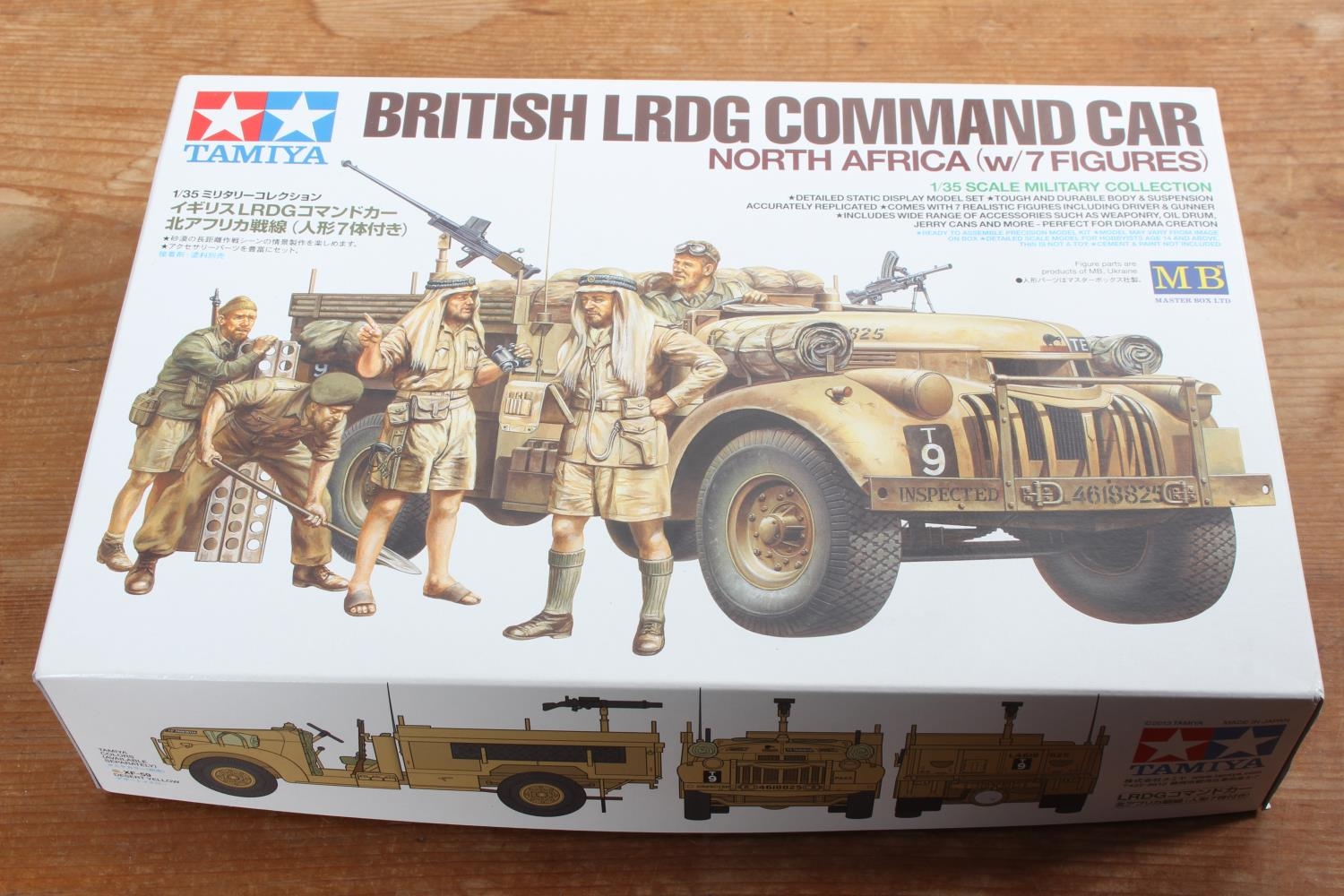A boxed Tamiya British LRDG Command Car (North Africa) model kit.