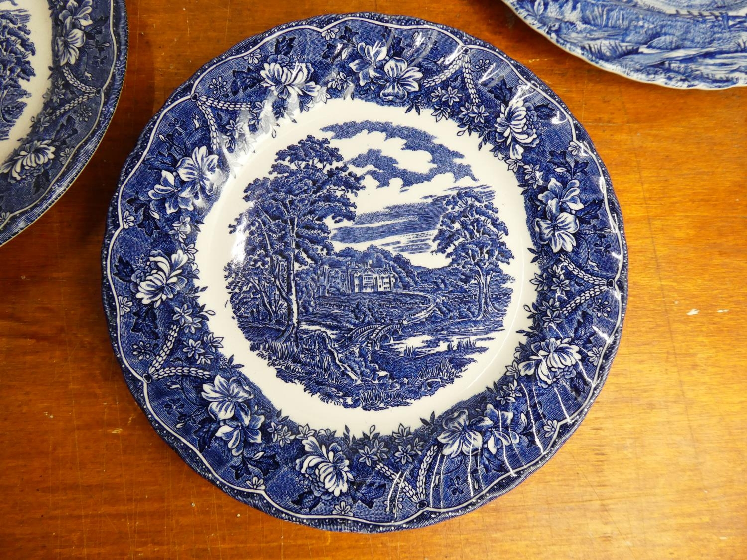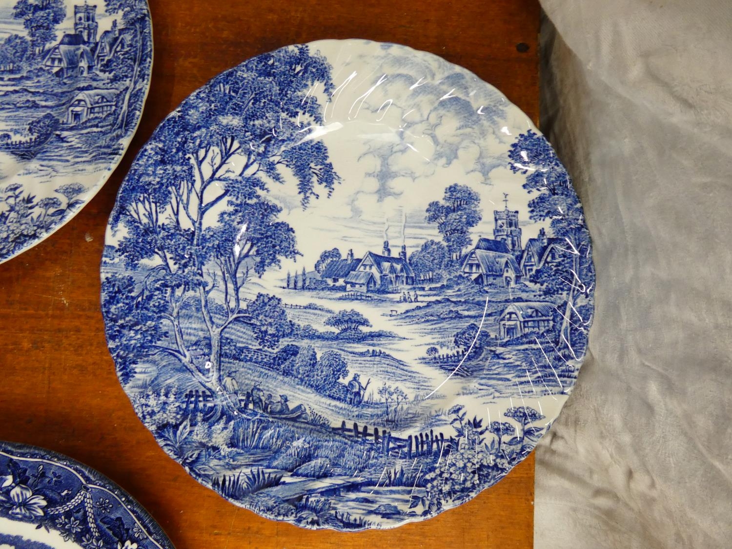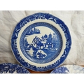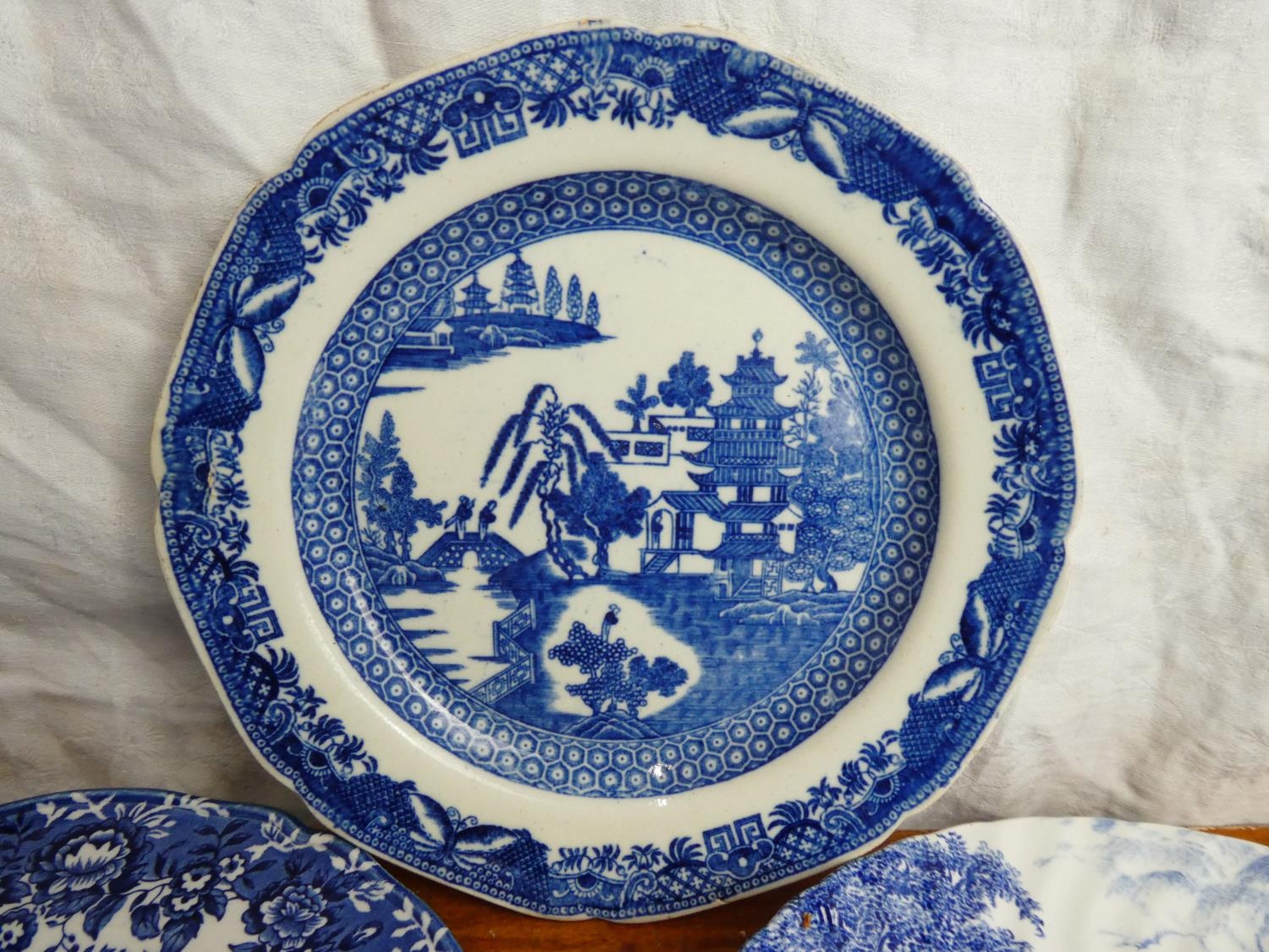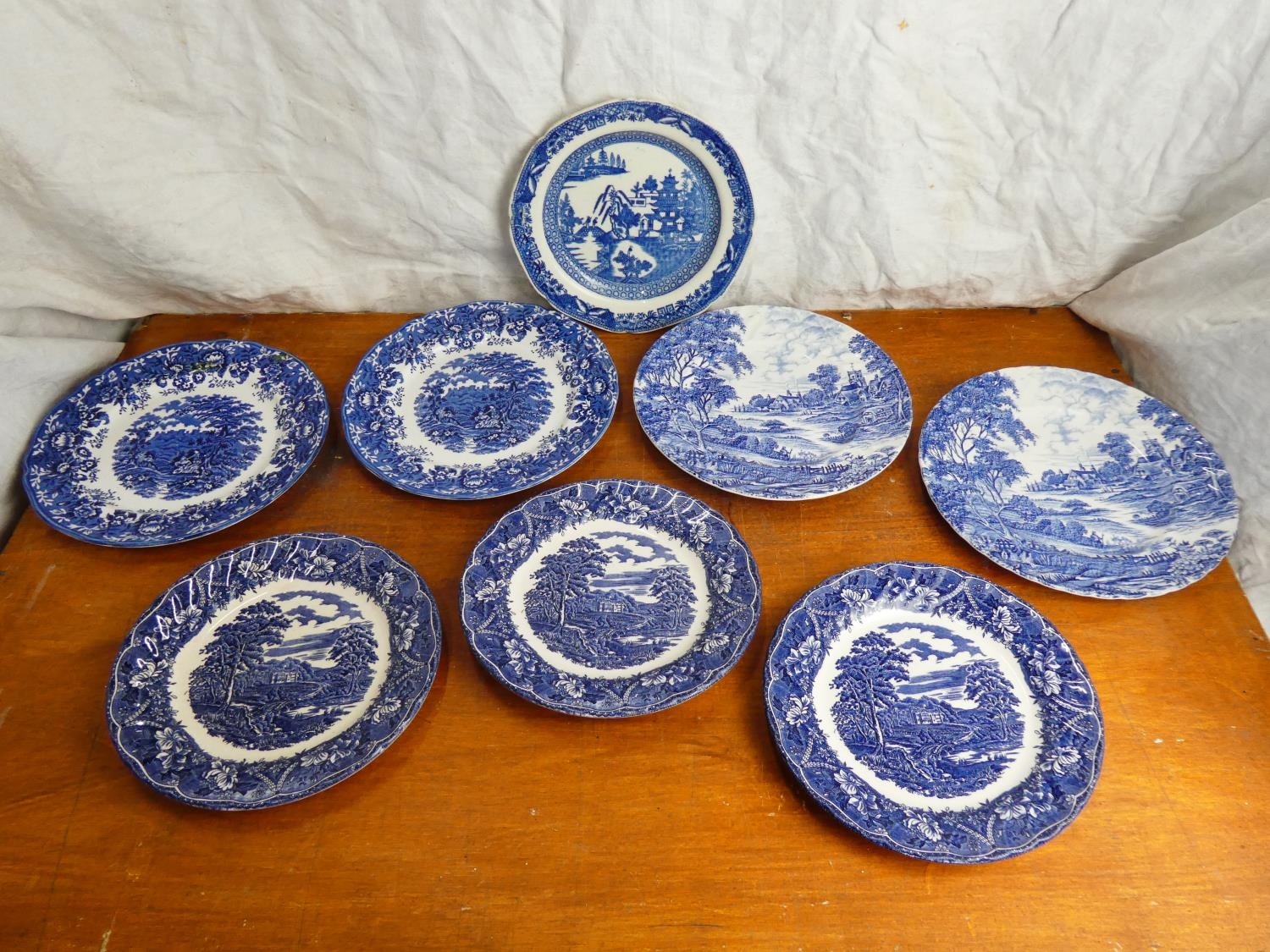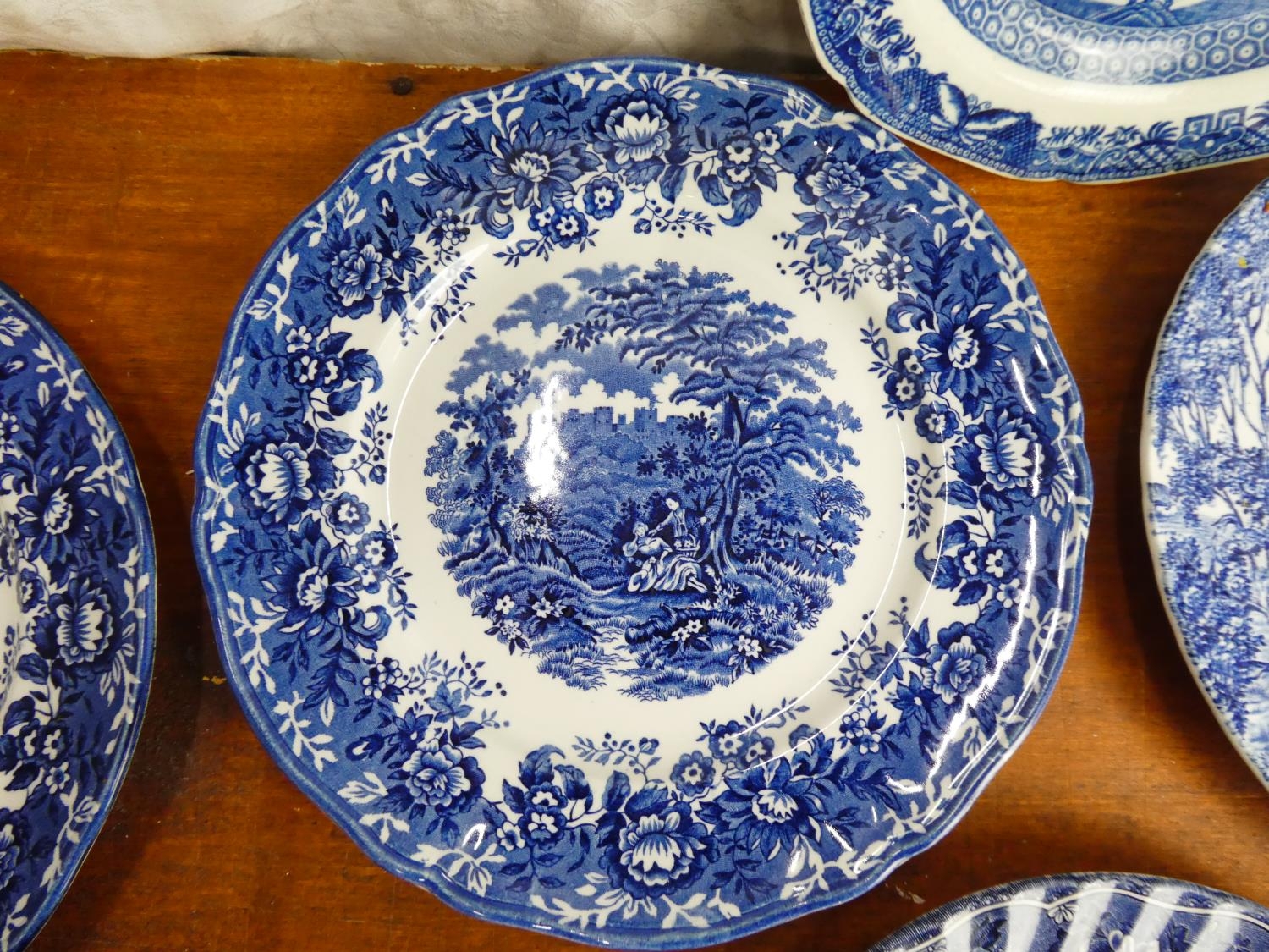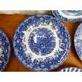 A collection of blue and white plates.