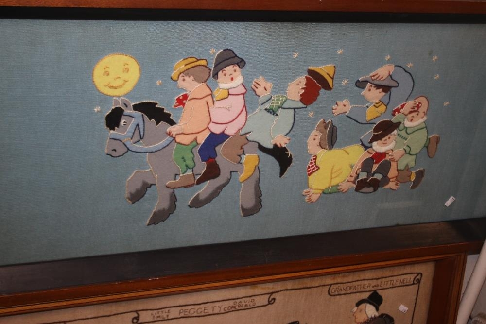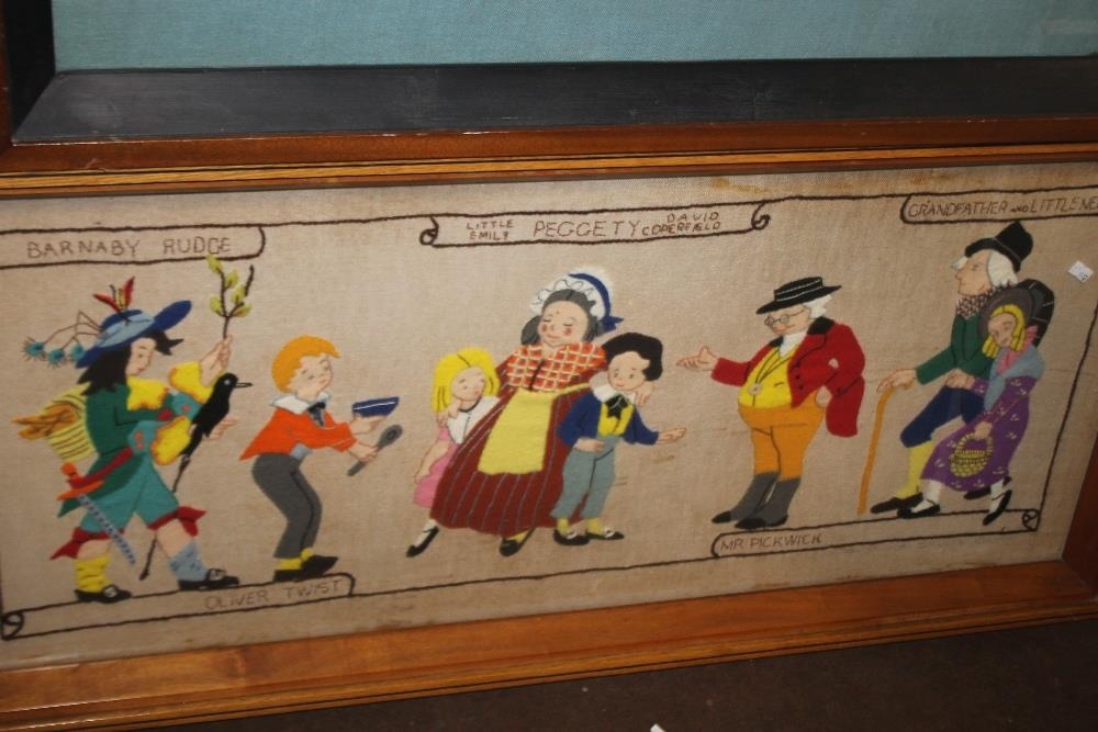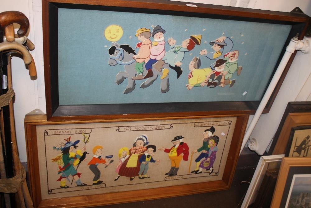 TWO FELT PICTURES DEPICTING PICKWICK & UNCLE TOM COBLEIGH