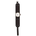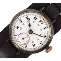 A British military World War I trench watch having enamelled dial with Arabic numerals, 33mm in diameter.