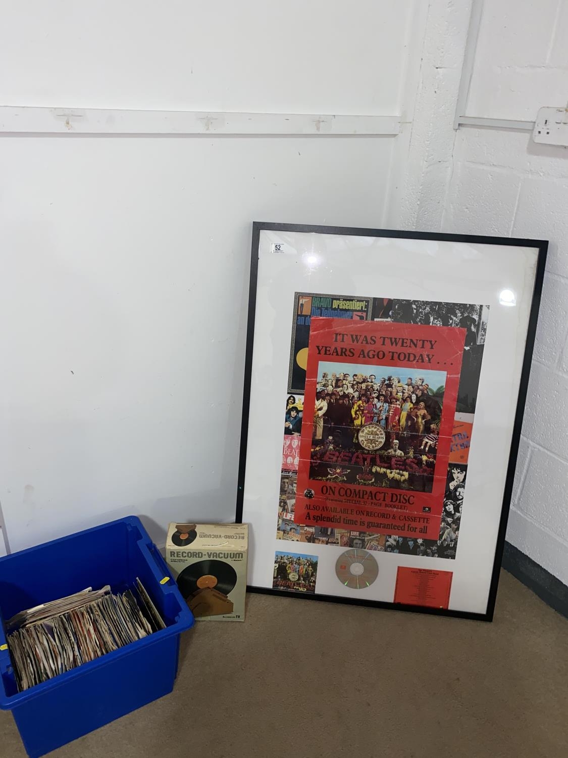 A Beatles framed poster with Beatles CD and a collection of 45 singles - mixed