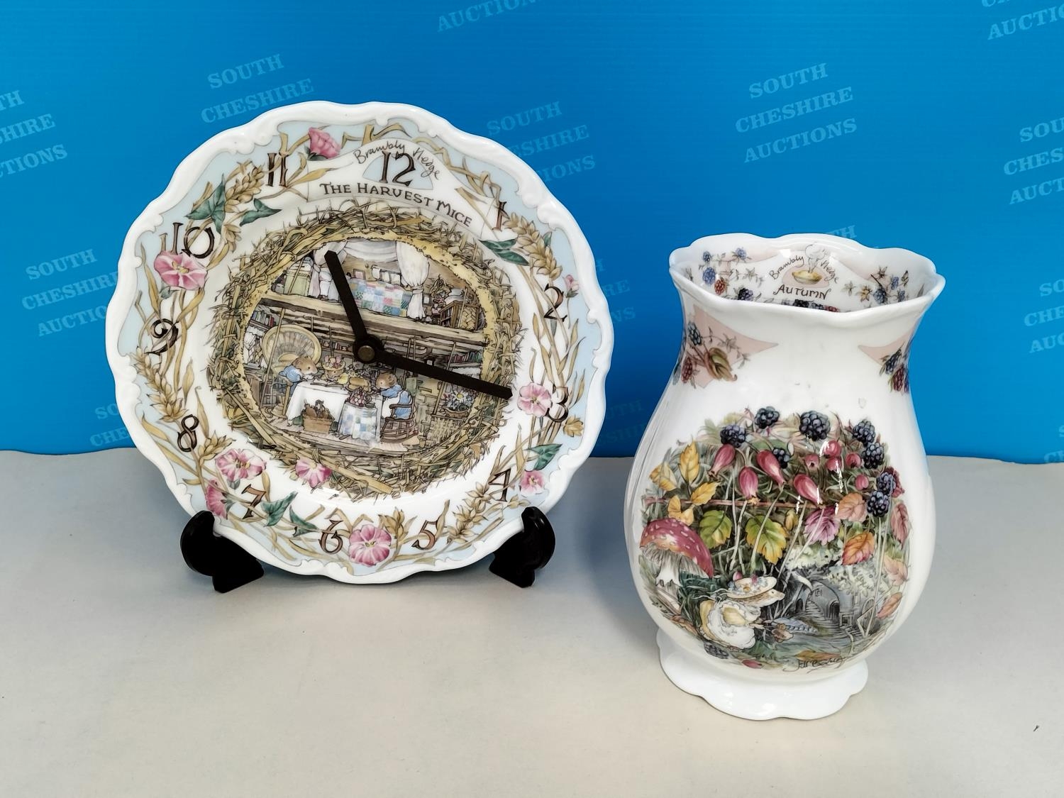 Royal Doulton Brambly Hedge 'The Harvest Mice' 21cm Wall Clock W/O plus 17cm 'Autumn' Vase (2nds).