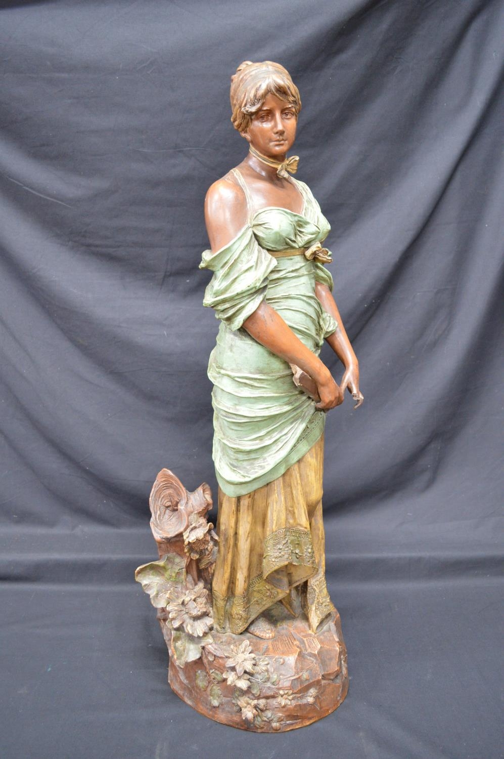 Ernst Wahliss (Austrian) earthenware figure of a young lady - 33" tall