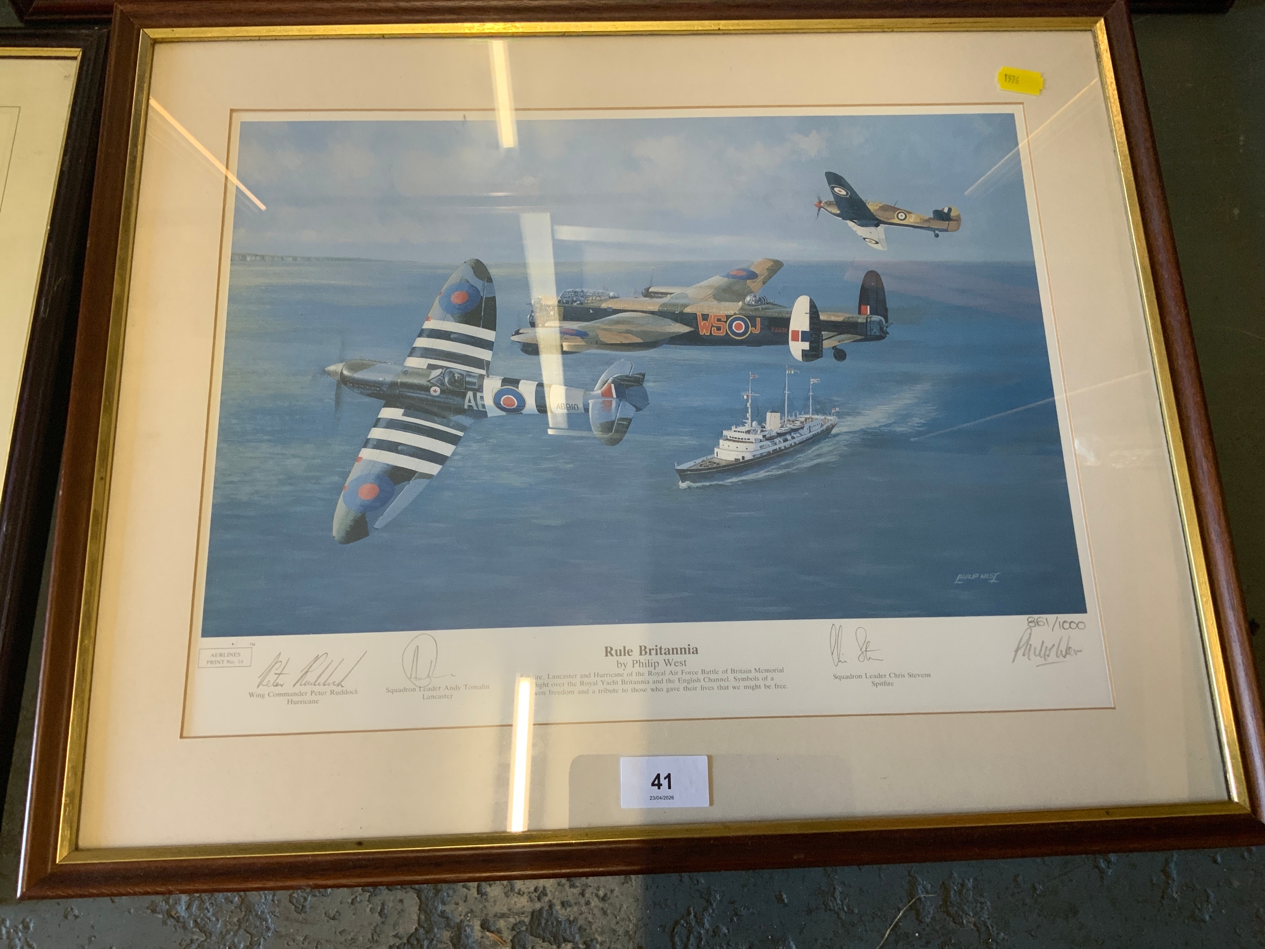A collection of four framed military aviation prints to include Rule Britannia by Philip West - Limited edition with autographs. (4)