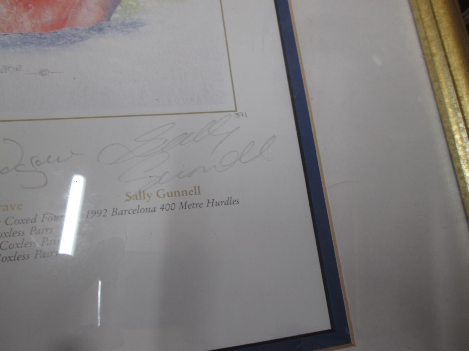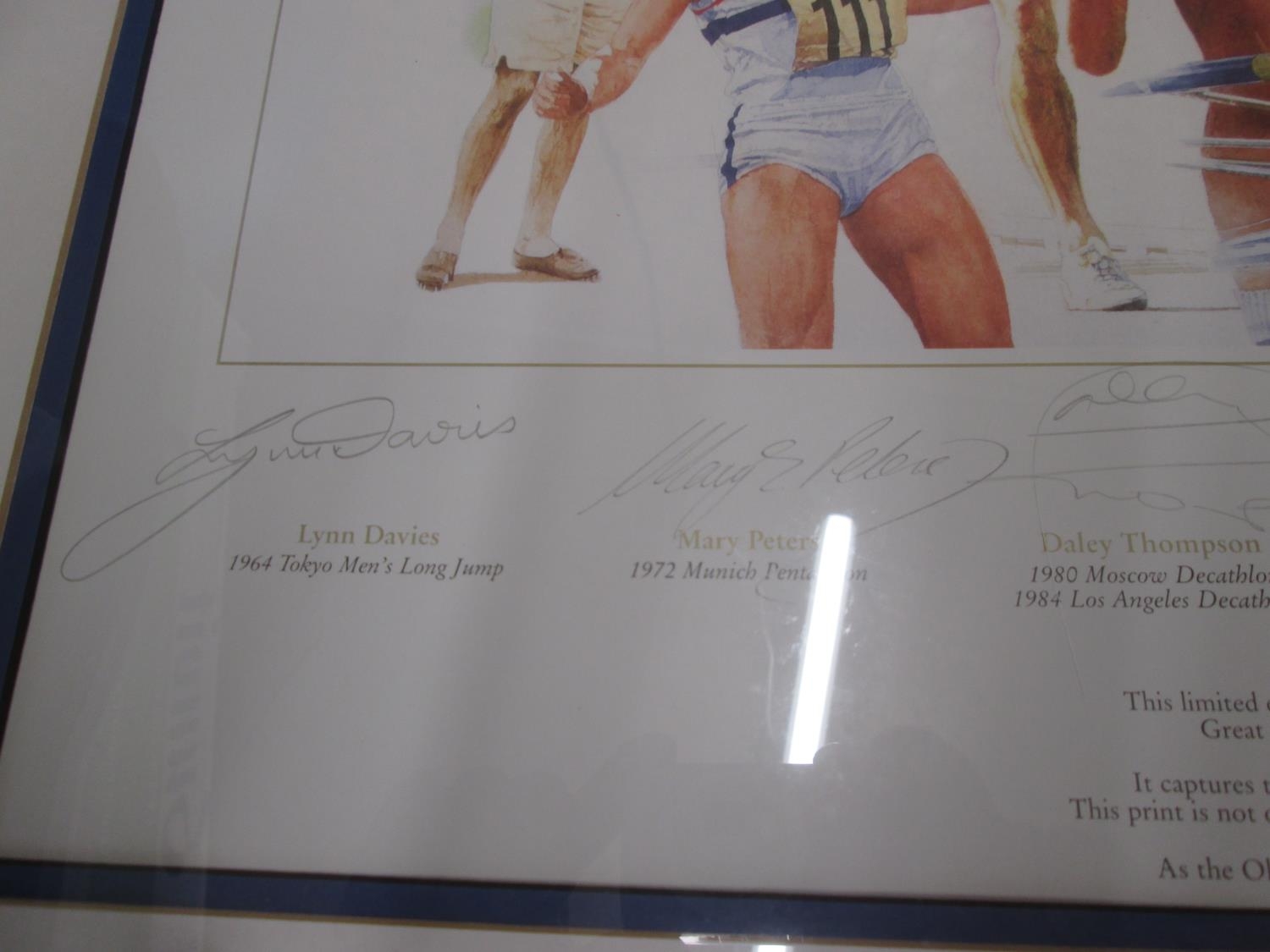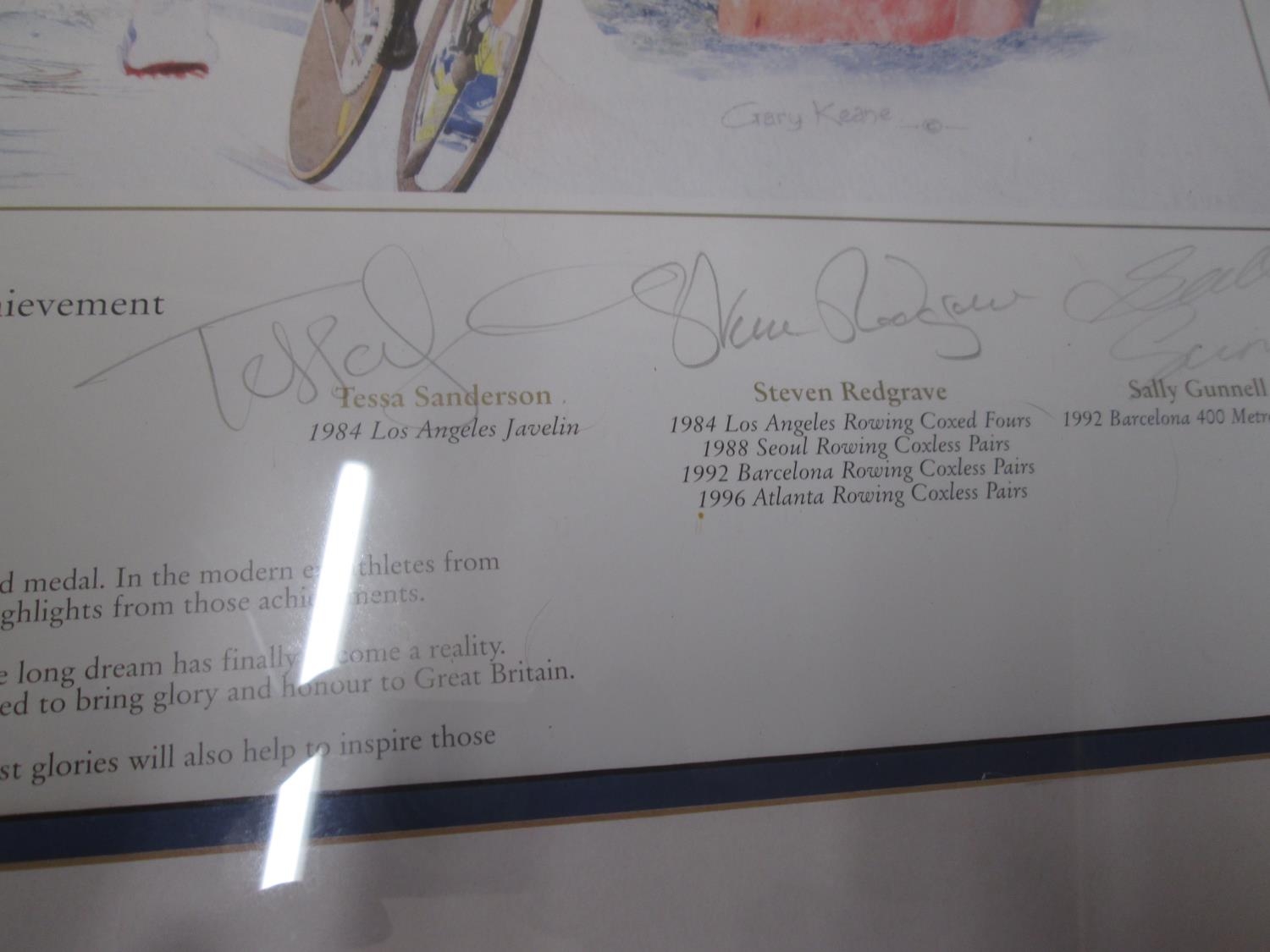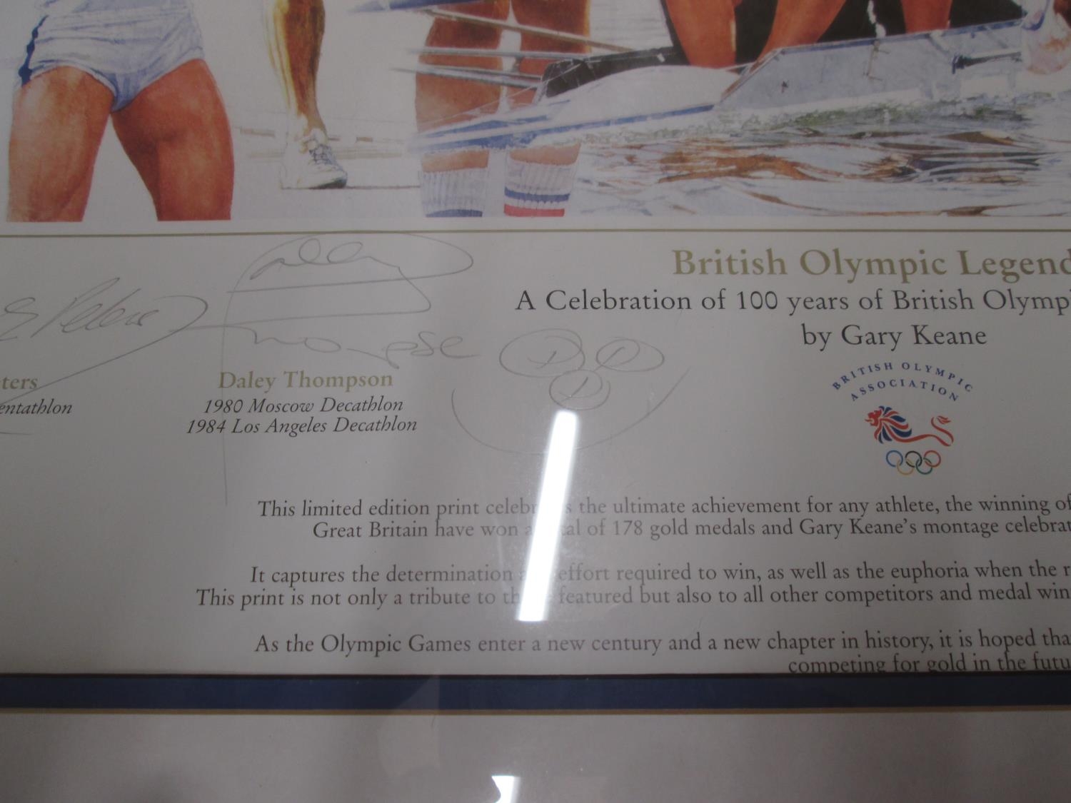 British Olympic Legends by Gary Keane signed by Lynn Davies, Mary Peters, Daley Thompson, Tessa Sanderson, Sally Gunnel and Steven Redgrave: Provenance presented to vendor by Price Charles for work with the Prince's Trust